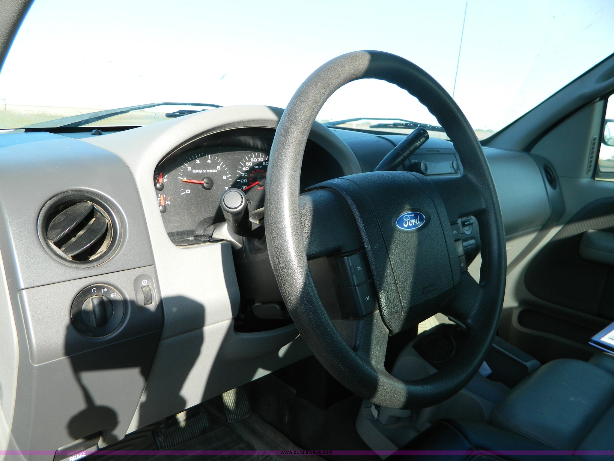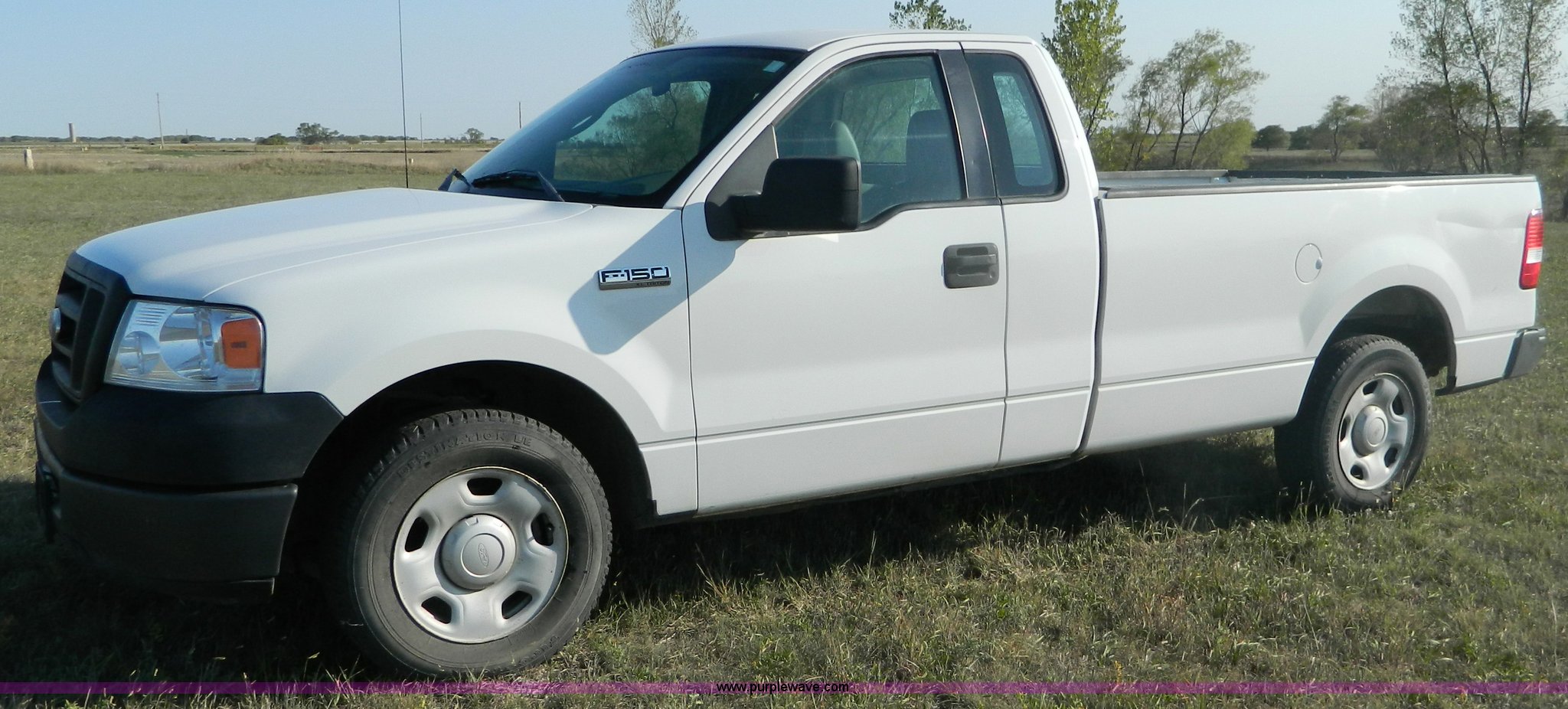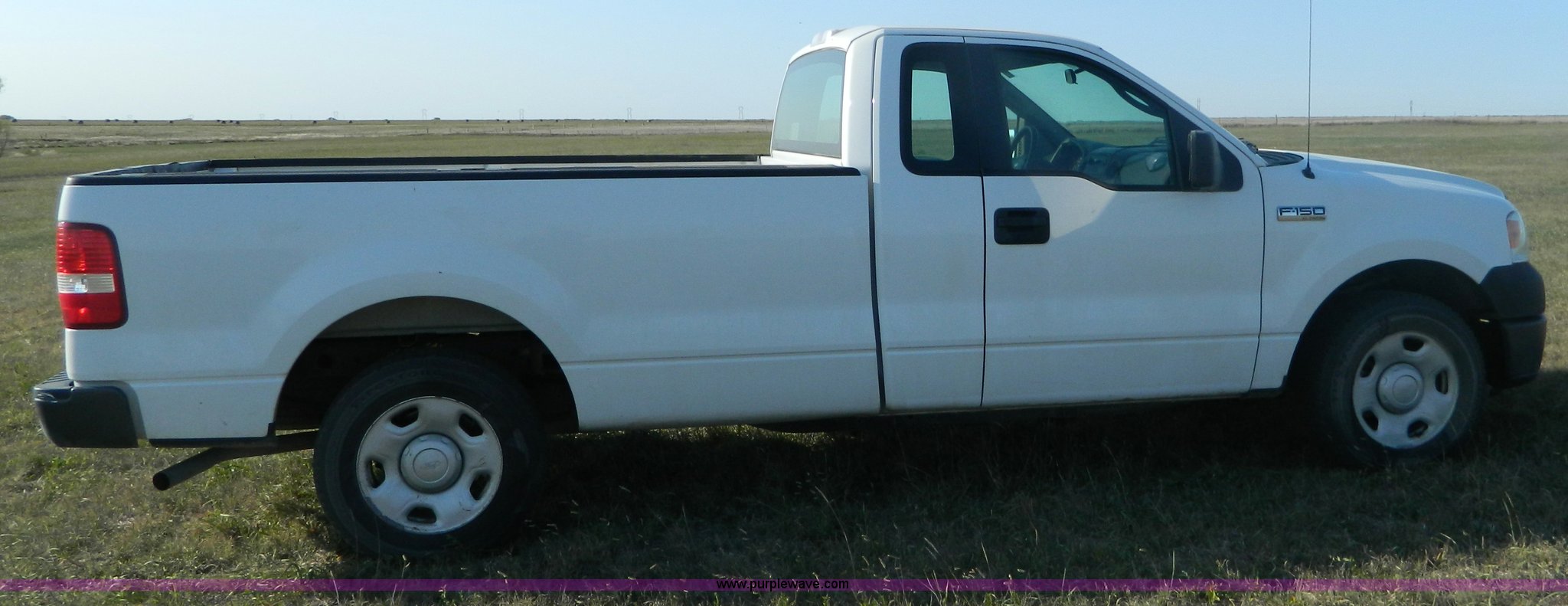 Purple Wave is selling a used Passenger Vehicle in Kansas. This item is a 2006 Ford F150 pickup truck with the following: 151,627 miles on odometer, 4.6L V8 EFI gas engine, Automatic transmission, AC and heat, Tilt, Cruise, AM/FM, Power windows, locks, and mirrors, Vinyl interior, Long bed, Receiver hitch, Trailer wiring, P235/70R17 tires, Interior/exterior cosmetic damage, Torn driver seat, Dent in rear bed fender