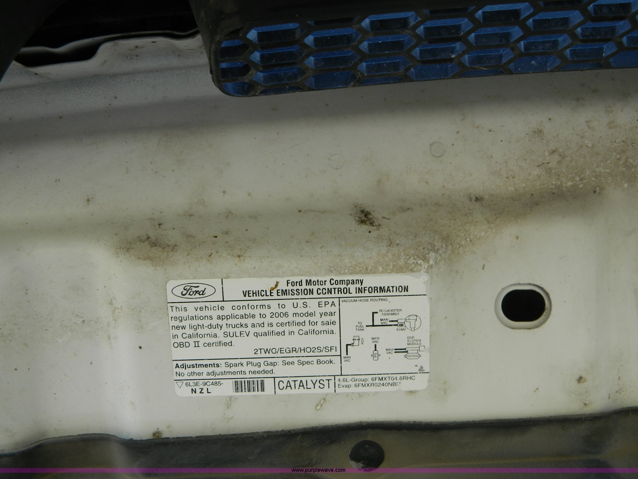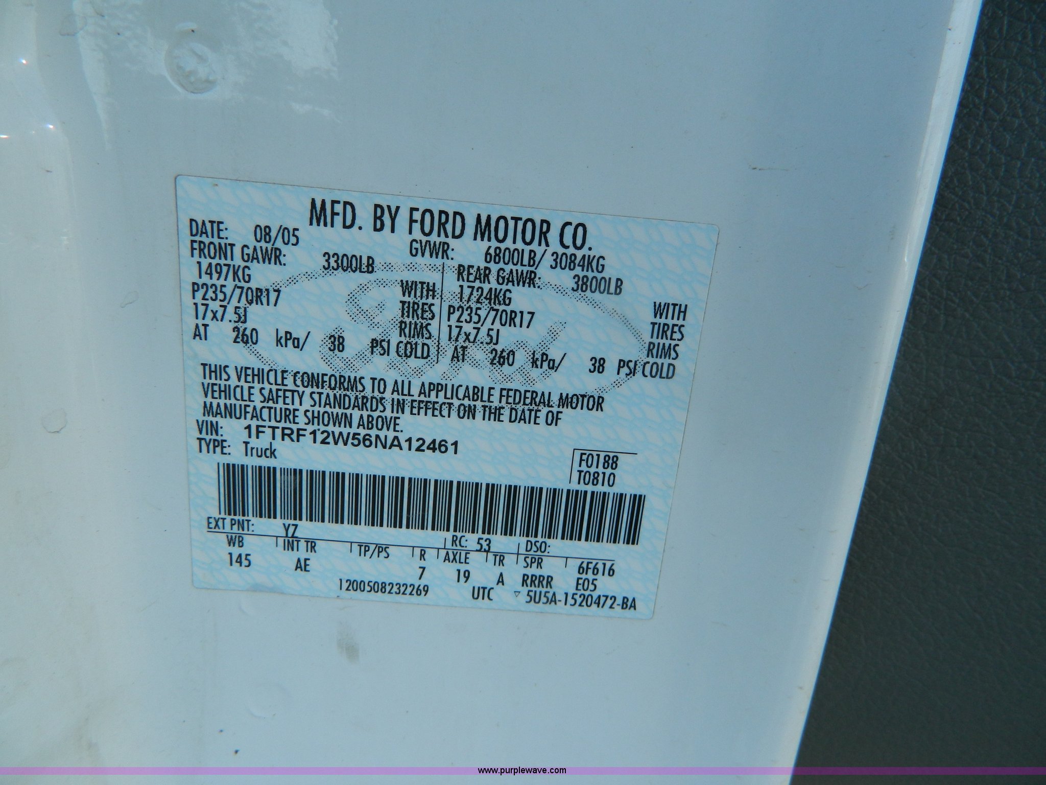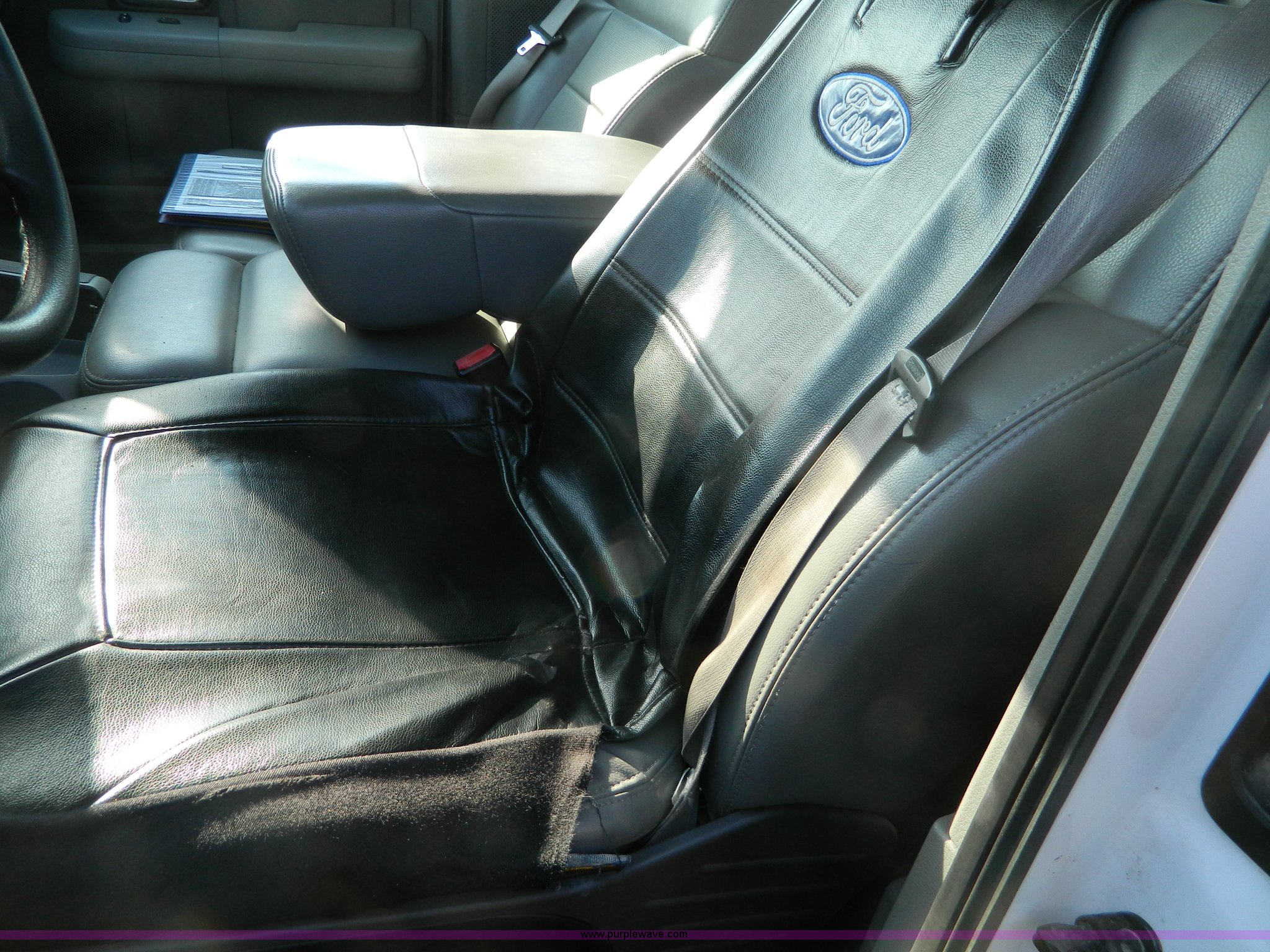 Purple Wave is selling a used Passenger Vehicle in Kansas. This item is a 2006 Ford F150 pickup truck with the following: 151,627 miles on odometer, 4.6L V8 EFI gas engine, Automatic transmission, AC and heat, Tilt, Cruise, AM/FM, Power windows, locks, and mirrors, Vinyl interior, Long bed, Receiver hitch, Trailer wiring, P235/70R17 tires, Interior/exterior cosmetic damage, Torn driver seat, Dent in rear bed fender