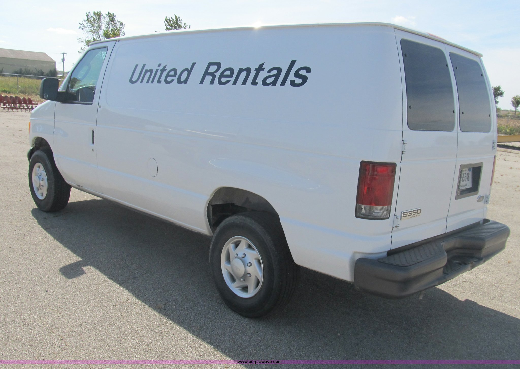 2007 Ford Econoline E350 service van. 89,934 miles on odometer, 5.4L V8 EFI gas engine, Automatic transmission, AC and heat, Tilt, Cruise, AM/FM, Power windows, locks, and mirrors, Vinyl interior, Rear and side door access, Rear storage shelving, 112"L floor space, 6'11"H body, Rear tinted windows, Rear safety bars, Backup alarm, LT245/75R16 tires, GVWR 9,500 lbs, Minor exterior damage, EIN 1003616. 1FTSE34L57DB09332. Shipping quotes available. United Rentals - Urbana. 3501 N Countryview Rd. Urbana, IL 61802