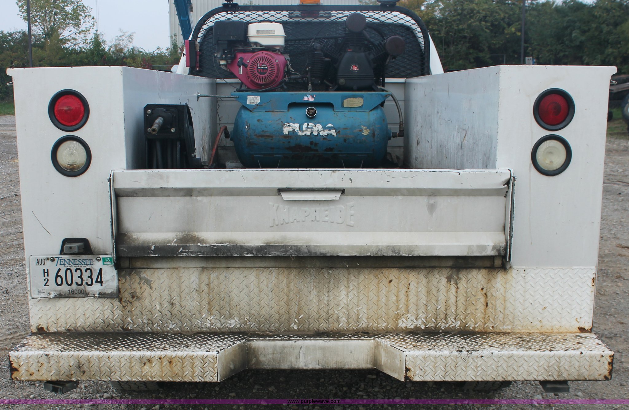 Purple Wave is selling a used Service Truck in Ohio. This item is a 2008 Ford F350 Super Duty service truck with the following: 194,025 actual miles, 6.4L V8 diesel engine, Automatic transmission, Four wheel drive, AC and heat, AM/FM/CD, Manual windows and locks, Vinyl interior, Auxiliary light control system, Nerf bars, Knapheide 9' utility bed, (6) compartments, Tool drawers, Serial 20070113-0052262, Puma air compressor, Honda GX340 11 HP gas engine, 30 gallon tank, Model TUK11030HG, Hose and reel included, Amber warning beacon, Tow hooks, Work lights, 275/70R19 tires, Cracked windshield, EIN 999750