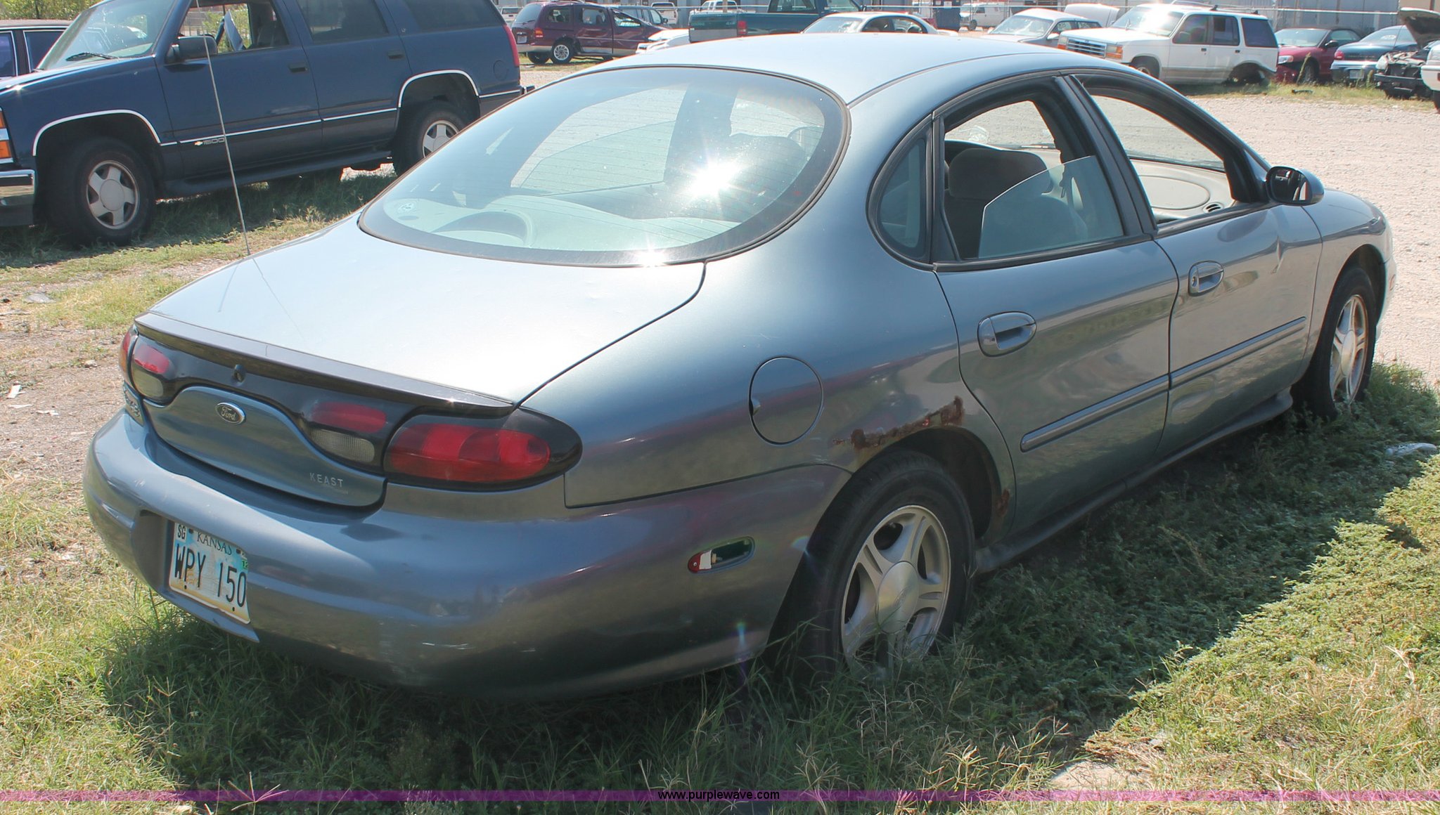 Purple Wave is selling a used Wrecked and Abandoned in Kansas. This item is a 1999 Ford Taurus SE with the following: 152,315 actual miles, 3.0L V6 EFI gas engine, Automatic transmission, AC and heat, Tilt, Cruise, AM/FM/cassette, Power windows, locks, and mirrors, Cloth interior, 205/65R16 tires, Keys, Interior/exterior cosmetic damage, Hail damage, Cracked windshield, Unknown running condition
