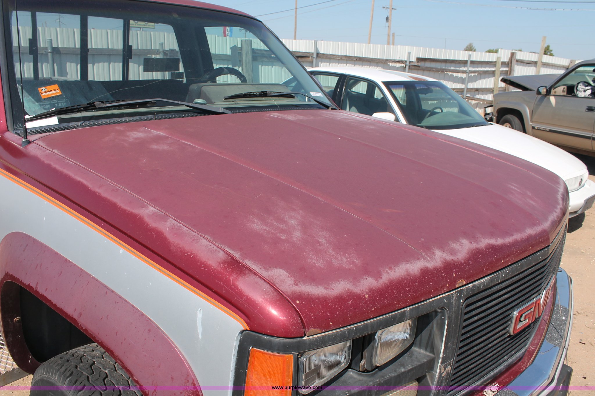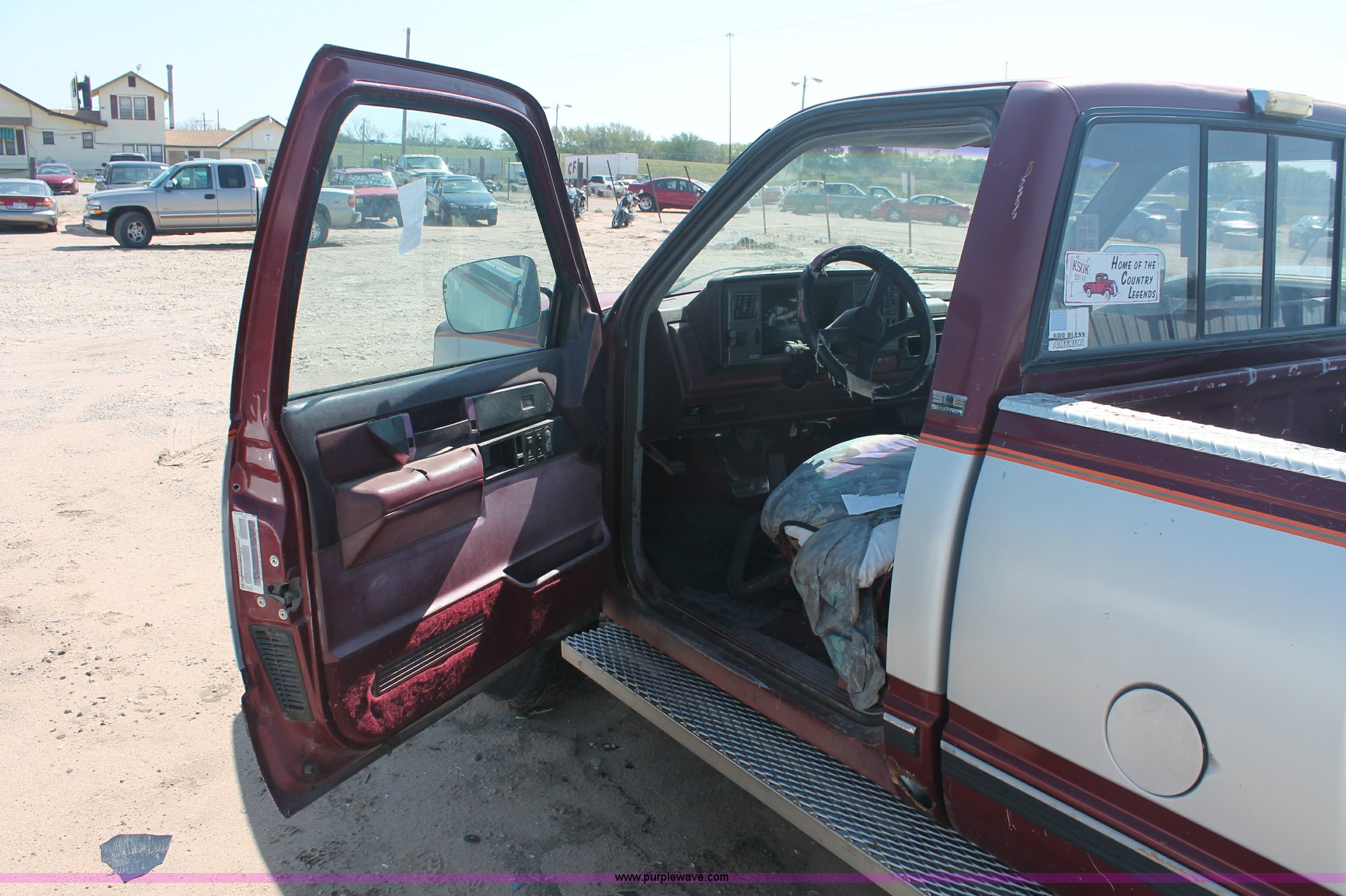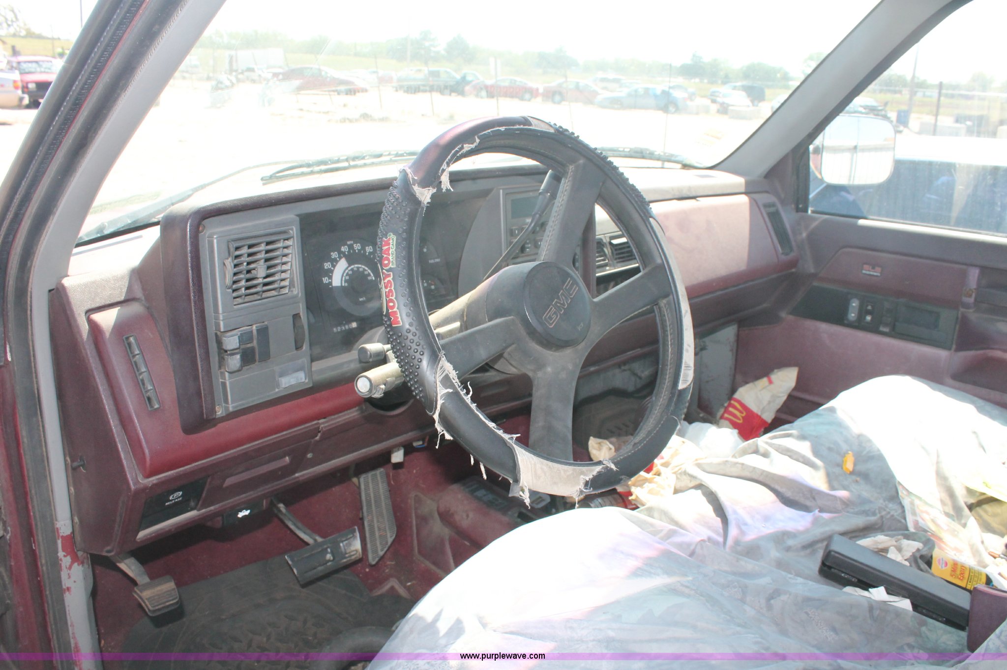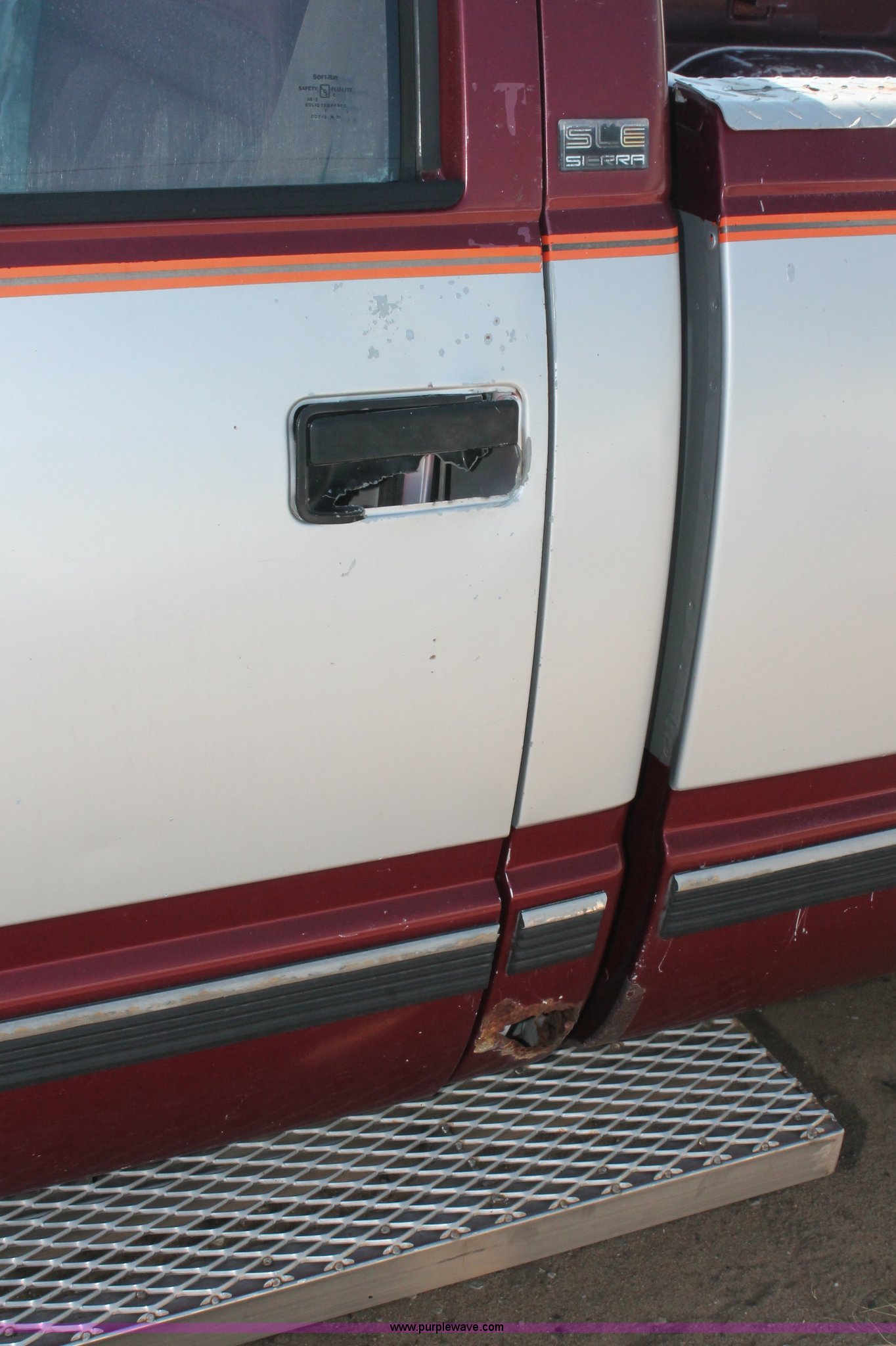 Purple Wave is selling a used Wrecked and Abandoned in Kansas. This item is a 1989 GMC Sierra K2500 pickup truck with the following: 152,360 miles on odometer, 5.7L V8 TBI gas engine, Automatic transmission, Four wheel drive, AC and heat, Tilt, Cruise, AM/FM, Power windows and locks, Cloth interior, Sliding rear window, Running boards, Tow hooks, Receiver hitch, 245/75R16 tires, Driver door handle broken, Interior/exterior cosmetic damage, Paint faded, Unknown running condition