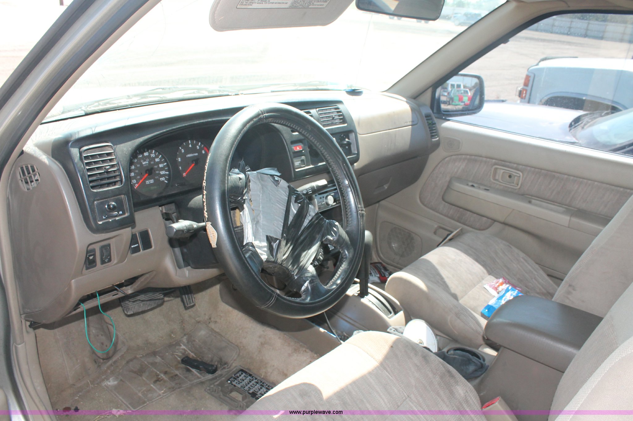 Purple Wave is selling a used Wrecked and Abandoned in Kansas. This item is a 2000 Nissan Frontier SE Desert Runner King Cab pickup truck with the following: 145,900 miles on odometer, 3.3L V6 EFI gas engine, Automatic transmission, AC and heat, Tilt, Cruise, AM/FM/CD, Power windows, locks, and mirrors, Cloth interior, Sliding rear window, Running boards, Bed liner, Receiver hitch, Trailer wiring, Keys, 245/75R16 tires, Starts and runs, Unknown driving condition, Interior/exterior cosmetic damage, Cracked windshield, Broken drivers side headlight, Tailgate handle missing, No airbag