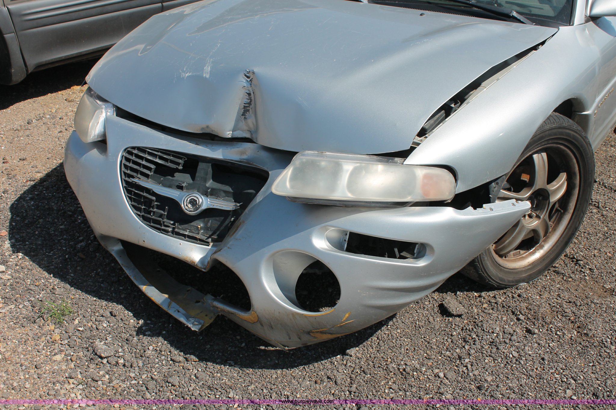 Purple Wave is selling a used Wrecked and Abandoned in Kansas. This item is a 2000 Chrysler Sebring LXi with the following: 158,189 miles on odometer, 2.5L V6 SFI gas engine, Automatic transmission, AC and heat, Tilt, Cruise, AM/FM/CD, Power windows, locks, and mirrors, Leather interior, Sunroof, 235/45ZR17 tires, Interior/exterior cosmetic damage, Broken mirrors, Missing windows, Cracked windshield, Missing door handles, Airbags deployed, Front end collision damage, Unknown running condition