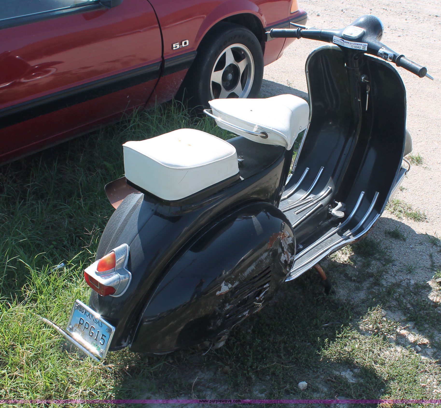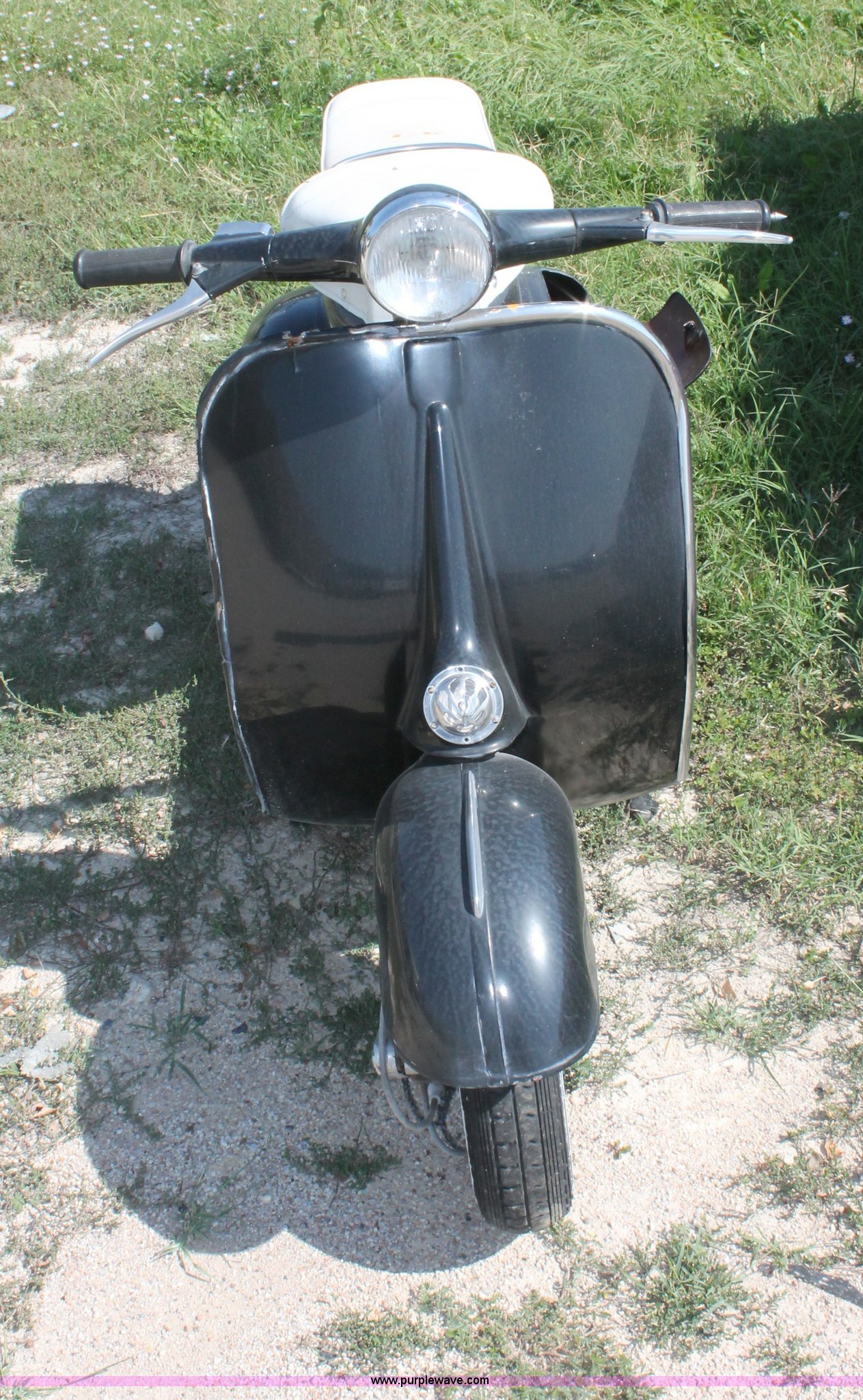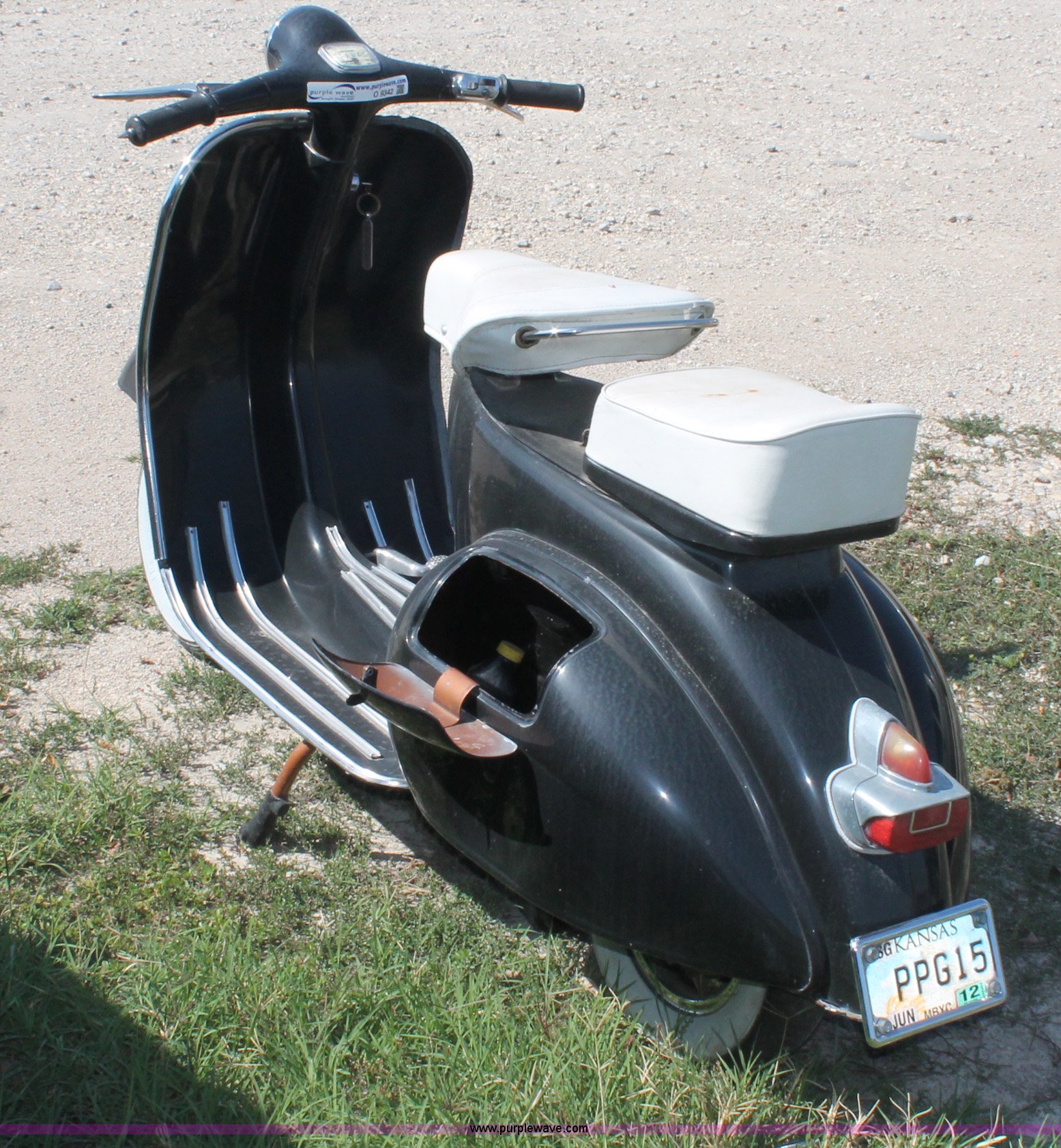 Purple Wave is selling a used Wrecked and Abandoned in Kansas. This item is a 1961 Vespa moped with the following: 2,596 km on odometer, Not Actual Mileage, Gas engine, Automatic transmission, Leather seat, Storage compartment, Keys, 3.50-8 tires, Unknown running condition