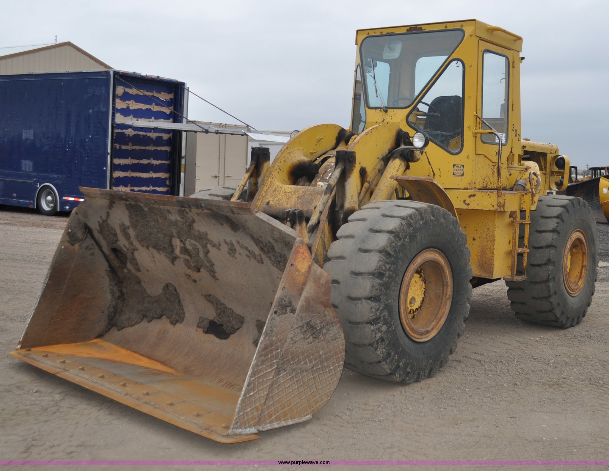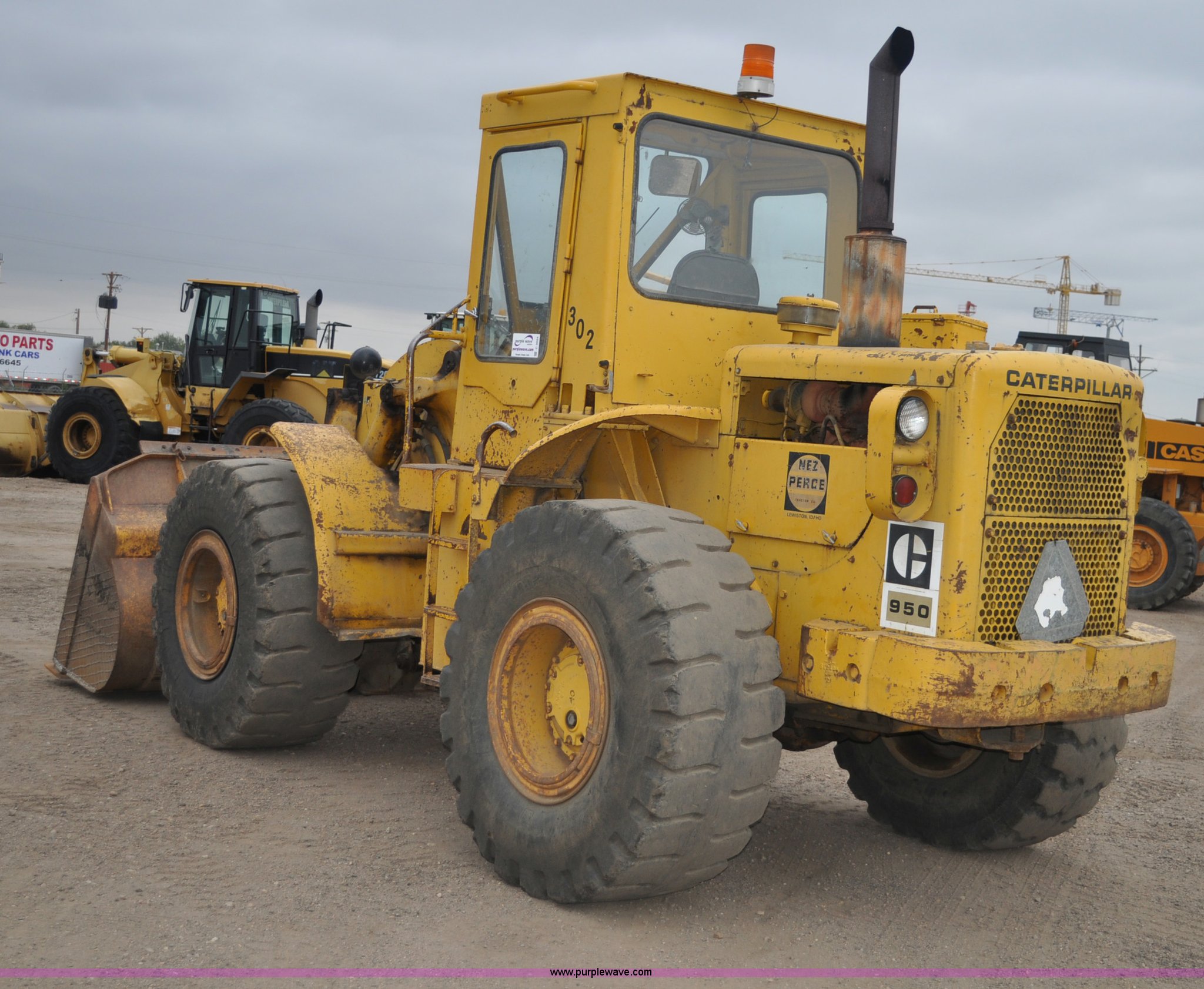 Purple Wave is selling a used Wheel Loader in Colorado. This item is a 1970 Caterpillar 950 wheel loader with the following: 10,732 actual hours, Caterpillar 3304T diesel engine, Four speed shuttle shift transmission, Enclosed cab, Heat, Work lights, 103" bucket, Bolt-on edge, Air brakes, 20.5-25 tires, 28,500 lbs. base operating weight, Former county machine, Serial 81J3015