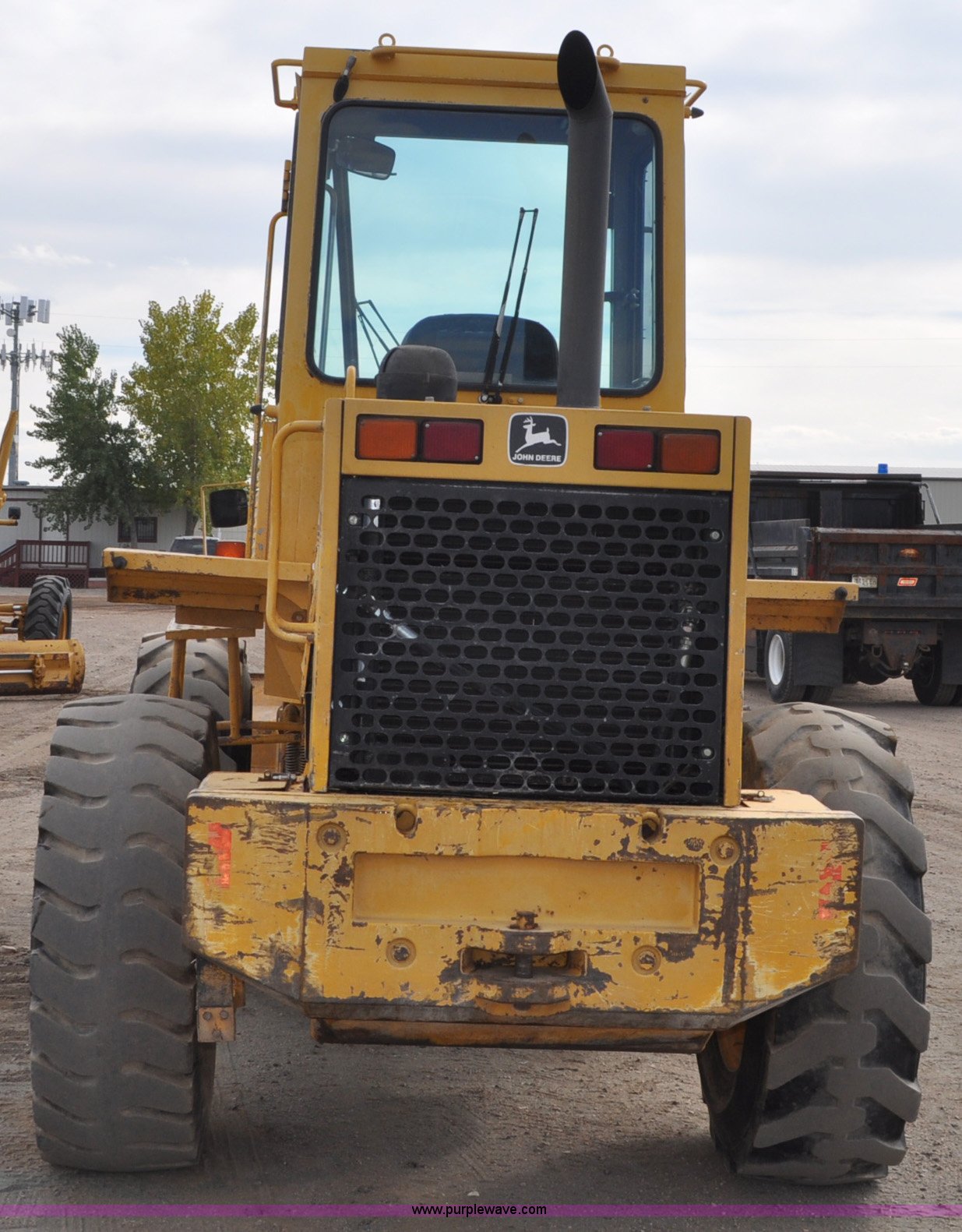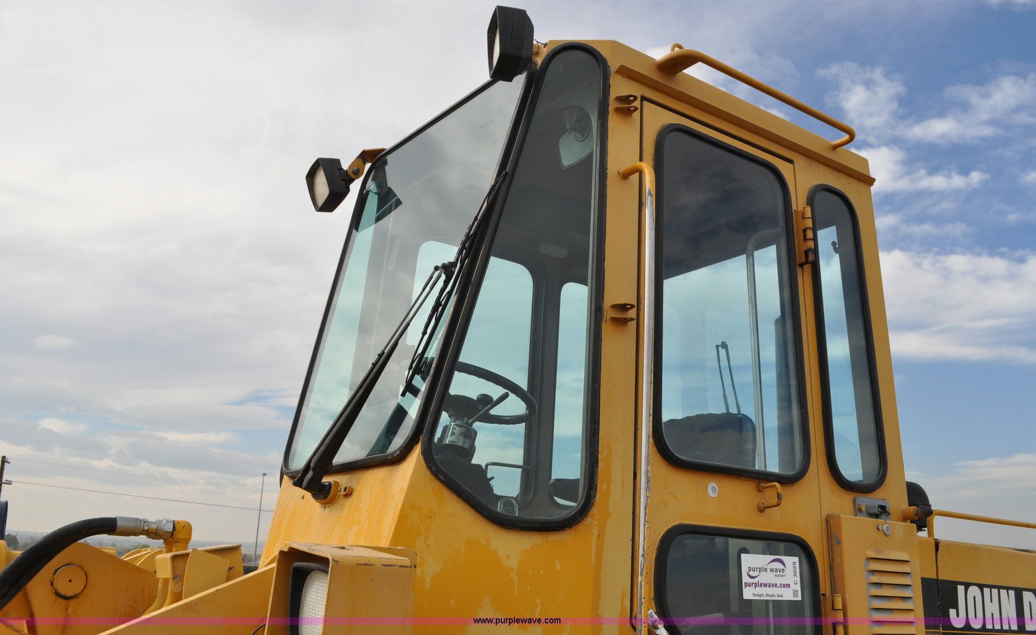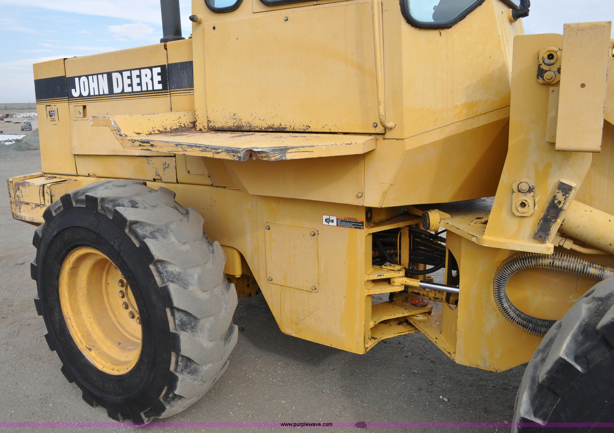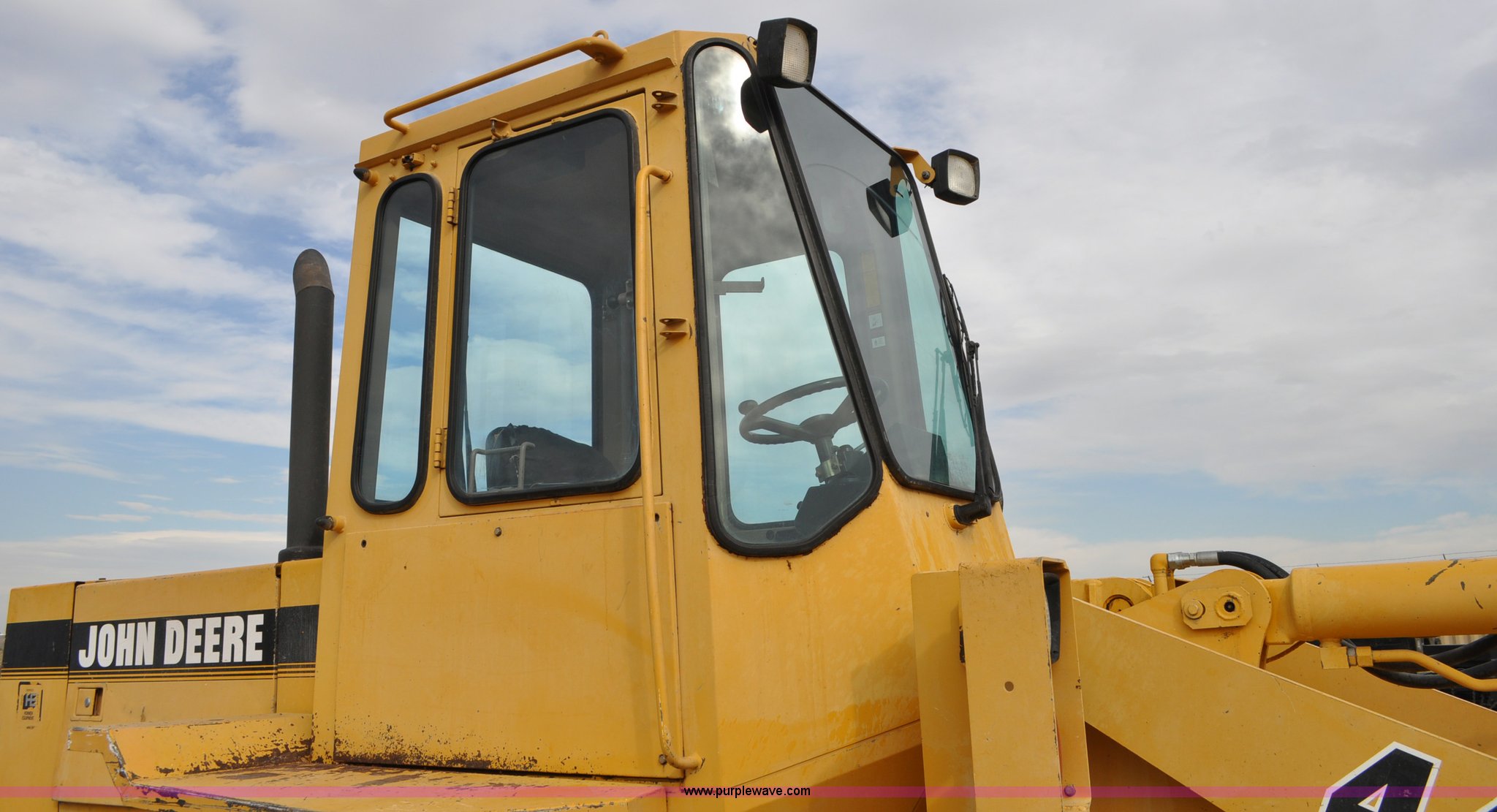 Purple Wave is selling a used Wheel Loader in Colorado. This item is a 1988 John Deere 444E articulated wheel loader with the following: 19,433 hours on meter, John Deere 4045TT four cylinder turbo engine, 95 HP, Serial T04045T388038, Two speed shuttle shift transmission, Enclosed cab, Heat, AM/FM, Joystick bucket control, Work lights, 93" bucket, 1.75 cu. yd. capacity, Bolt-on edge, 17.5-25 tires, 21,064 lbs. base operating weight, Serial CK444EB00129