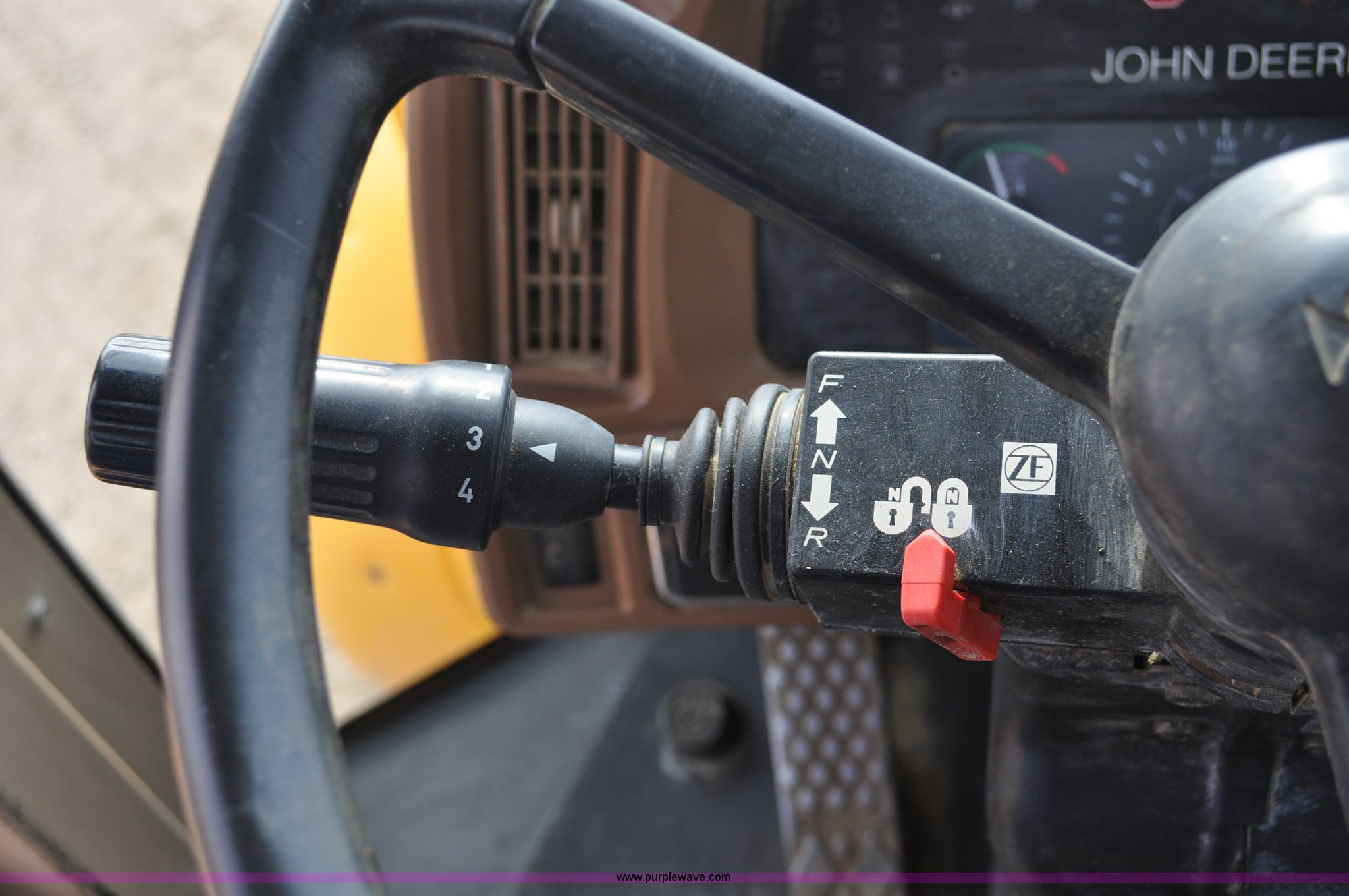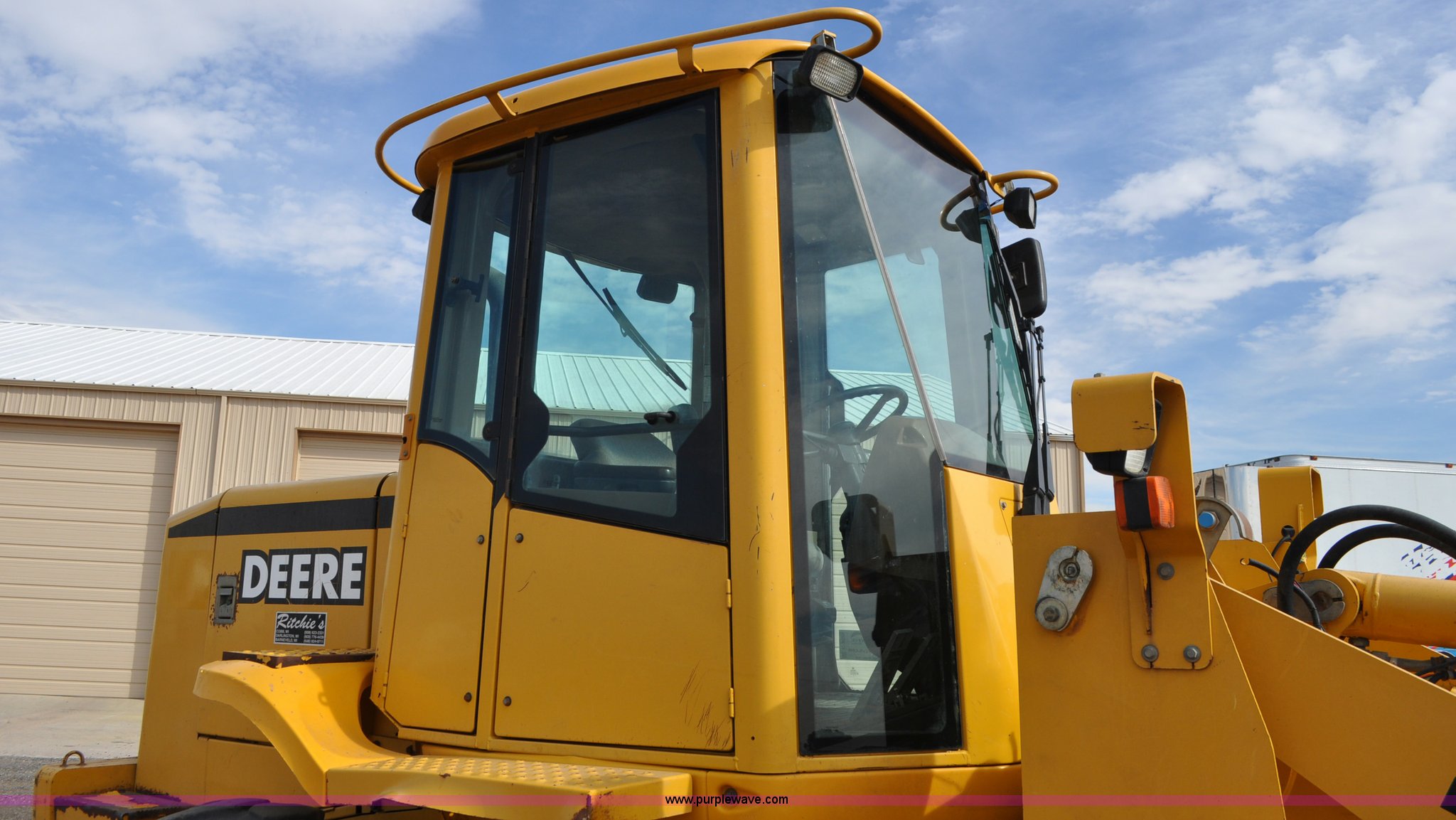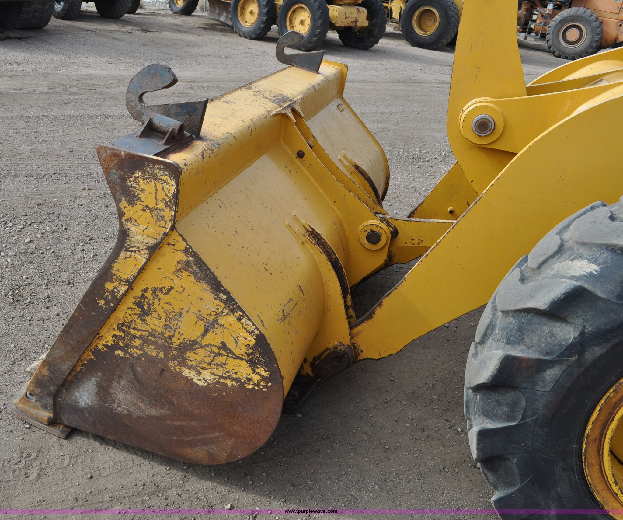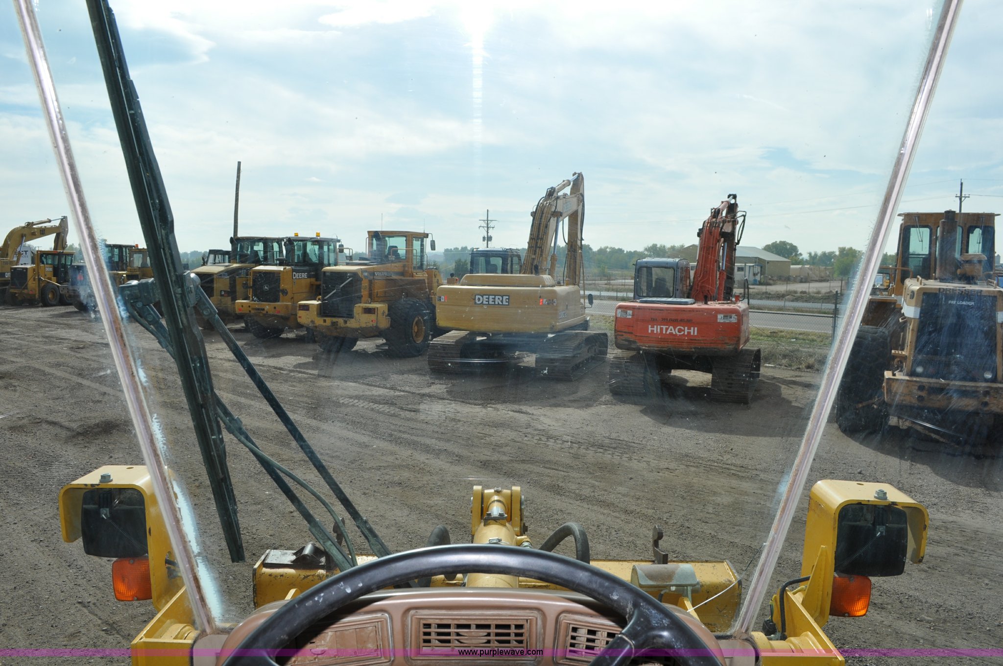 Purple Wave is selling a used Wheel Loader in Colorado. This item is a 2000 John Deere 444H wheel loader with the following: 14,855 hours on meter, John Deere 4045 turbo diesel engine, 110 HP, Serial T04045T844113, Four speed shuttle shift transmission, Enclosed cab, AC and heat, Suspension seat, Tilt steering wheel, Joystick loader control, Work lights, Front and rear windshield wipers, 94" bucket, 2.5 cu. yd. capacity, Bolt-on edge, 17.5-25 tires, 21,457 lbs. base operating weight, Serial DW444HX575579