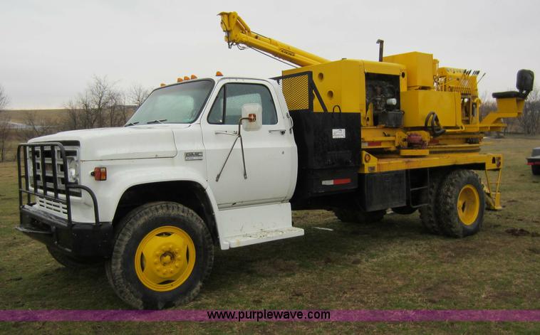 Purple Wave is selling a used Drilling Rig Truck in Oklahoma. This item is a 1975 GMC 6000 drilling truck with the following: 56,657 miles on odometer, Chevrolet 350cid gas engine, Five speed transmission with two speed axle, Hydraulic brakes, Micro brake lock, 2.5" Kelley bar, Sterling CTC drill rig, Serial 1450, Ford 300 engine, 1,516 hours on meter,, 8.00R20 tires, 21,200 GVWR, 7,000 FAWR, 14,200 RAWR, Hydraulic leak on one outrigger and one valve port