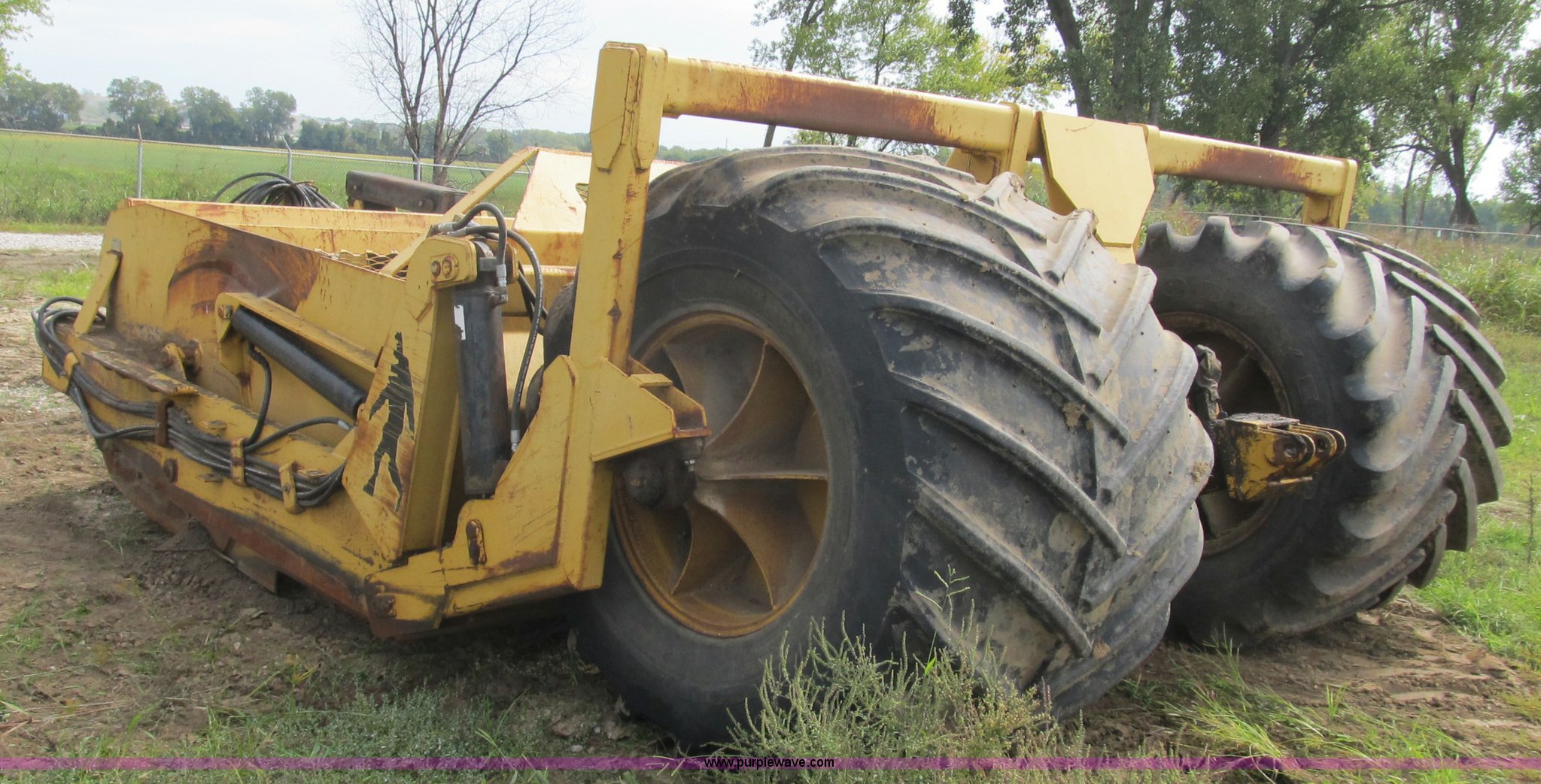 Purple Wave is selling a used Pull Type Scraper in Missouri. This item is a Scoop-all 17P2T Big Foot hydraulic scraper with the following: 17 cu. yd. capacity, Low ground pressure, (4) rear auxiliary hydraulics, 68x50-32 tires, Recently replaced cutting edge, side bits, and hydraulic hoses, Serial 129953-1