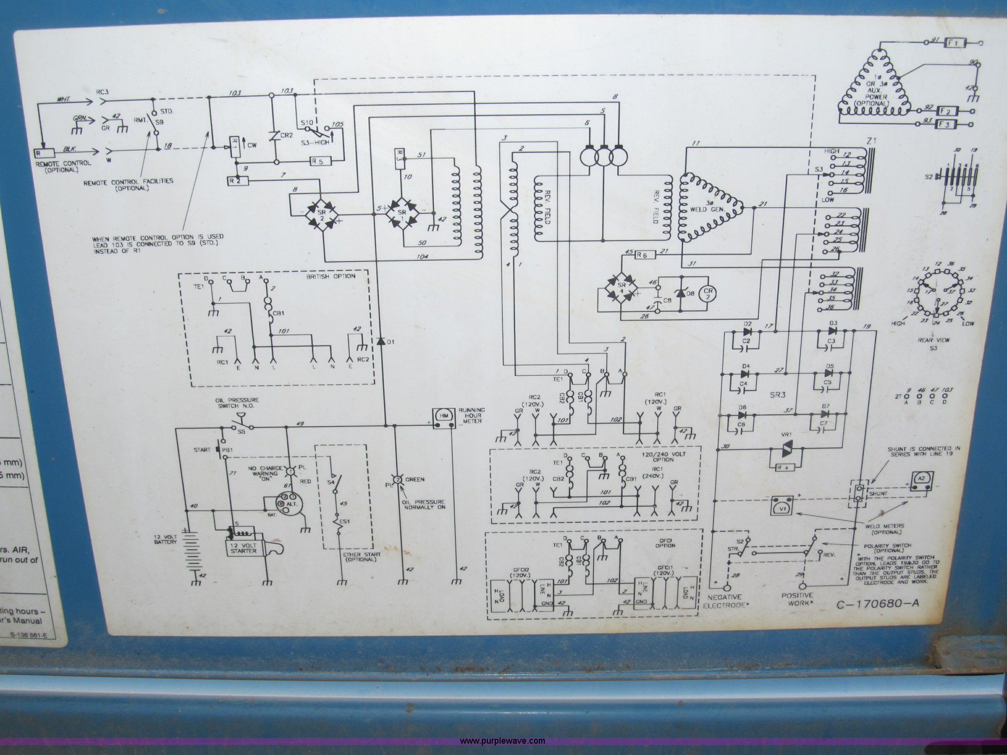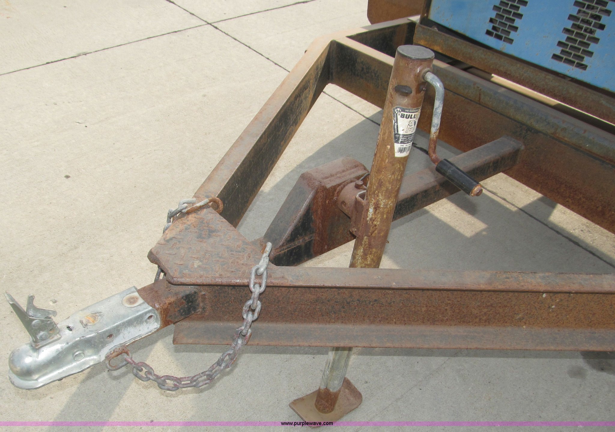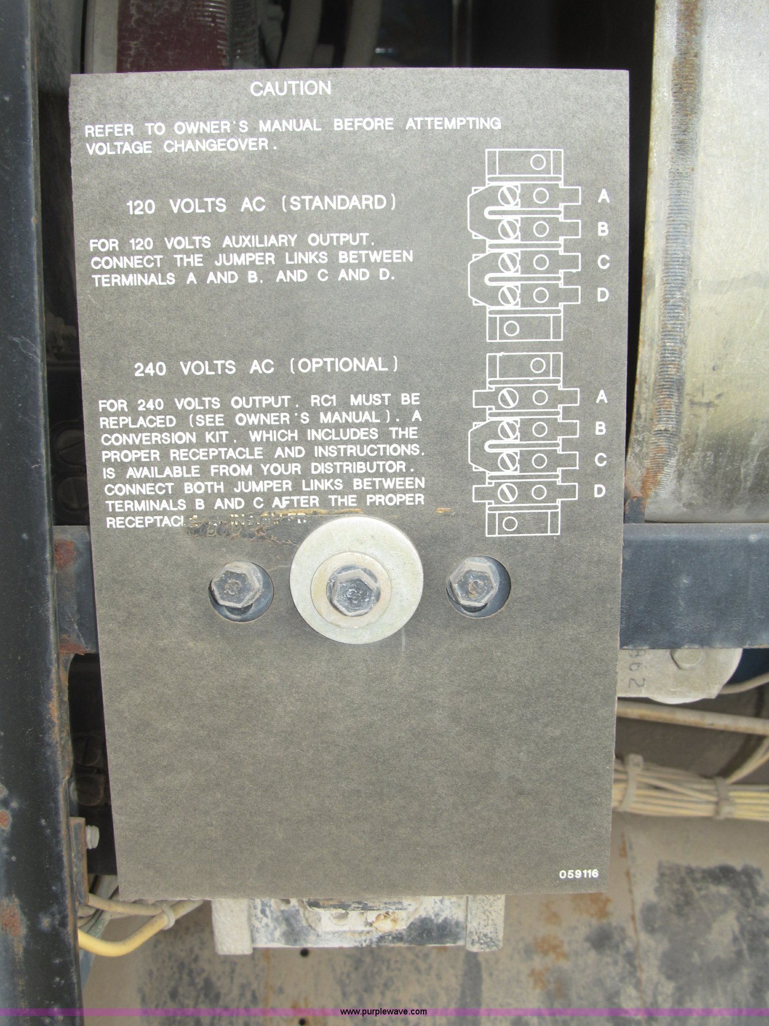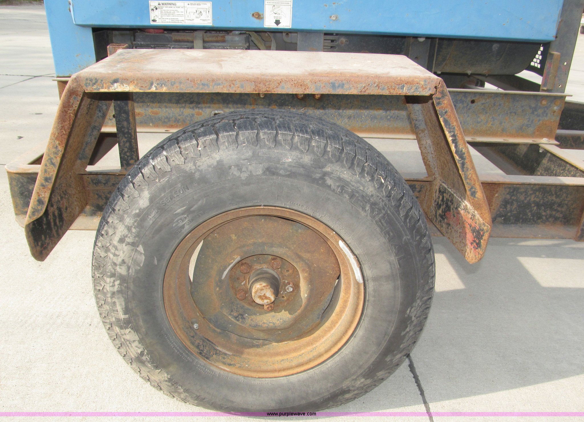 Purple Wave is selling a used Welder (Manual) in Nebraska. This item is a Miller Big Blue 400D portable welder/generator with the following: 4,040 hours on meter, Hours may vary, Deutz three cylinder diesel engine, 400 amps at 100% duty cycle, Welding range 45 to 500 amps, 1,850 RPM max, 12v battery, Front mount cable hangers, Tweco connector, Ground adapter on console, Lifting eye, 2" ball hitch, 2" rear ball hitch, Drain plug with hose extension/coupler for field service, P235/75R15 tires, Approx. 9.5'L x 9.75'W x 6'H overall, Operational, Frame and fender rust, Serial KF991075, EIN 126