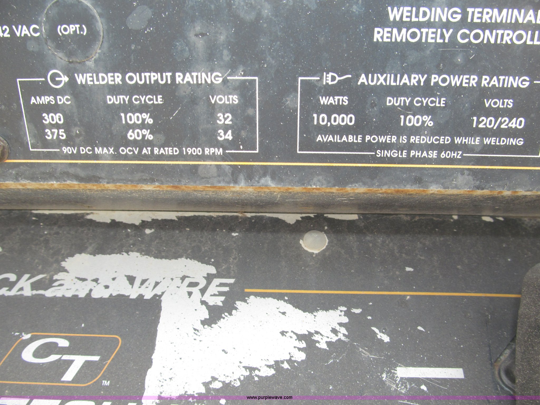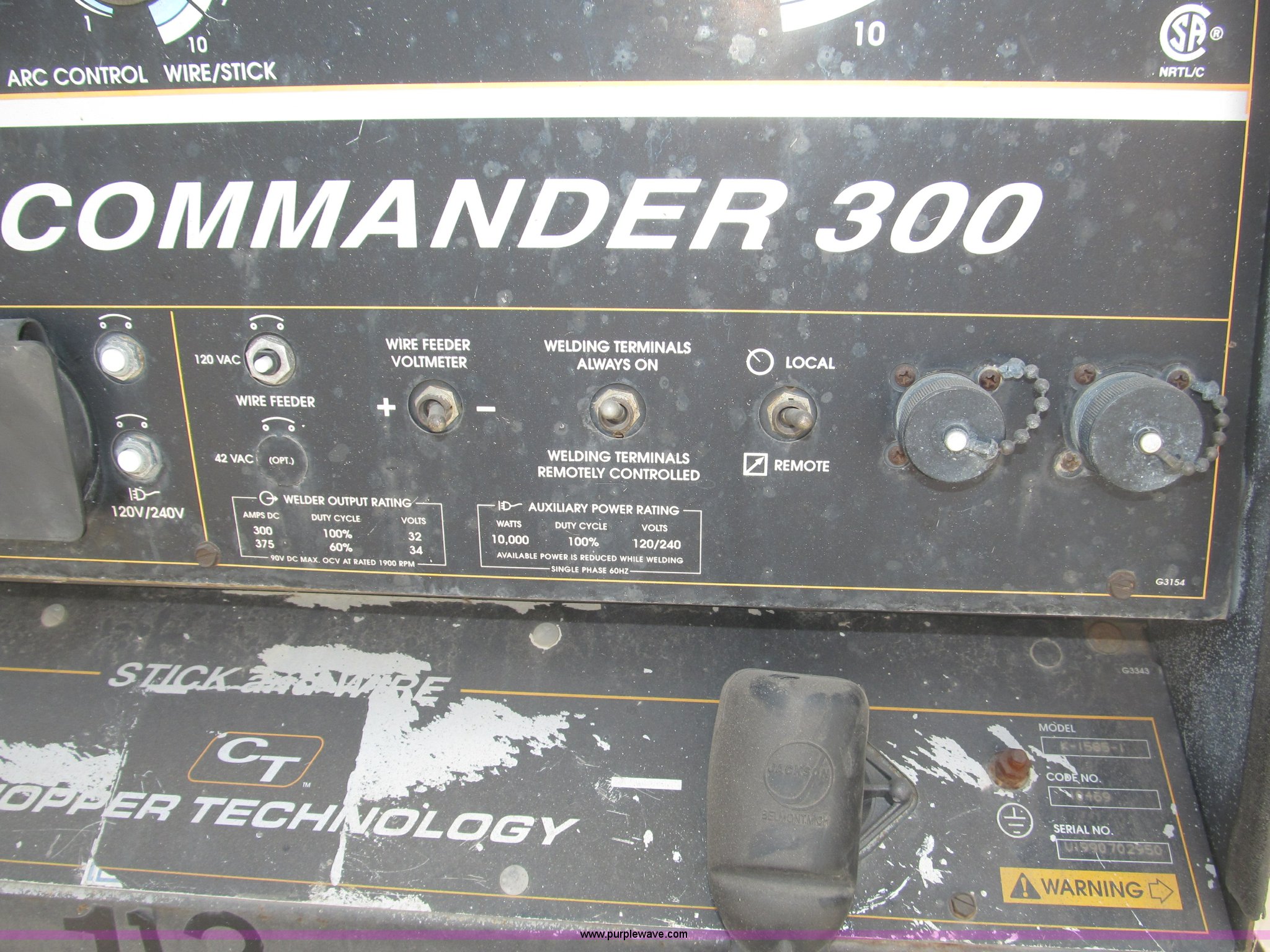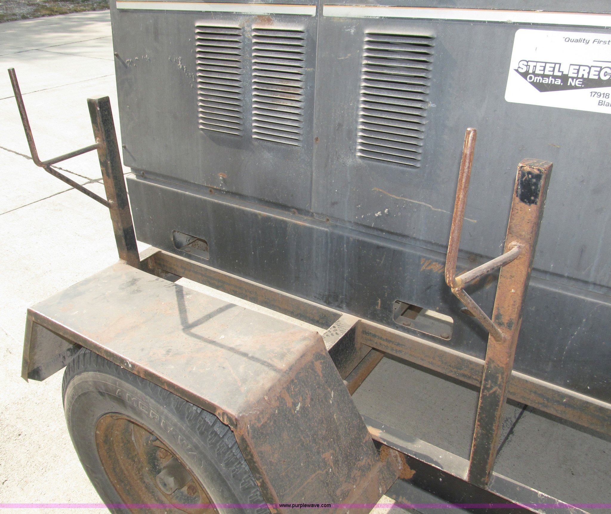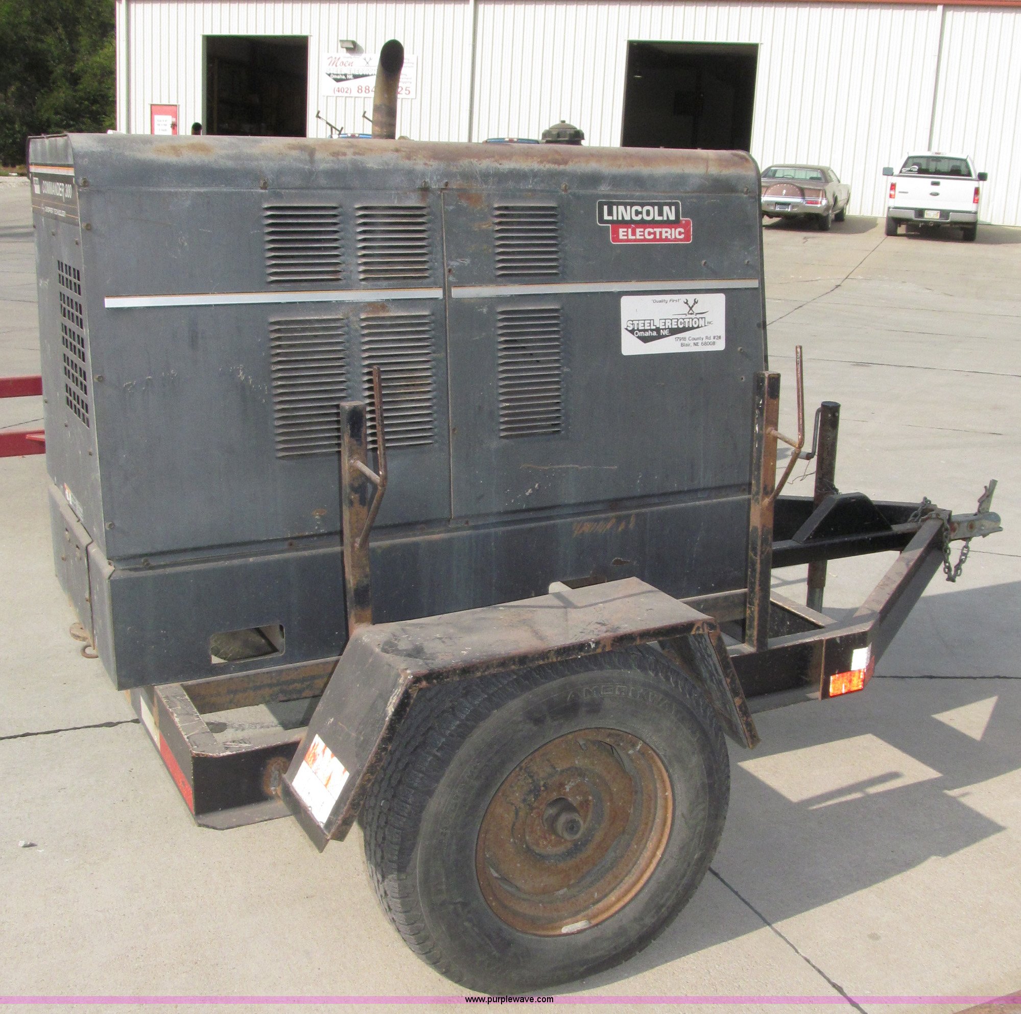 Purple Wave is selling a used Welder (Manual) in Nebraska. This item is a Lincoln Electric Commander 300 portable welder/generator with the following: 8,187 hours on meter, Hours may vary, Deutz three cylinder diesel engine, Stick/TIG - CC and wire welding, 300 amp DC at 100% duty cycle, 375 amp DC at 60% duty cycle, 10,000 watt generator, Wire feeder volt meter, (2) remote connector receptacles, Ground adapter on console, Tweco adapters, Cable hangers, One bent, Lifting eye, Fork pockets, (2) 110v outlets, One damaged, 125/250v 50 amp outlet, Drain plug with hose extension/coupler for field service, 2" ball hitch, (2) safety chains, Rear hitch/chains, Unusable due to welder placement on frame, Approx. 9'7"L x 6'9"W x 70"H overall, P235/75R15 tires, Serial U1990702950, EIN 112