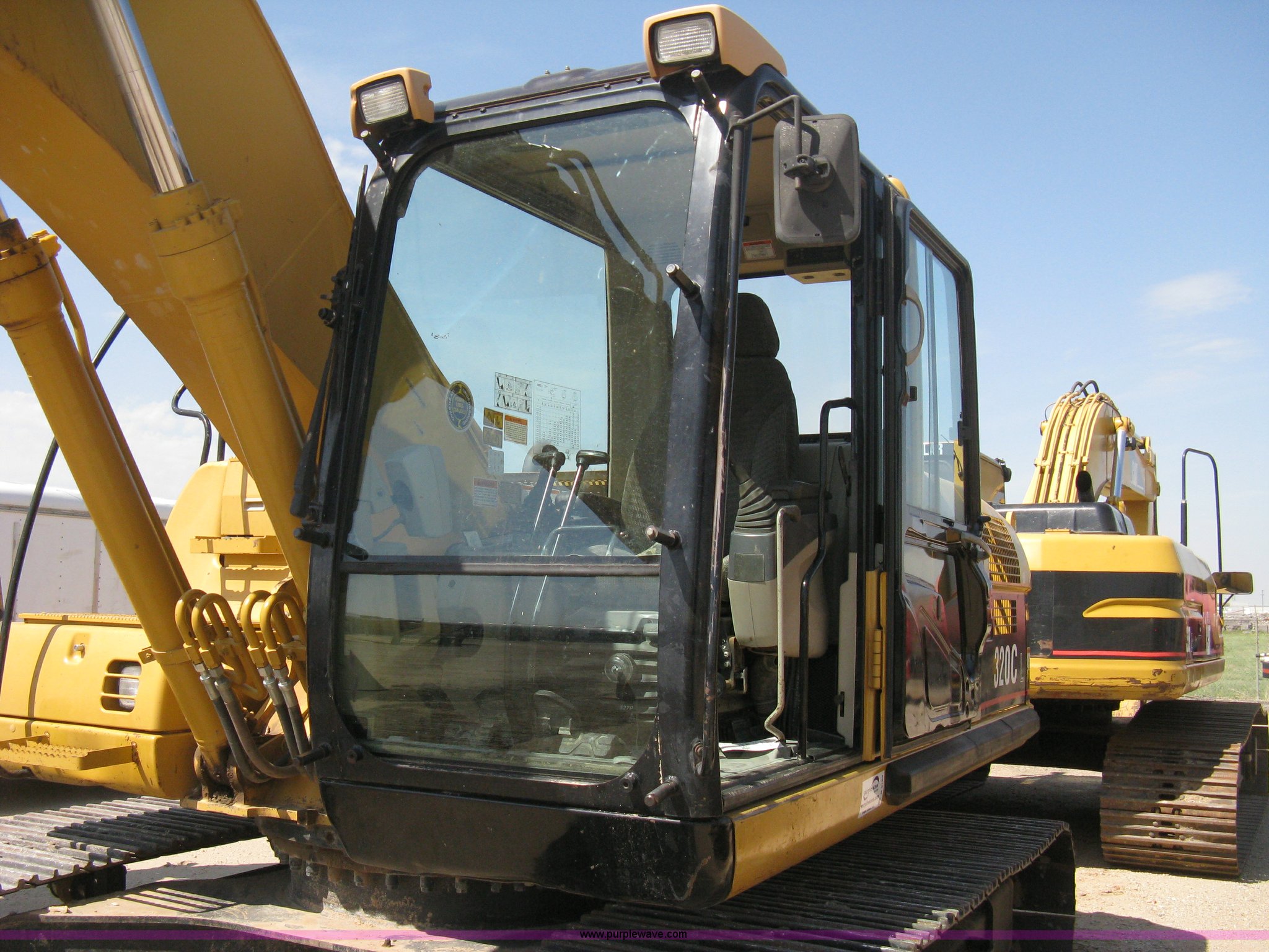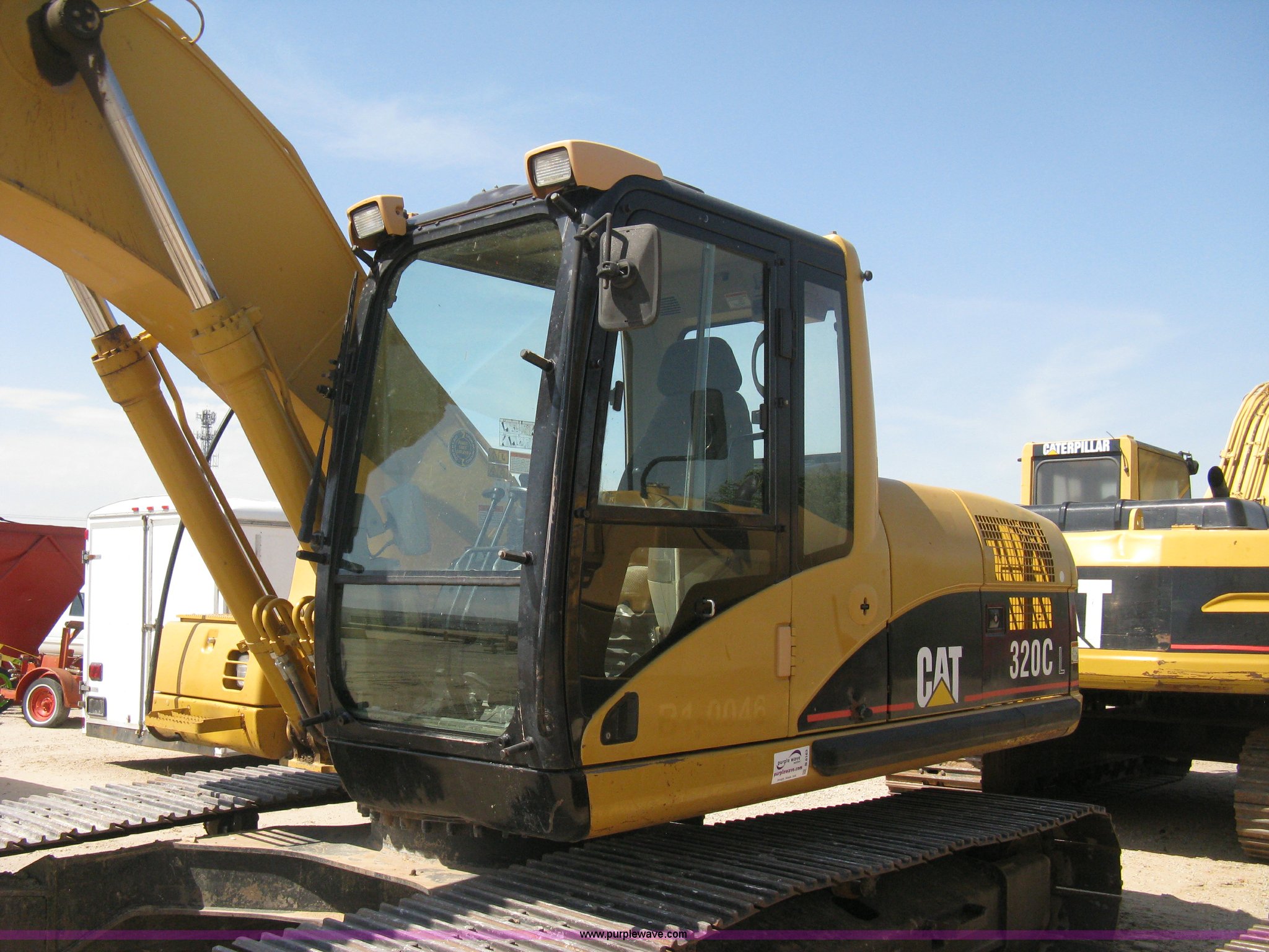Purple Wave is selling a used Hydraulic Excavator in Kansas. This item is a 2001 Caterpillar 320CL excavator with the following: 8,803 hours on meter, Caterpillar 3066 six cylinder diesel engine, 138 HP, Serial 7JK47322, Enclosed cab, AC, heat, and defrost, Suspension seat, Wiper blade, Work lights, Pop-up roof-top window with sliding sun shade, Panasonic/Caterpillar weatherband radio, 9.5' stick, Caterpillar quick attach coupler, 32" triple grouser tracks, 42,800 lbs. base operating weight, Serial ANB00851, Unit# B1-0046