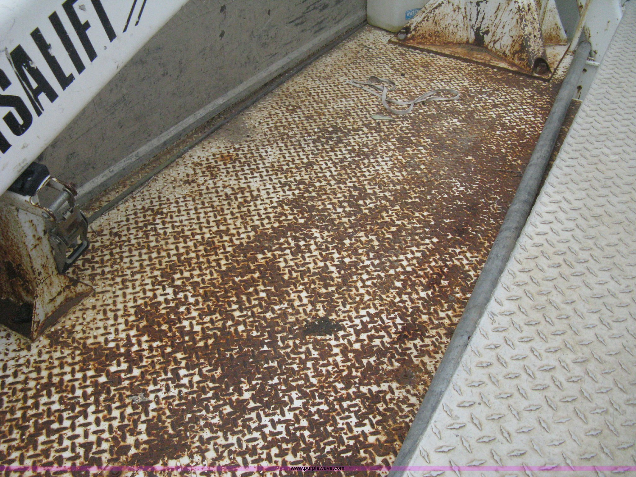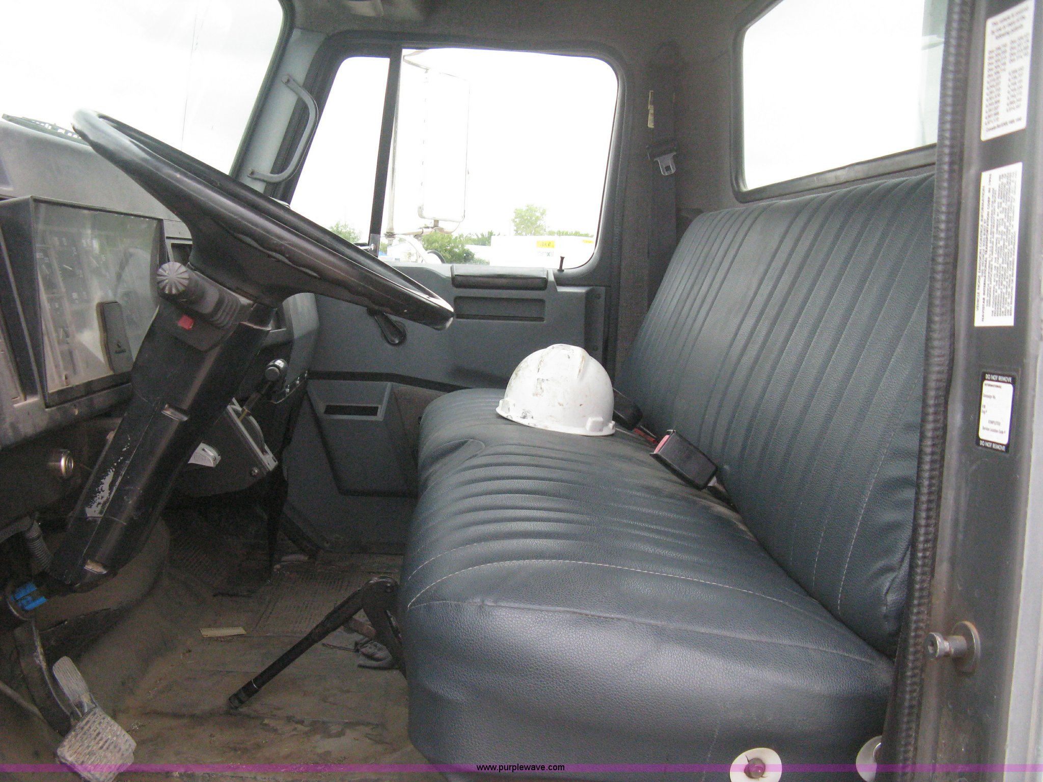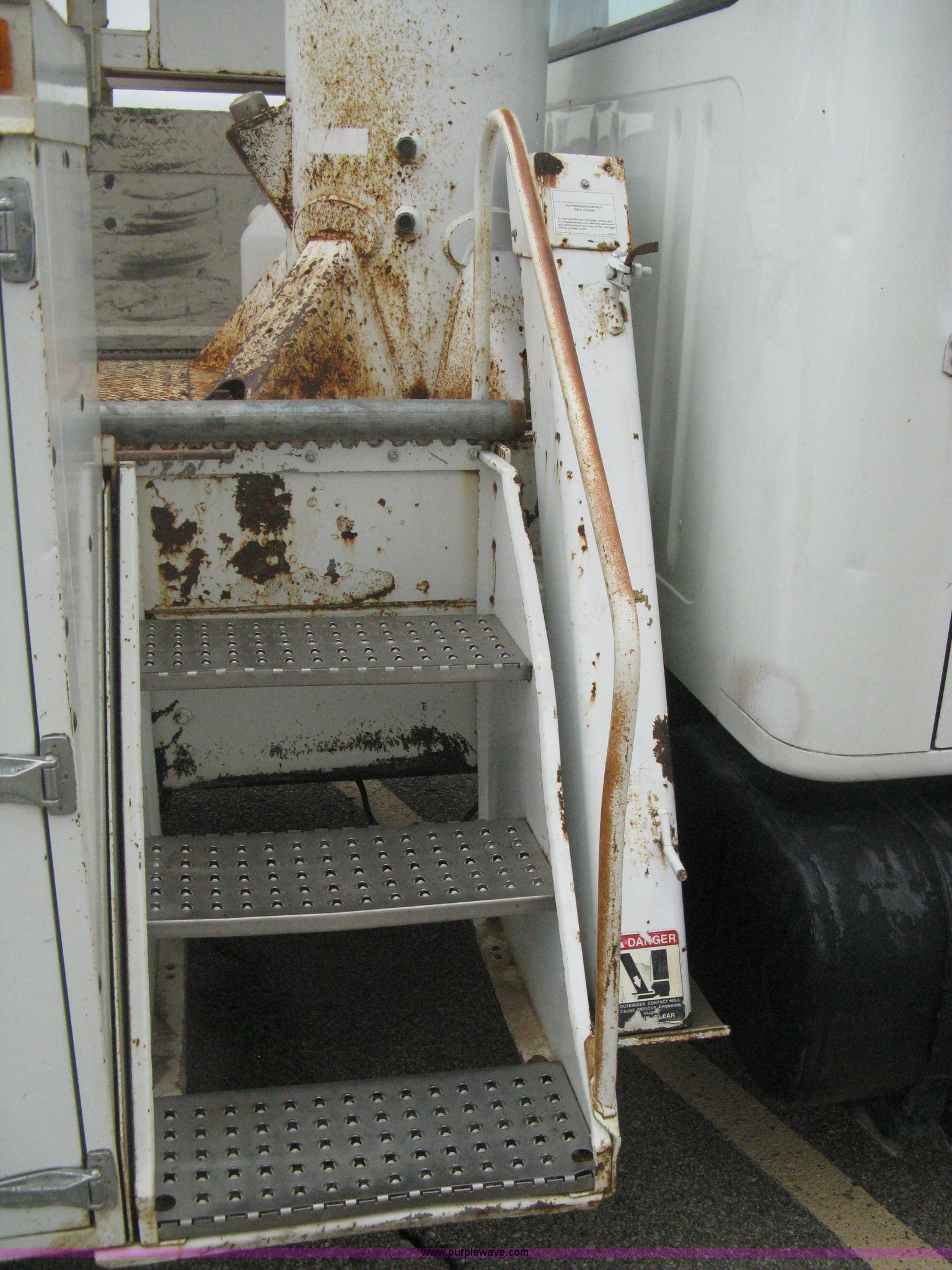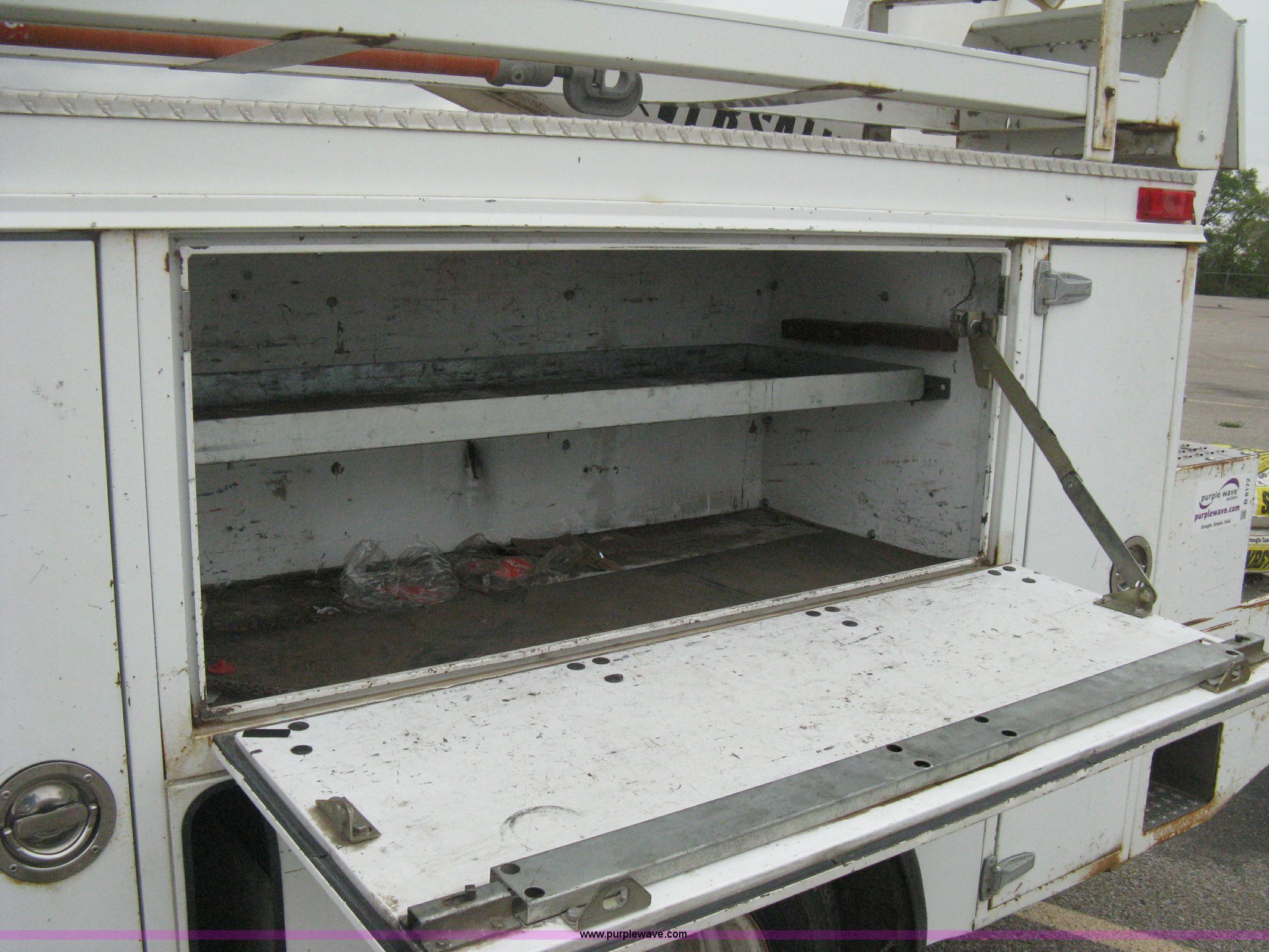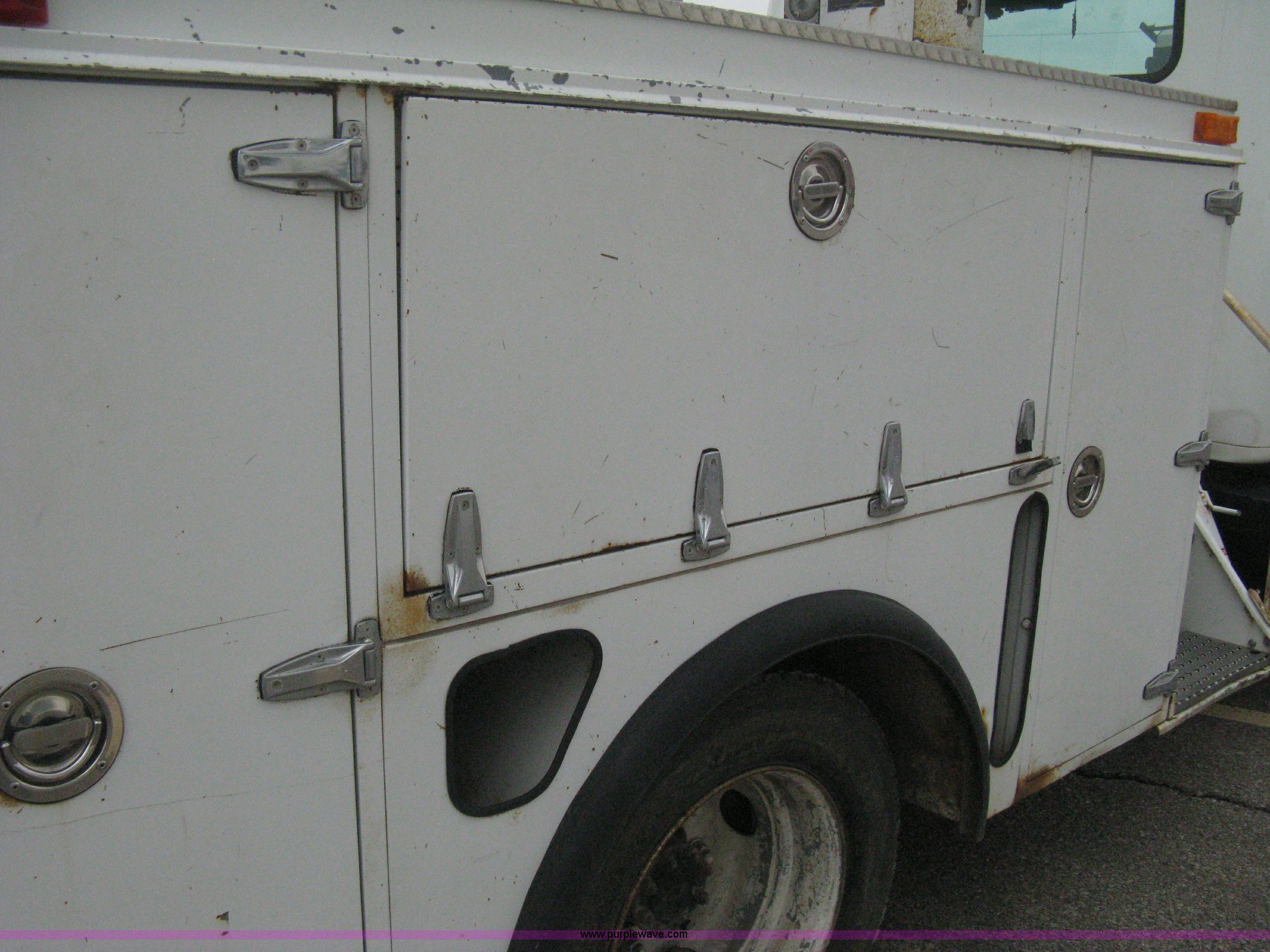 Purple Wave is selling a used Service Truck in Kansas. This item is a 1996 International 4700 Lo-Profile bucket truck with the following: 135,646 miles on odometer, 1,405 PTO hours on meter, International Navistar B190 V8 diesel engine, Recently rebuilt, less than 100 miles, Engine power issues when towing, Automatic transmission, AC and heat, AM/FM/cassette, Manual windows and locks, Vinyl interior, Electric trailer brake booster, PTO, Work lights, Spotlight, Beacon, 12'L x 8'W utility bed, (7) compartments, Step up rear bumper, Top mounted supply tray and tubes, (2) hydraulic outriggers, 1995 Versalift telescopic man lift, Model VSG3300I, Serial W9533, 350 lb platform capacity, 33' platform height, Fiberglass basket, Auxiliary hydraulic remotes on bed,, Pintle hitch, Trailer wiring, 245/70R19.5 tires, Cracked windshield, EIN 232