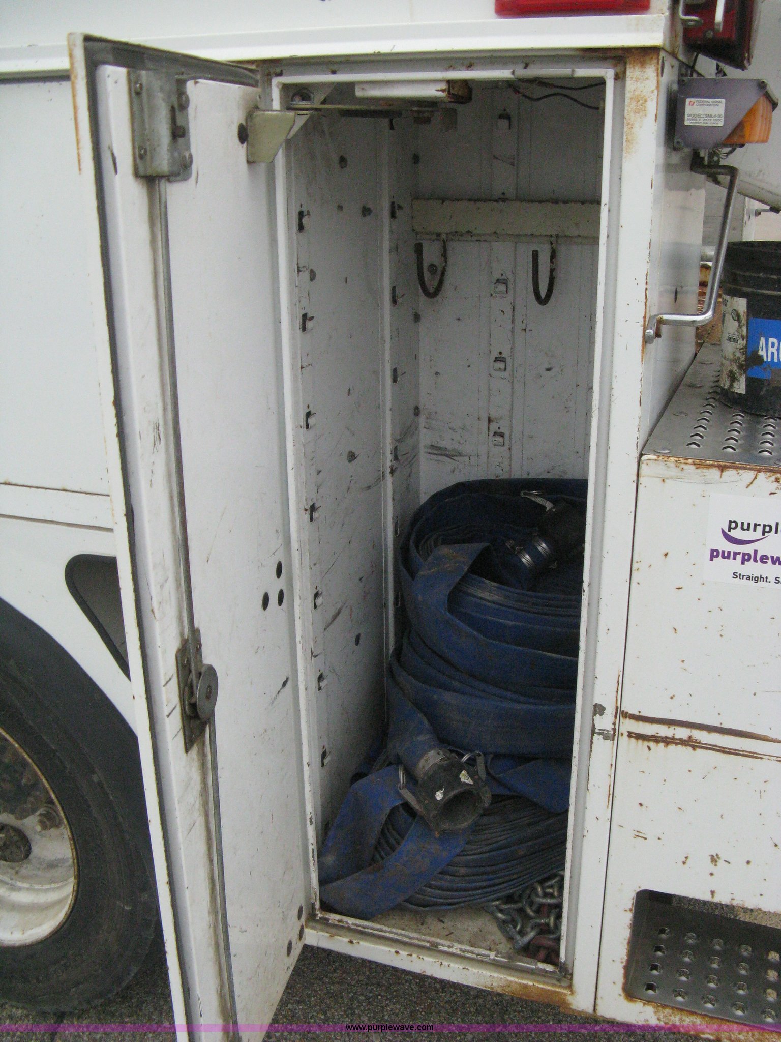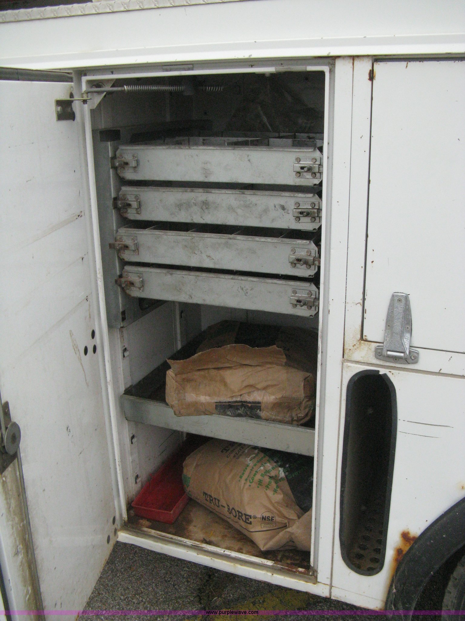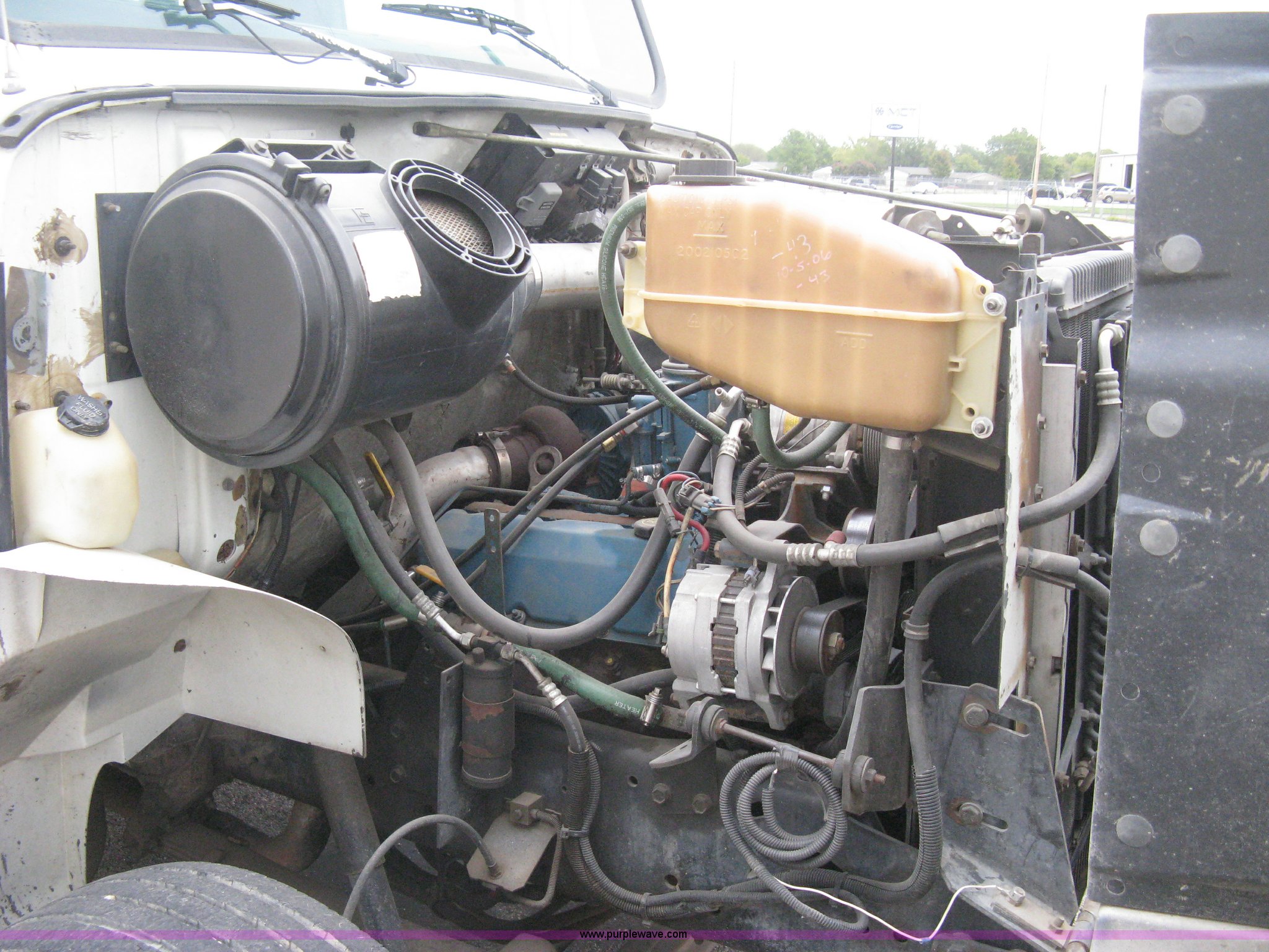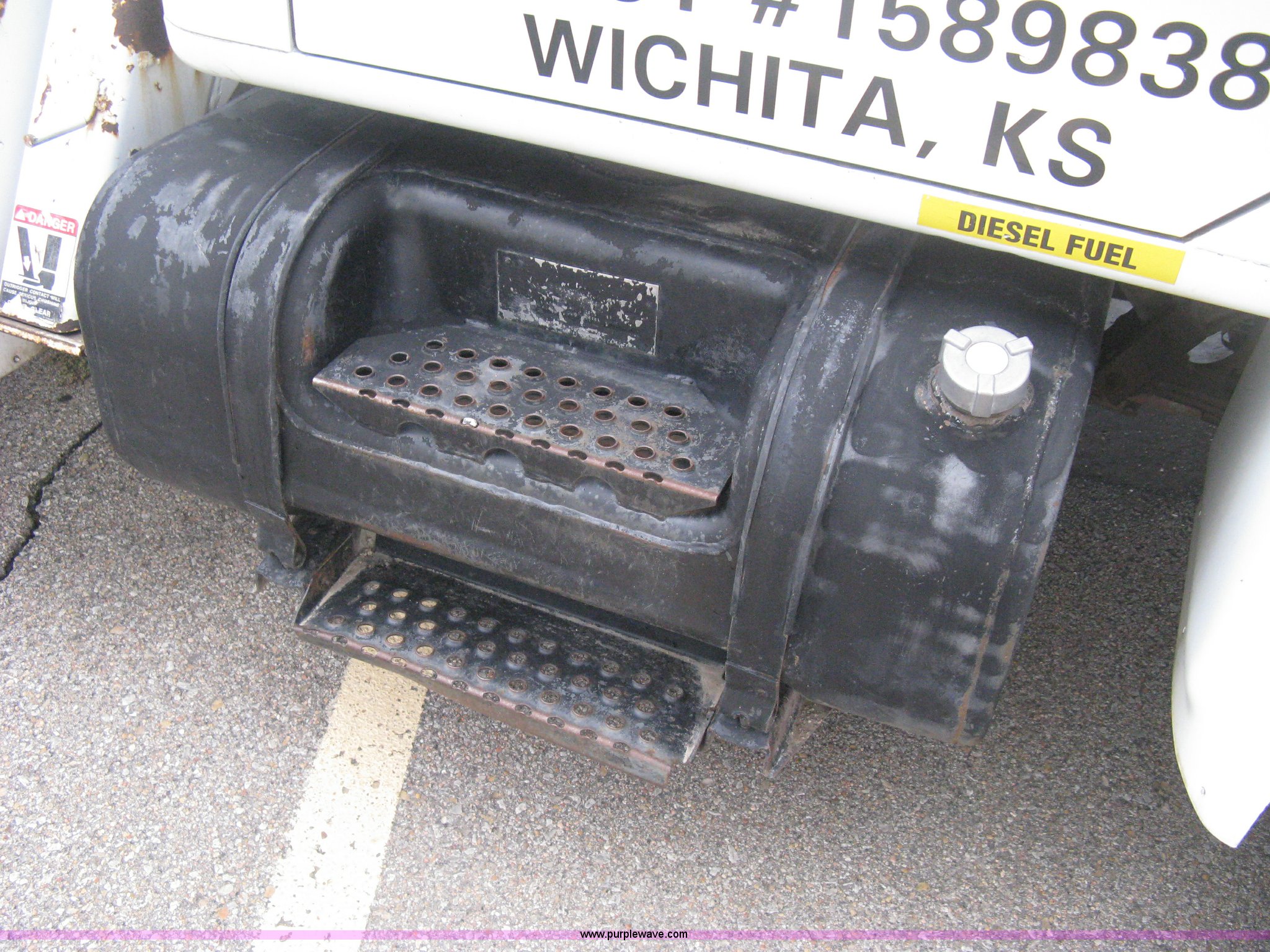 Purple Wave is selling a used Service Truck in Kansas. This item is a 1996 International 4700 Lo-Profile bucket truck with the following: 135,646 miles on odometer, 1,405 PTO hours on meter, International Navistar B190 V8 diesel engine, Recently rebuilt, less than 100 miles, Engine power issues when towing, Automatic transmission, AC and heat, AM/FM/cassette, Manual windows and locks, Vinyl interior, Electric trailer brake booster, PTO, Work lights, Spotlight, Beacon, 12'L x 8'W utility bed, (7) compartments, Step up rear bumper, Top mounted supply tray and tubes, (2) hydraulic outriggers, 1995 Versalift telescopic man lift, Model VSG3300I, Serial W9533, 350 lb platform capacity, 33' platform height, Fiberglass basket, Auxiliary hydraulic remotes on bed,, Pintle hitch, Trailer wiring, 245/70R19.5 tires, Cracked windshield, EIN 232
