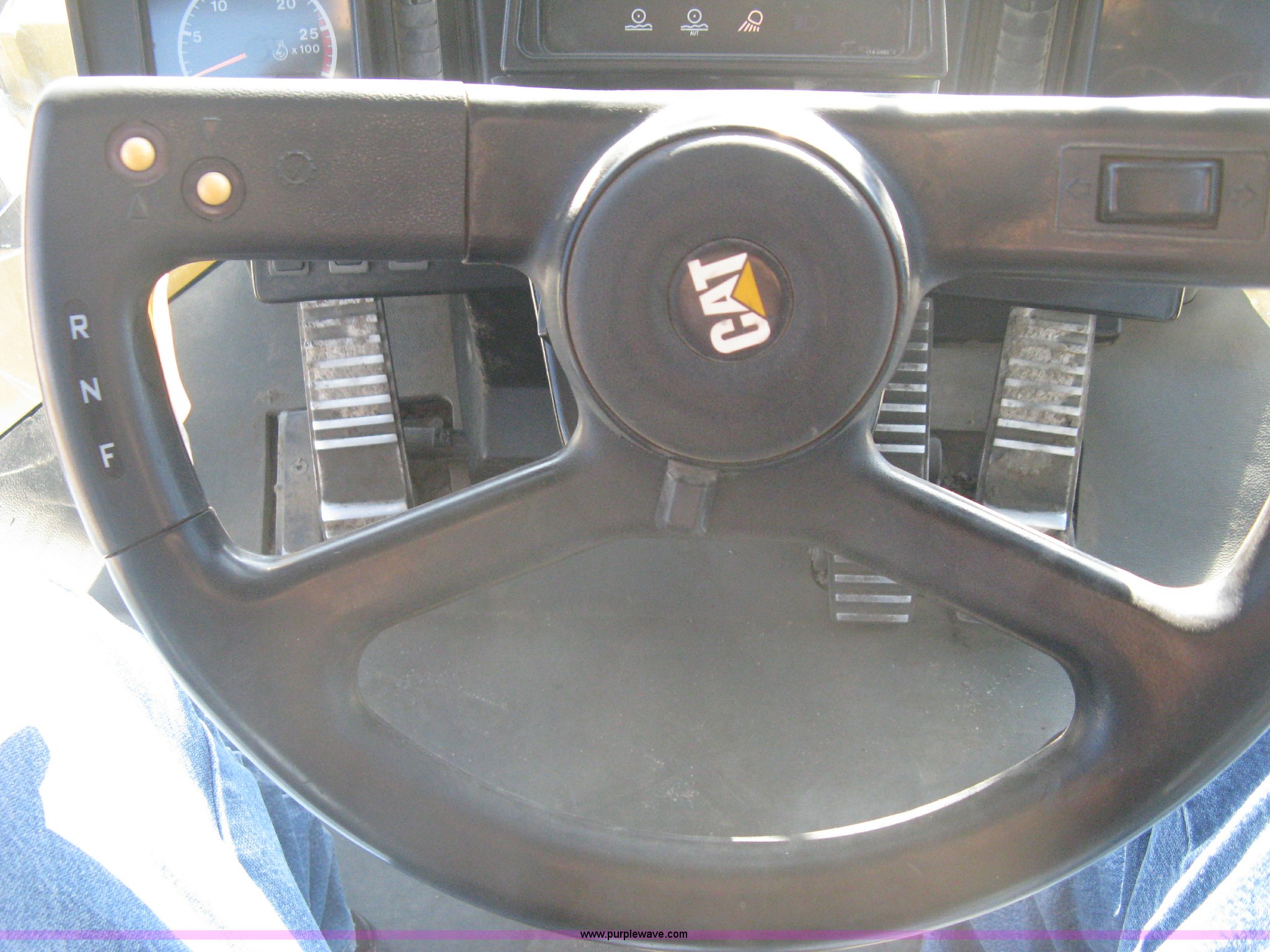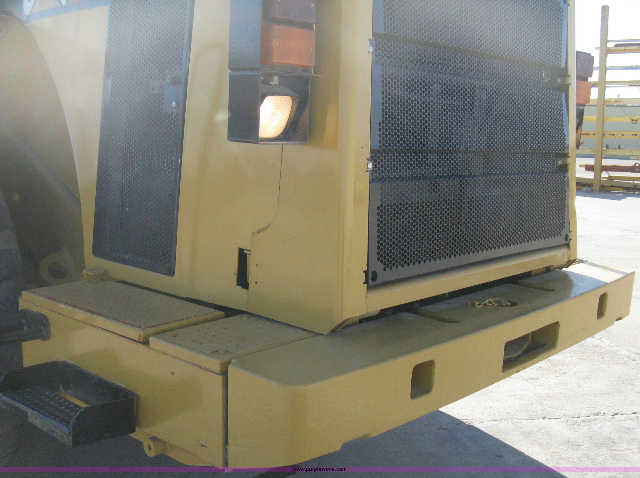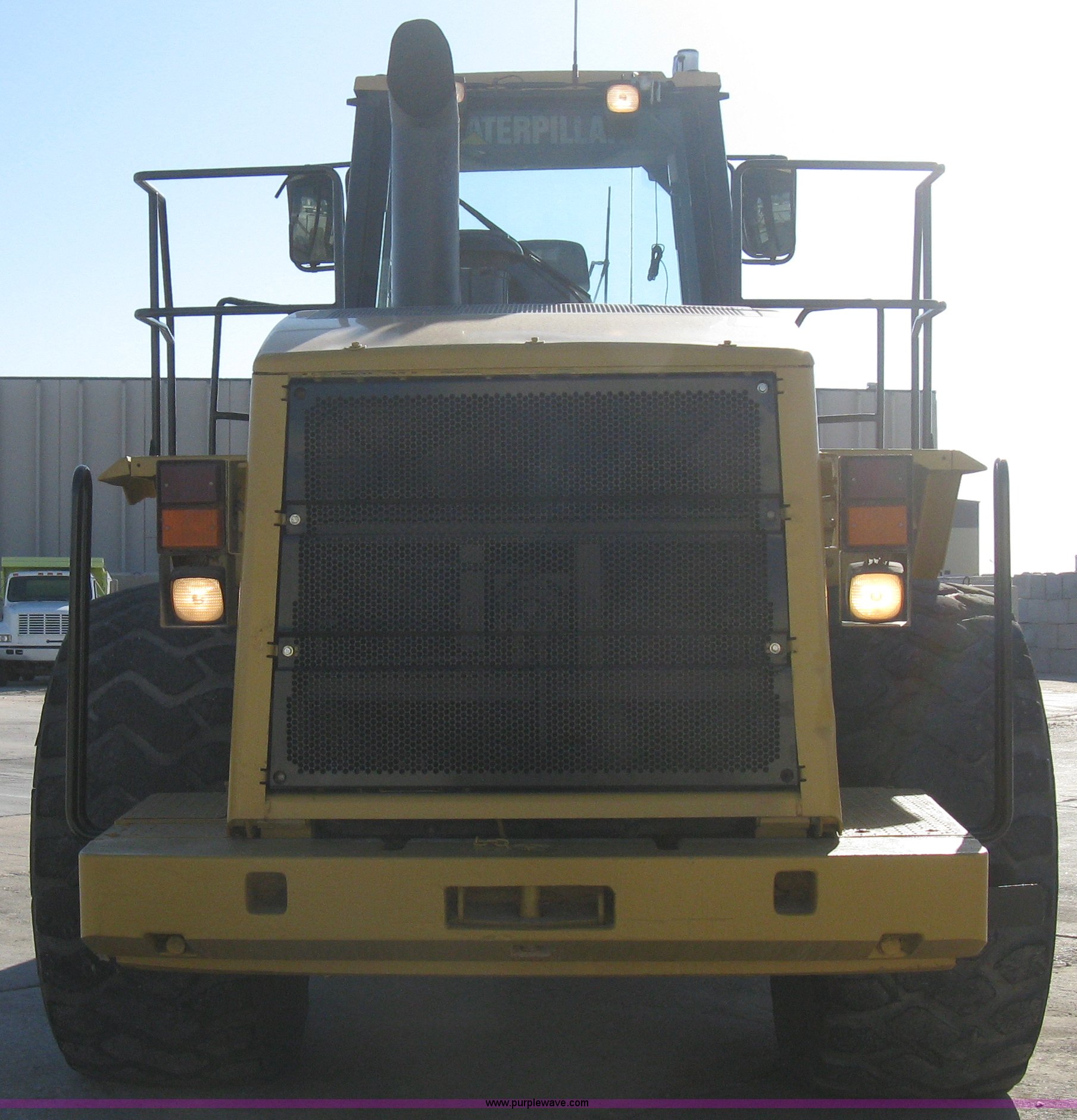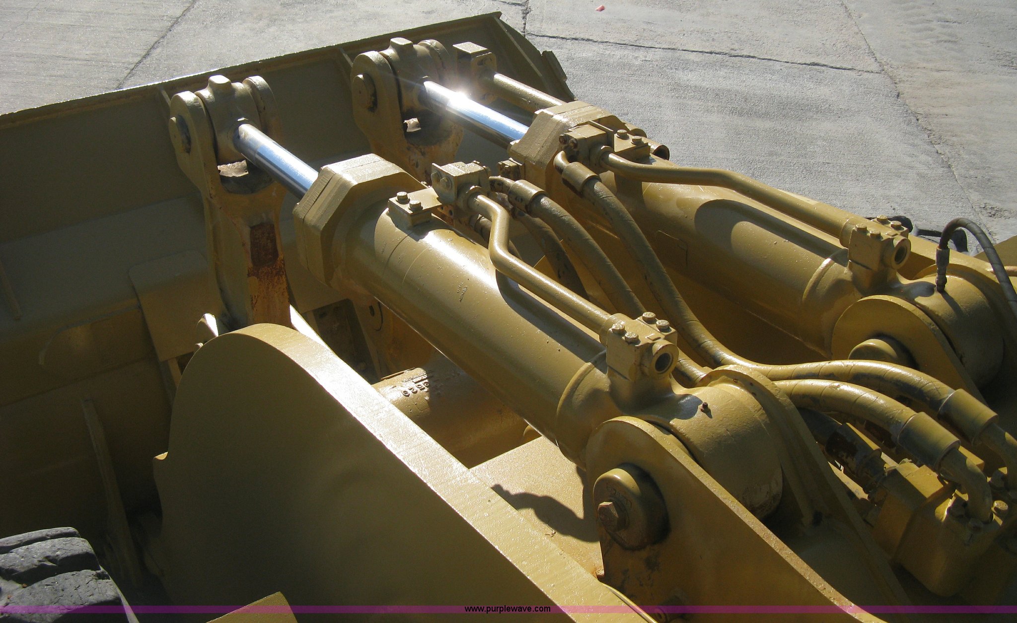 Purple Wave is selling a used Wheel Loader in Kansas. This item is a 1998 Caterpillar 980G wheel loader with the following: 28,716 hours on meter, Caterpillar 3406 diesel engine, 300 HP, Serial 41Z10764, Powershift transmission, Forward/reverse kick down button, Serial 1AY02944, Enclosed cab, AC and heat, Tilt steering, Suspension seat, Cassette radio, Sliding windows, Work lights, 11'W bucket, Bolt-on edge, Weighted rear bumper, Pin hitch, 29.5R25 CL-3 tires, 65,638 lbs. base operating weight, Left side windshield glass cracked, Serial 2KR02269