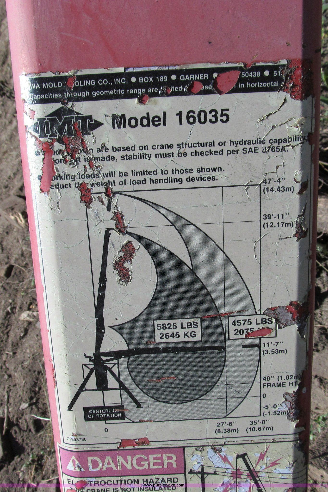 1995 IMT 16035 sheet rock crane has sold in Fayette, Missouri for $412.50. Item E3516 sold on October 25th, 2012.