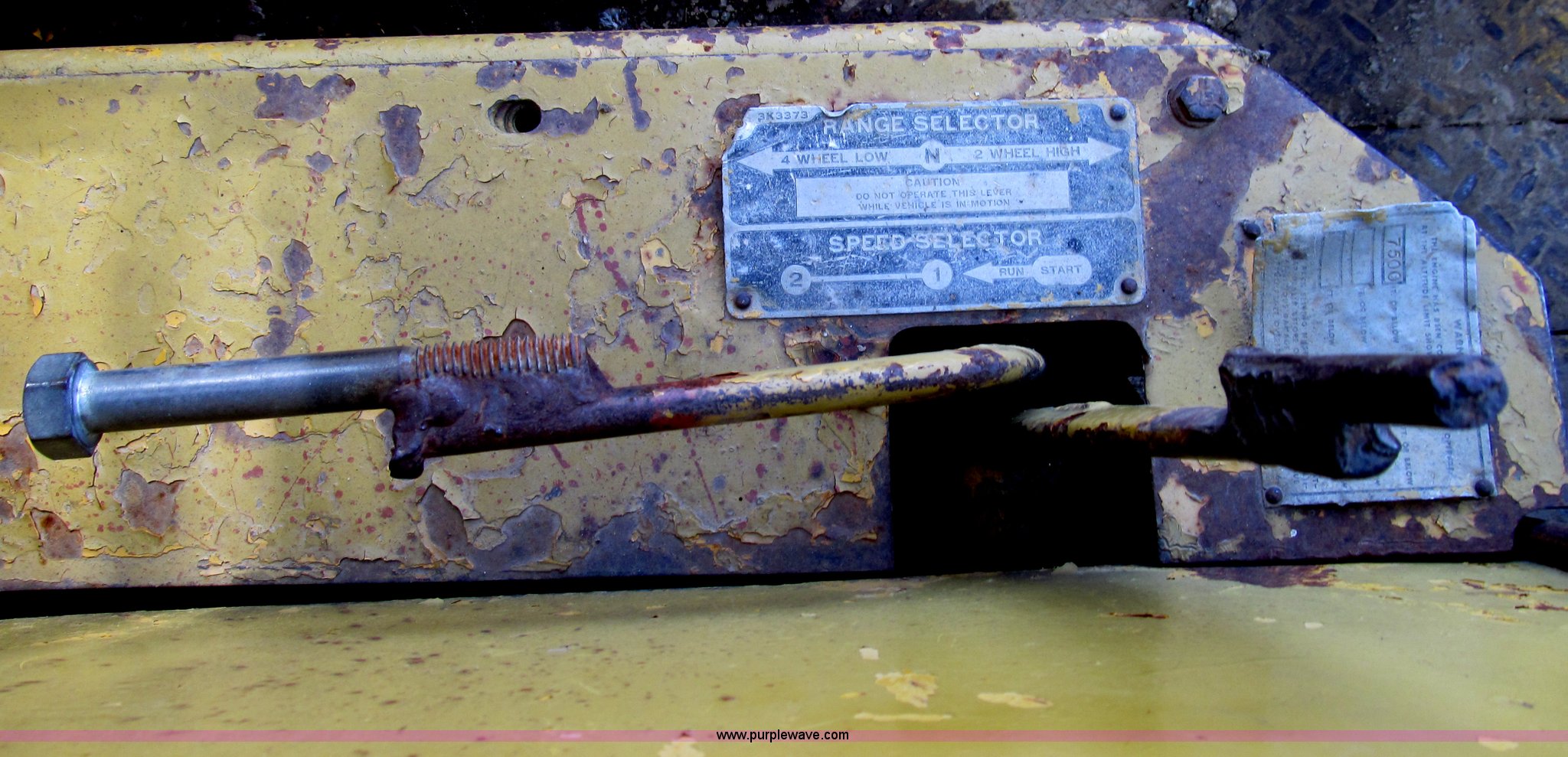 Purple Wave is selling a used Wheel Loader in Missouri. This item is a 1964 Caterpillar 966B wheel loader with the following: Hours unknown, Caterpillar six cylinder diesel engine, Series A, Serial 33A1332, Two speed transmission, Four wheel low, Two wheel high, Enclosed cab, Heat, 9'W bucket, 23.5x25 off-road tires, 16 ply, 31,000 lbs. base operating weight, Serial 75A213