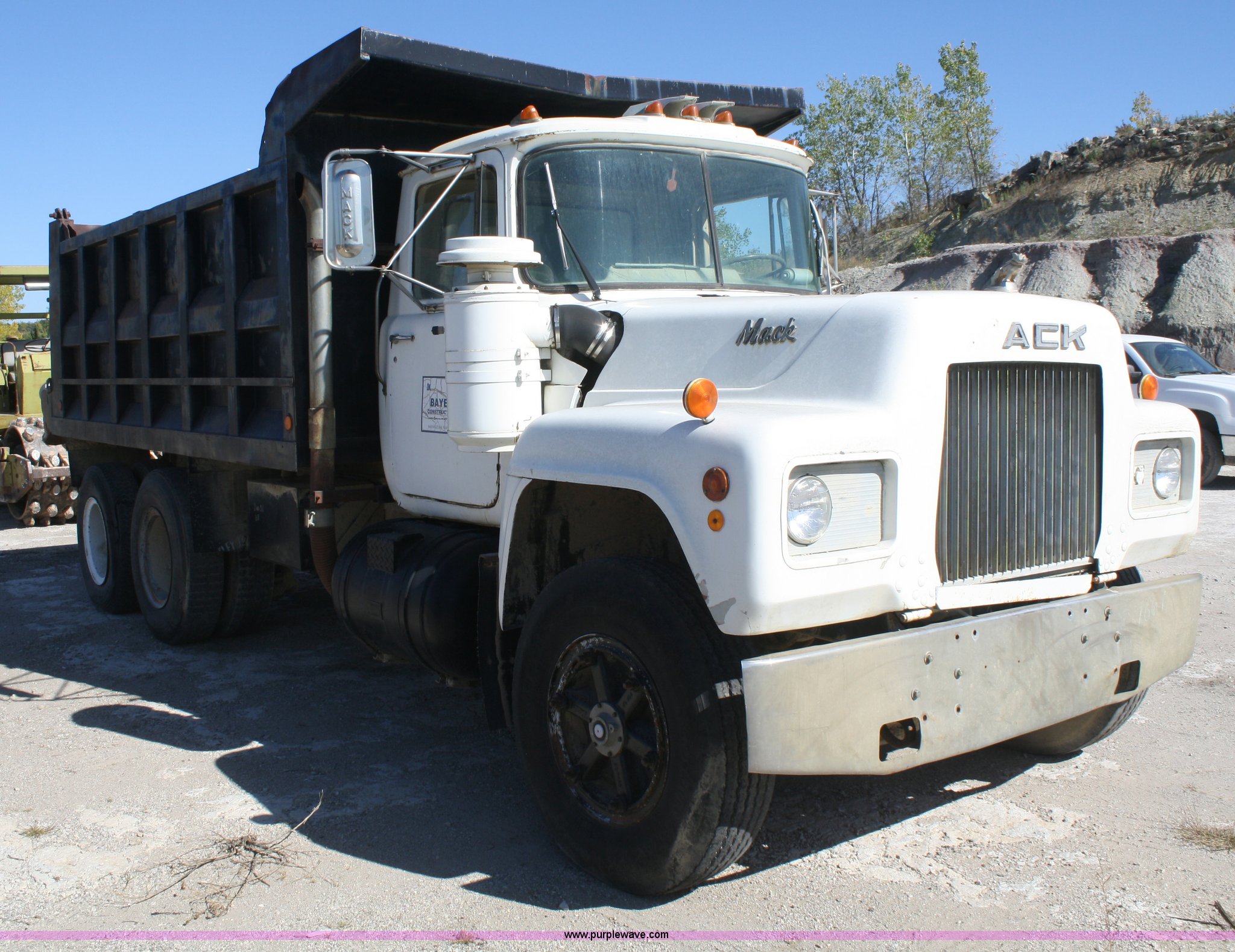 Purple Wave is selling a used Construction Dump Truck in Kansas. This item is a 1973 Mack R600 dump truck with the following: 285,074 miles on odometer, Mack six cylinder diesel engine, Five speed manual transmission, Twin screw, Heat, 14.5'L bed, Manual end gate, Single ram three stage hoist, 50 gallon fuel tank, Spring suspension, PTO, Air brakes, 10.00-20 tires