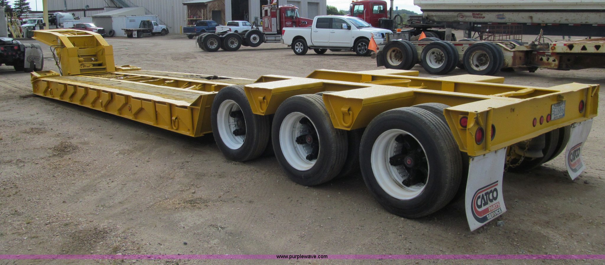 Purple Wave is selling a used Equip. Trailer in Minnesota. This item is a 1989 Trail King 50 ton lowboy trailer with the following: Model TK100D6P-463, Air ride, Detachable gooseneck, Outrigger brackets, 24' well, 102"W, Air brakes, Triple axle, 255/70R22.5 tires