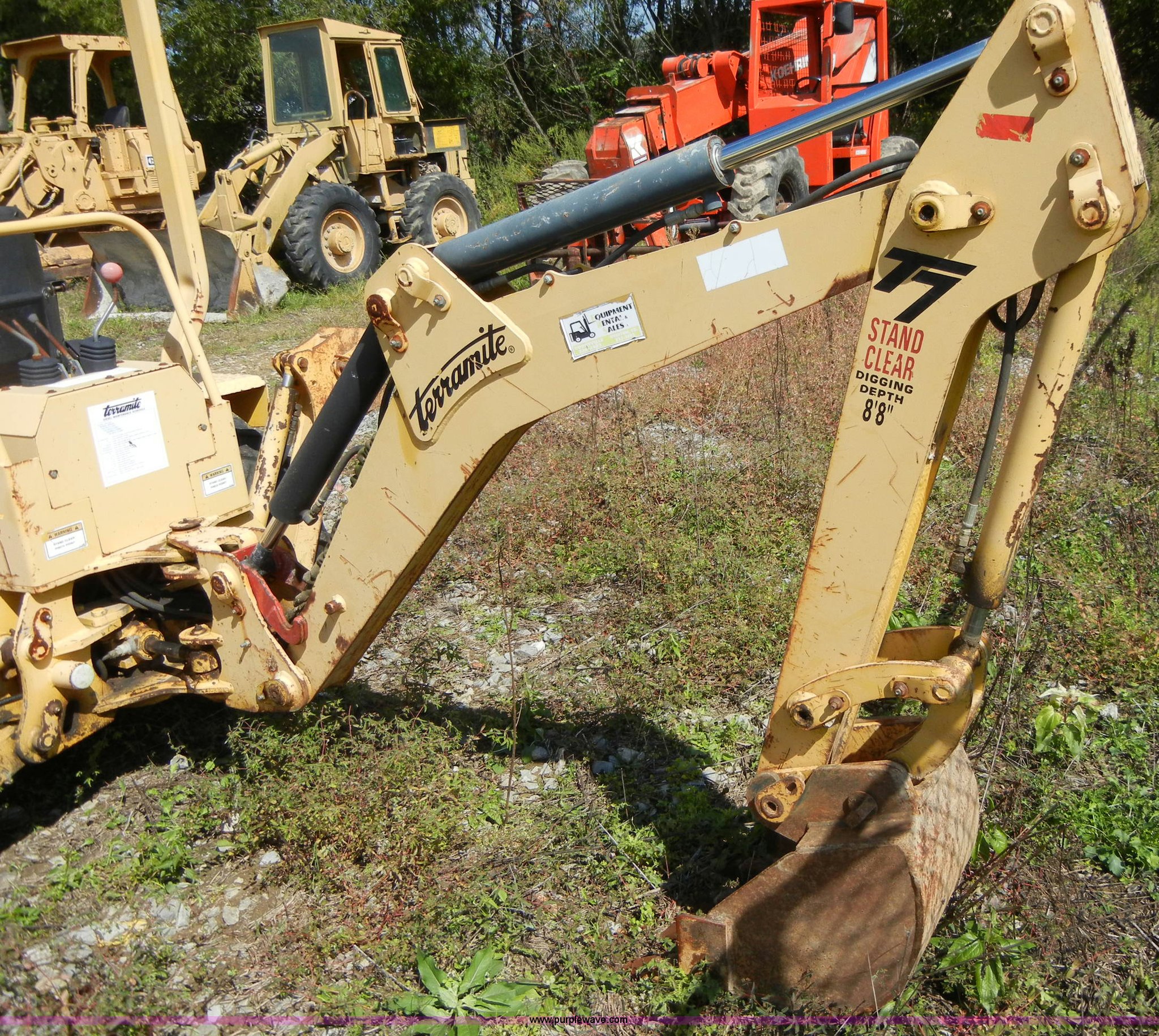Purple Wave is selling a used Tractor Loader Backhoe in Tennessee. This item is a Terramite T7 backhoe with the following: 1,181 hours on meter, Three cylinder diesel engine, 56" GP front bucket, 16" GP rear bucket, 8'8" dig depth, 4,125 lbs. base operating weight, Radiator hose leaking, Serial 217X0410