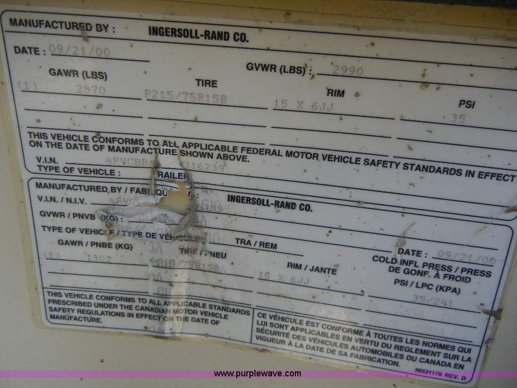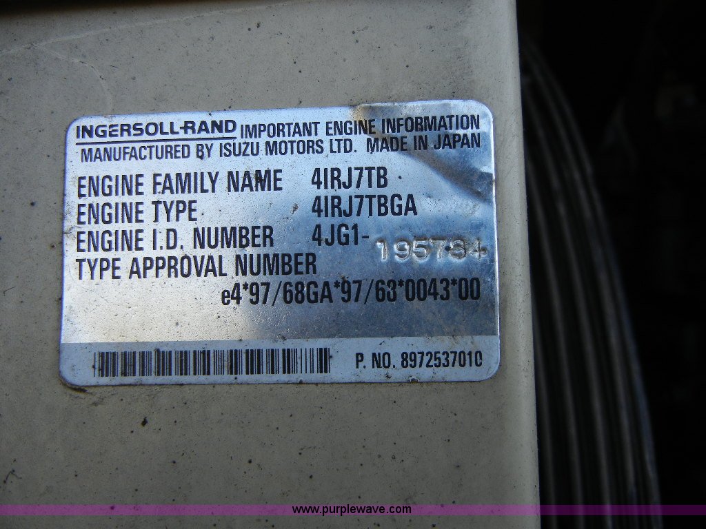 Purple Wave is selling a used Air Compressor in Tennessee. This item is a 2000 Ingersoll Rand 185 portable air compressor with the following: 695 hours on meter, Platinum series, ISO 9001 management system, Isuzu 81.6 HP engine, Model 41RJ7T, Single axle trailer, Flat tire