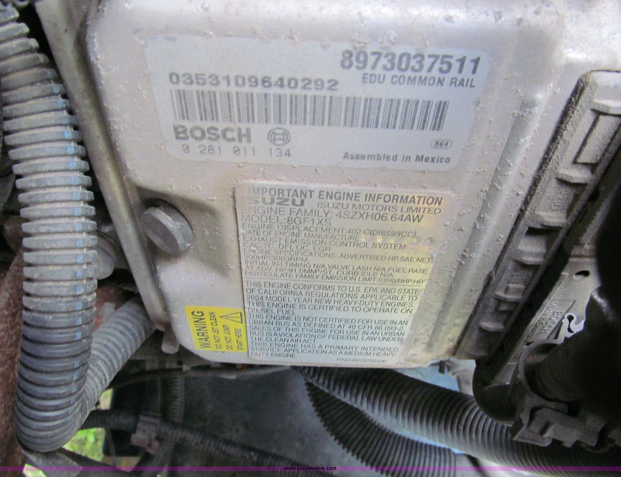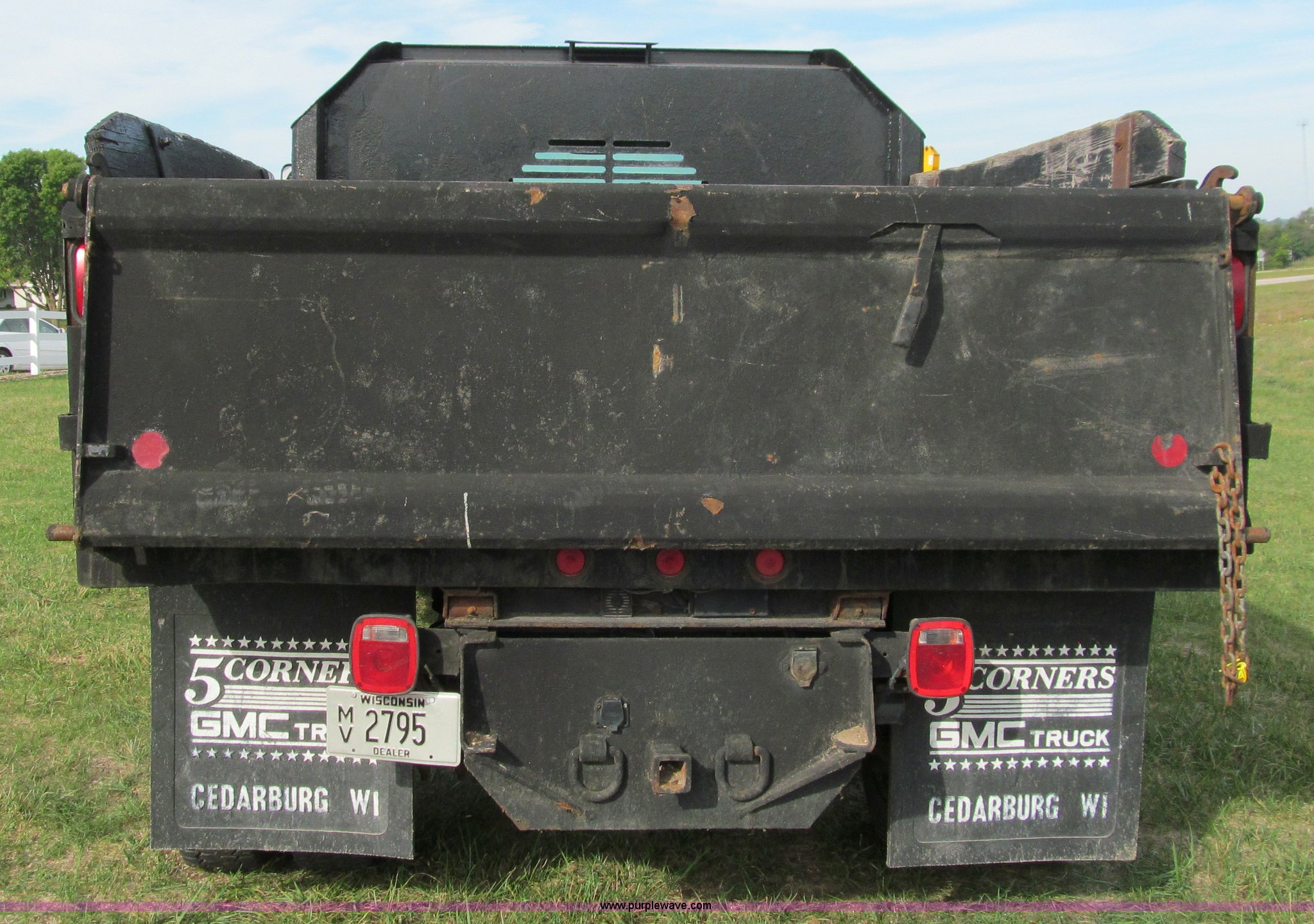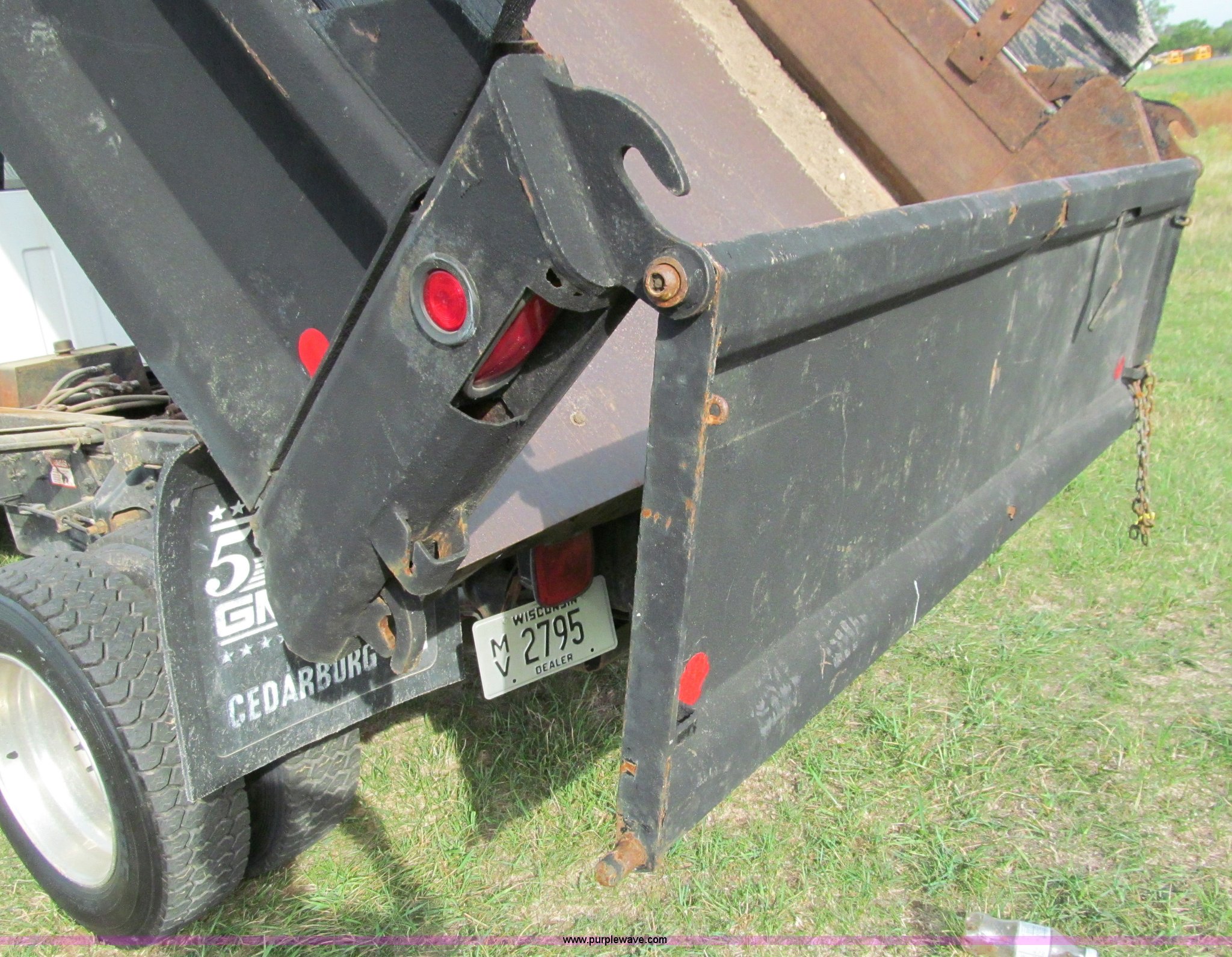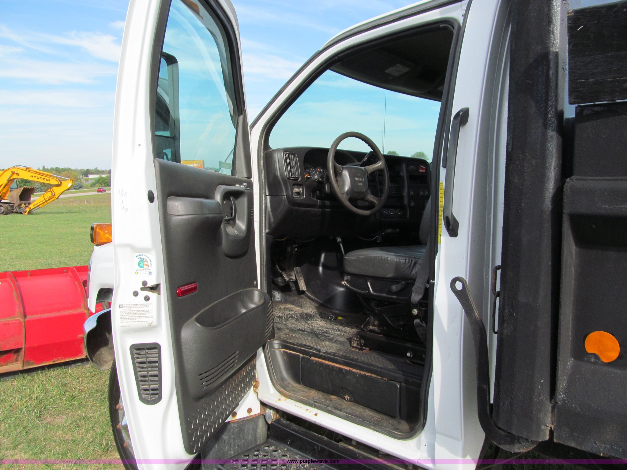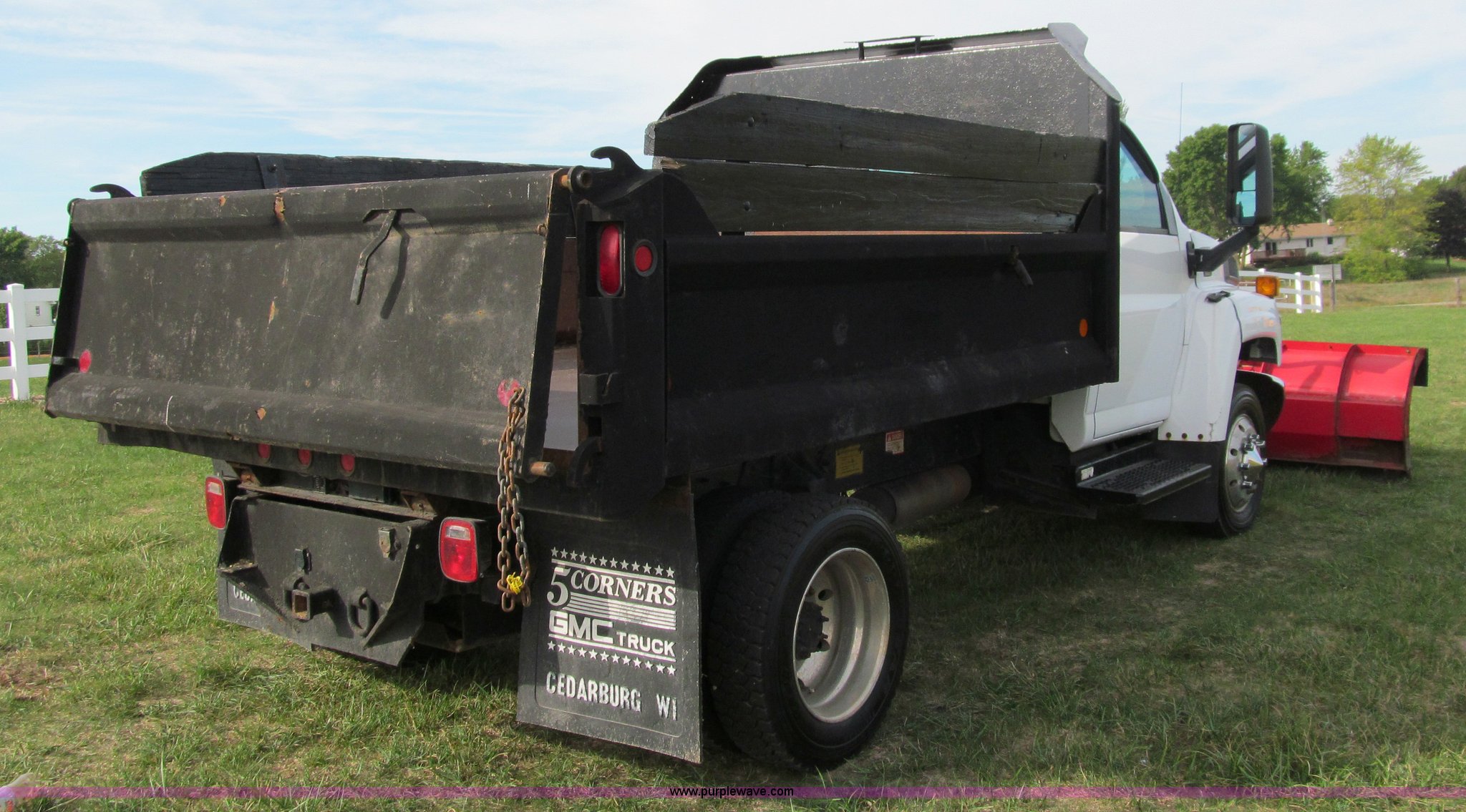Purple Wave is selling a used Construction Dump Truck in Wisconsin. This item is a 2004 GMC C5500 dump truck with the following: 34,214 miles on odometer, Duramax Isuzu 6.6L V8 diesel engine, Model 8GF1XS, 300 HP, Automatic transmission, AC and heat, AM/FM/CD, Power windows and locks, Air ride seat, Vinyl seats, Folding mirrors, Electric PTO, Hydraulic hoist, Boss 10' snow plow with light package, Boss quick coupler, Boss handheld operator joystick, Monroe 10' dump box, Fold down sides and tailgate, Monroe dump controls, Dual fuel tanks, Spring suspension, Aluminum wheels, 225/70R19.5 tires, GVWR 19,500 lbs, FAWR 7,000 lbs, RAWR 13,500 lbs, Right front fender cracking, Cosmetic damage