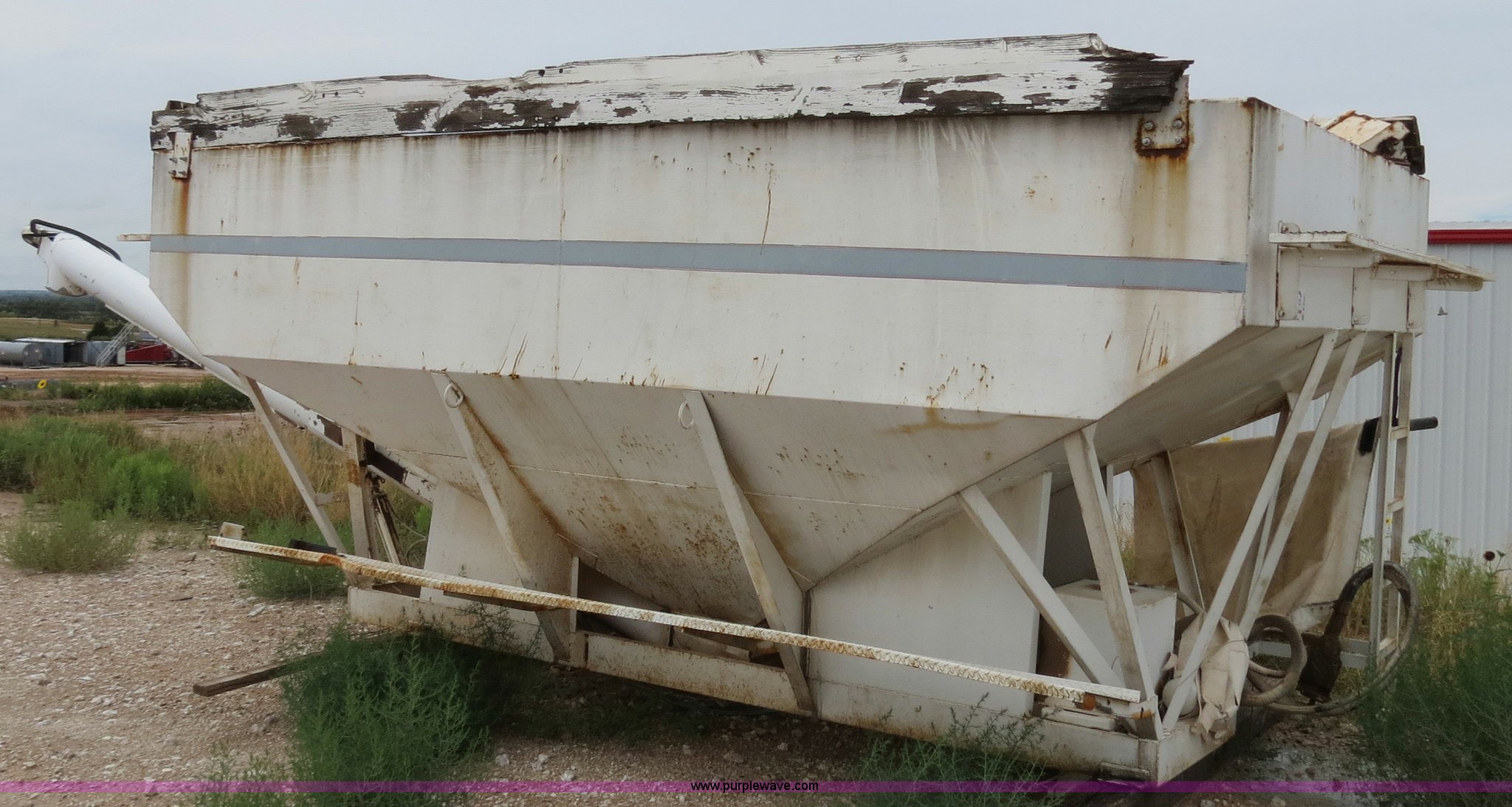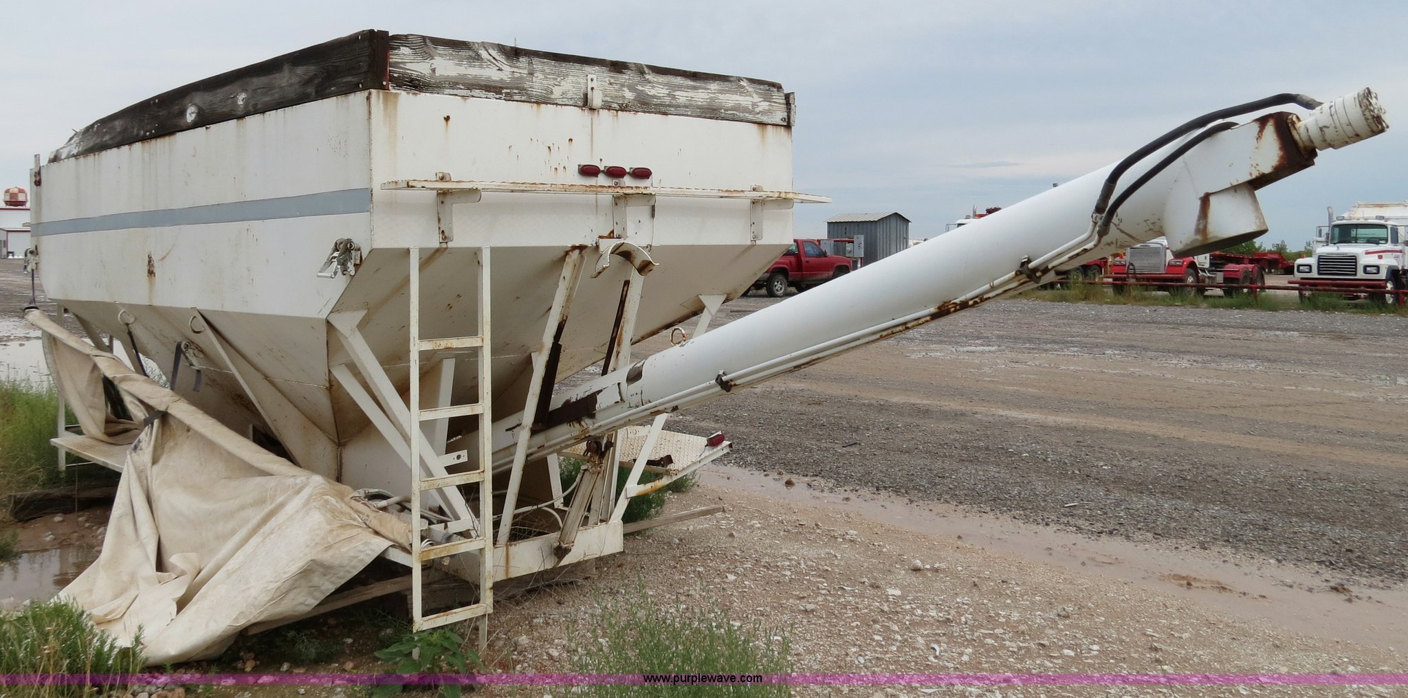 Purple Wave is selling a used Fertilizer or Seed Tender in Oklahoma. This item is a 16' tender box with the following: (2) compartments, Hydraulic auger, Hydraulic lift auger, 13'L x 36"W frame, Front and rear ladder and walkway, PTO, Wet kit, Tarp and wood extensions need replaced