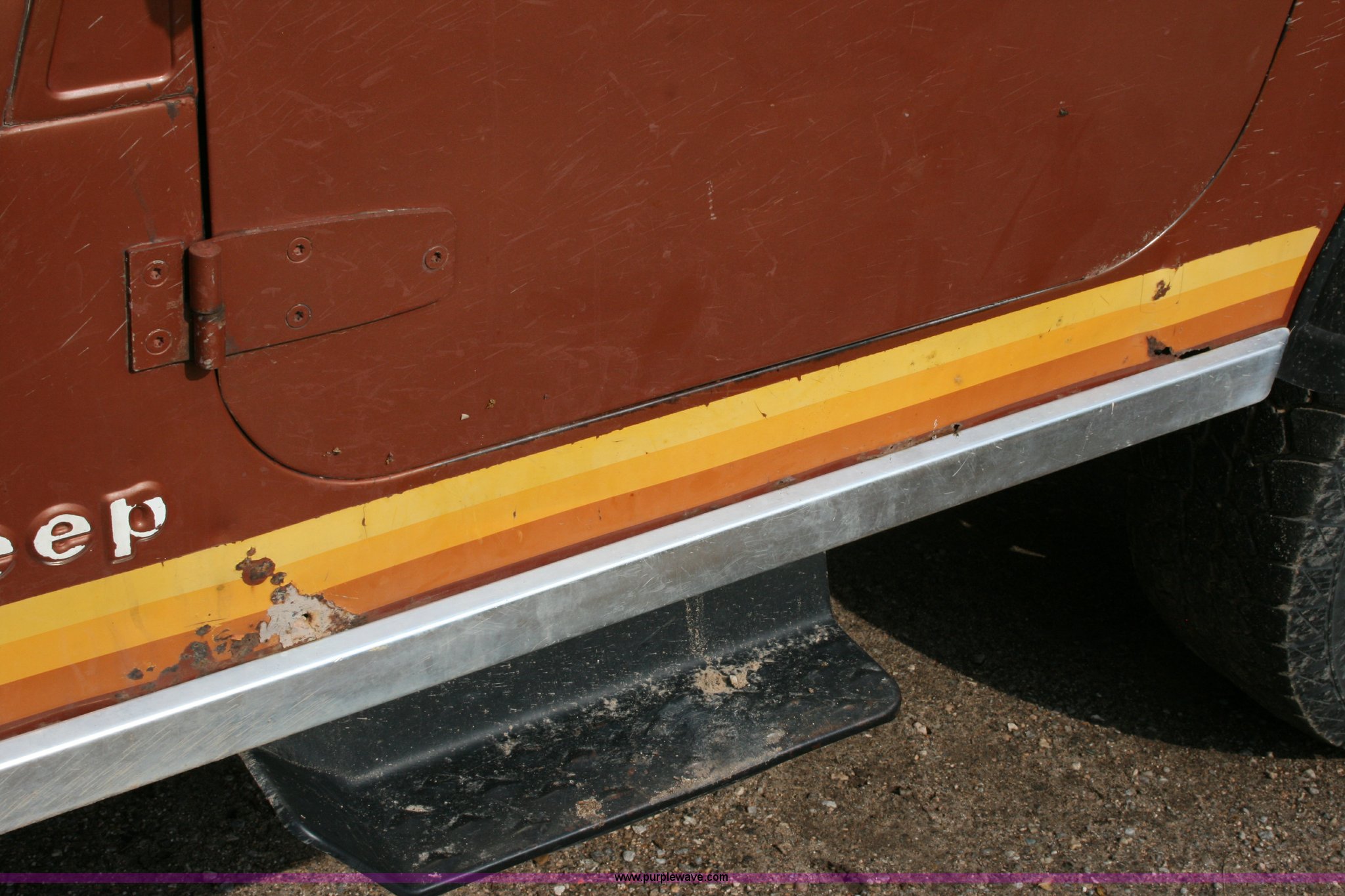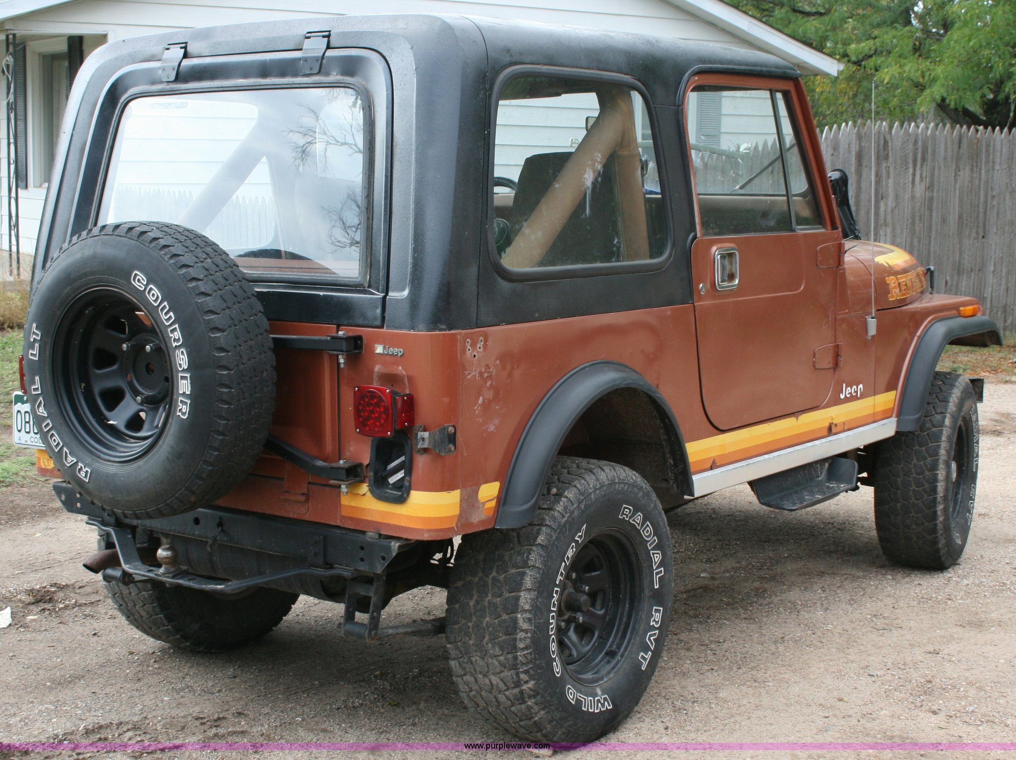 Purple Wave is selling a used Passenger Vehicle in Texas. This item is a 1981 Jeep CJ7 Renegade SUV with the following: 117,000 miles on odometer, 15,000 miles on engine, 4.2L I6 2BBL gas engine, Four speed manual transmission, Four wheel drive, Manual lockout hubs, AM/FM, Front bucket seats, rear bench, Front tow hitch, 31x10.50R15LT tires, Mounted spare tire, Interior/exterior cosmetic damage