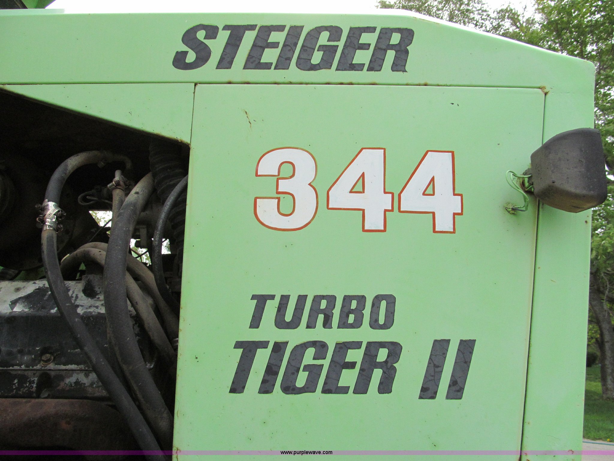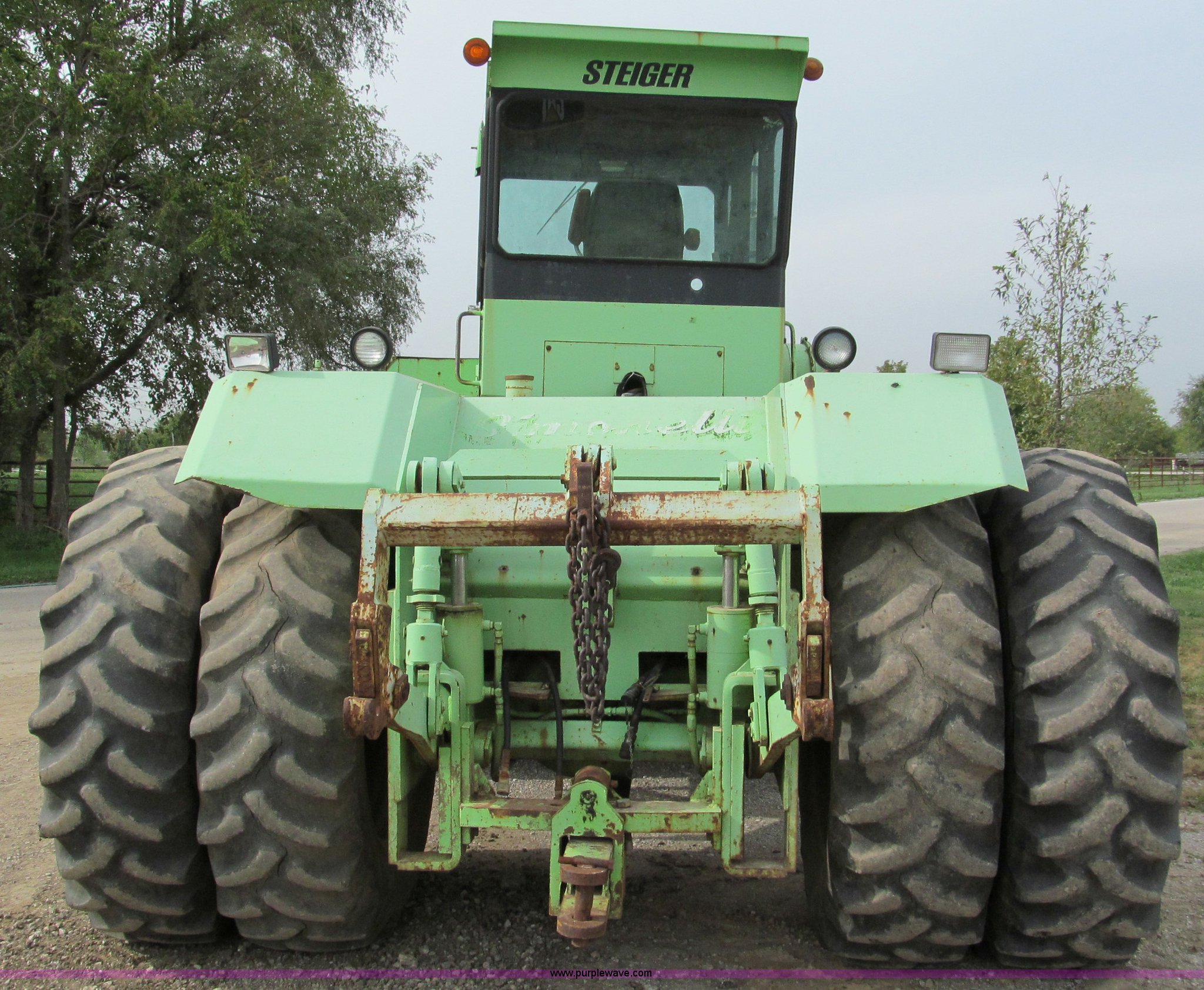 Purple Wave is selling a used Articulated 4-Wheel Drive Tractor in Missouri. This item is a 1975 Steiger Turbo Tiger II ST320 4WD tractor with the following: 547 hours on meter, Unknown actual hours, Cummins VT903 eight cylinder diesel engine, 290 HP, Serial 10910857, Manual transmission, 10F-2R gears, AC and heat, Spring seat, AM/FM/cassette, Three point, Three point quick attach, Draw bar, (2) rear hydraulic remote sets, 18.4-38 tires, duals, Recently replaced exhaust, batteries, and alternator, Serial 30207