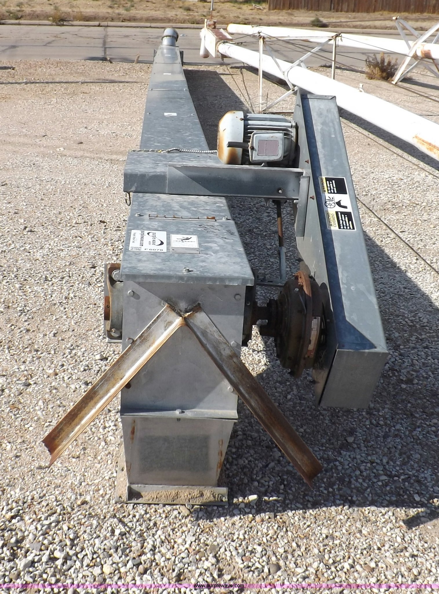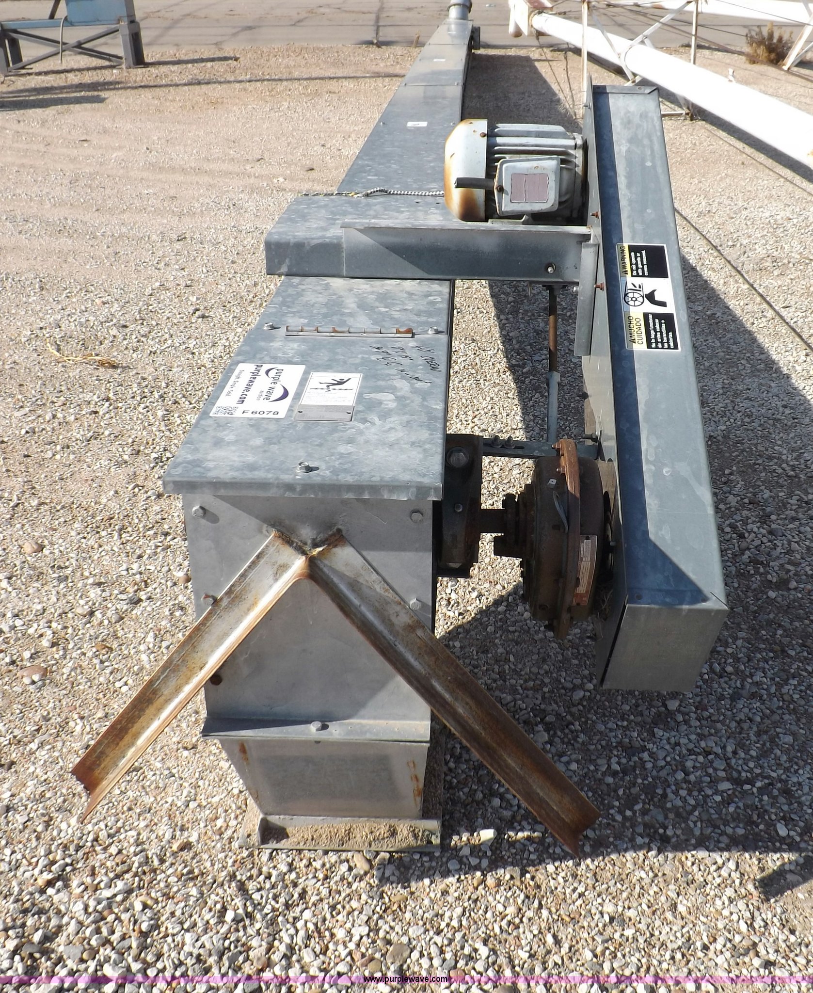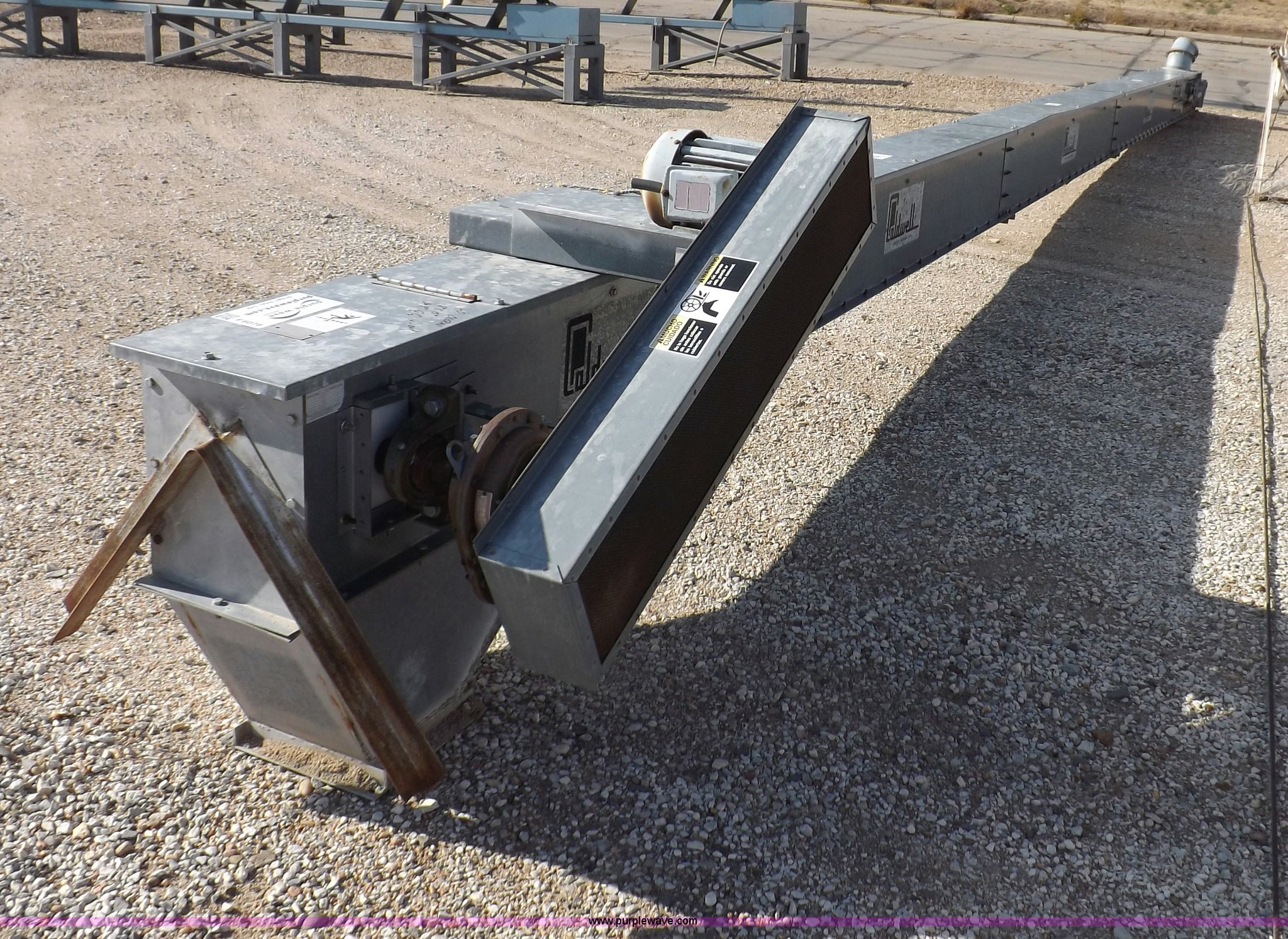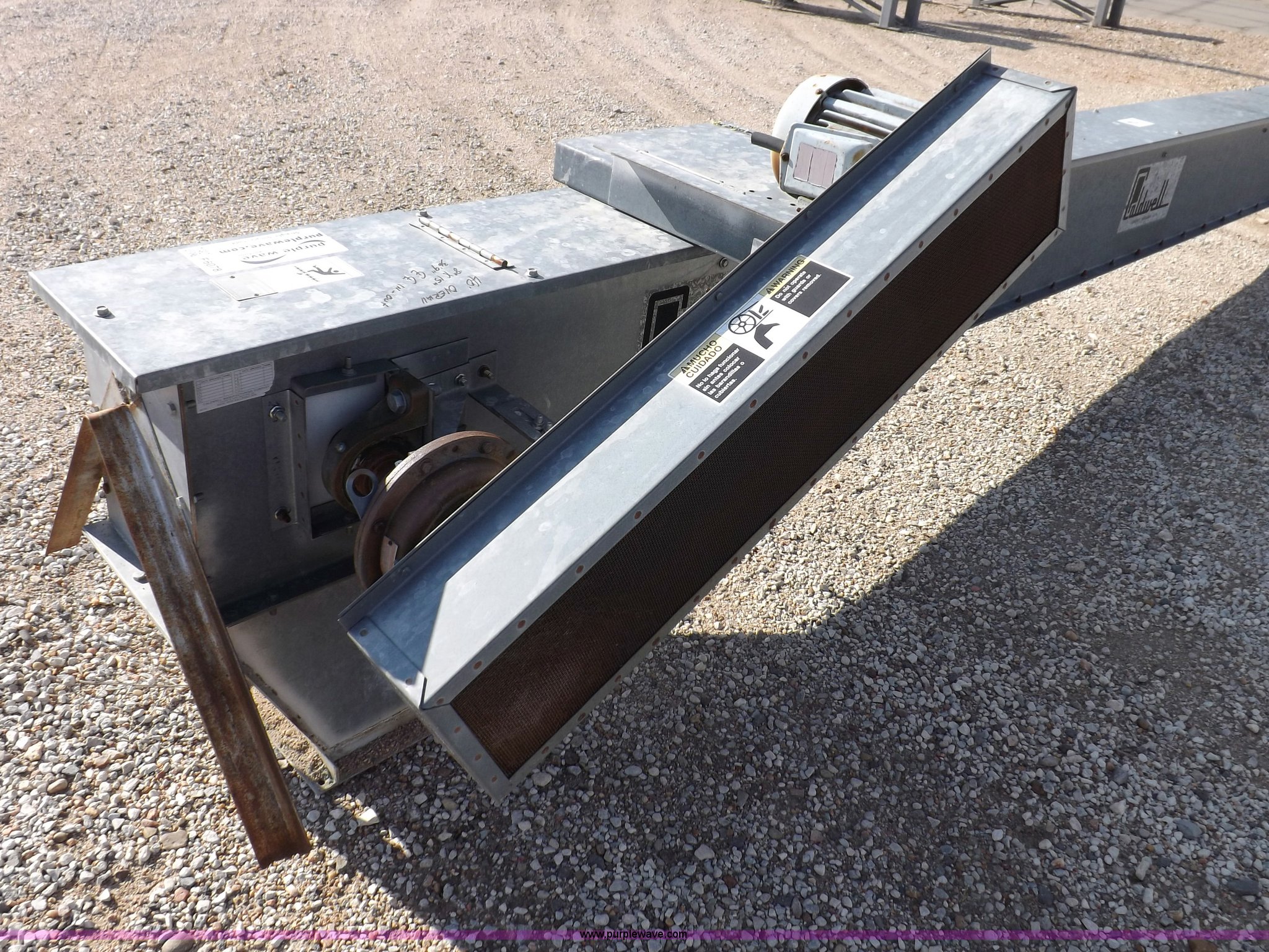 Purple Wave is selling a used Auger or Conveyor in Kansas. This item is a Caldwell 40' drag slat with the following: Model CHCC35004375, Part# 491522, 8" x 15", 36'9" center to center in to out, Magnatek three phase motor, 2 HP, 230/460V, Browning shaft mounted speed reducer, Part# 107SMT25, Serial 9309, Ratio 25.8403, Serial 95F6