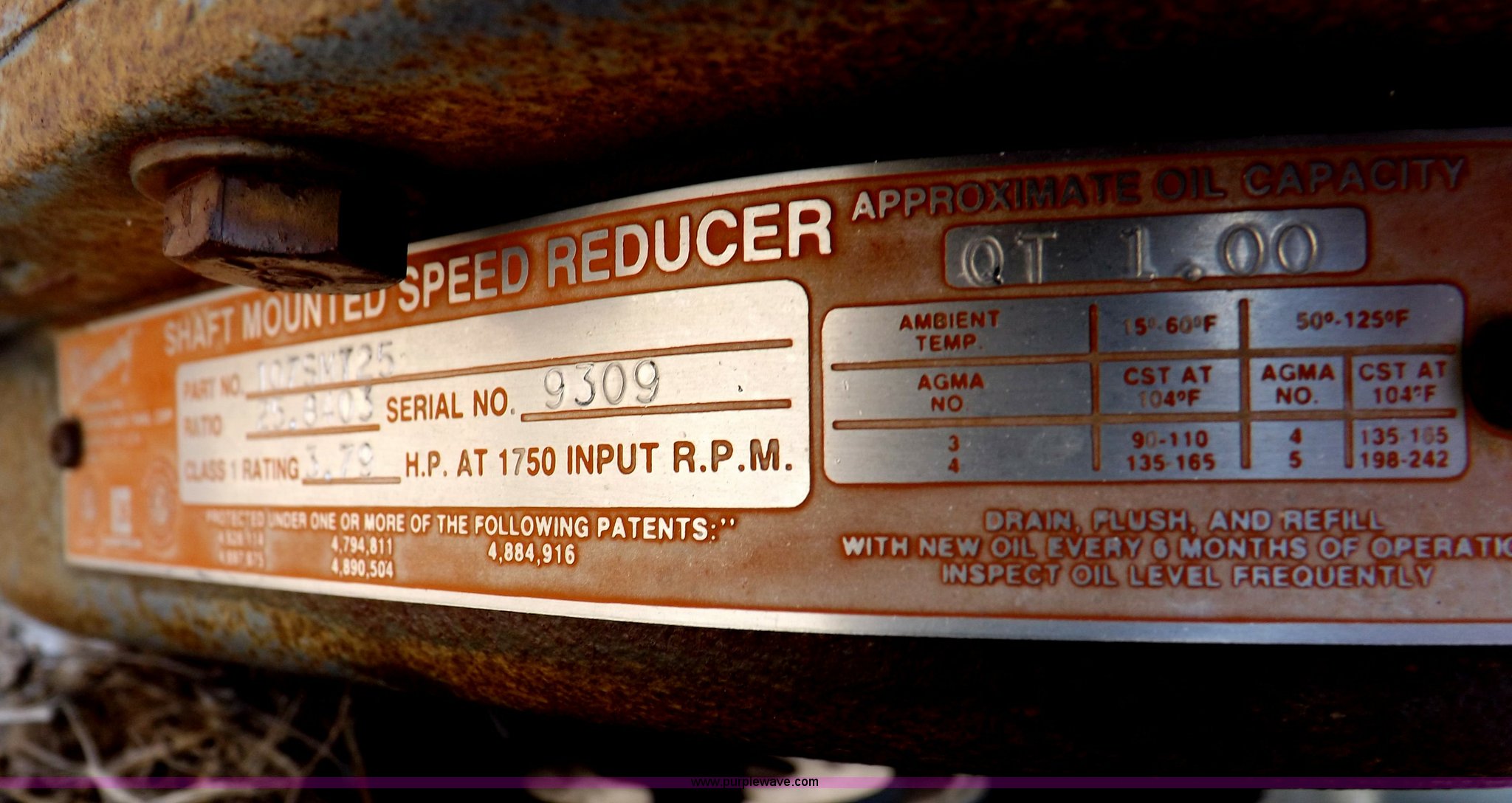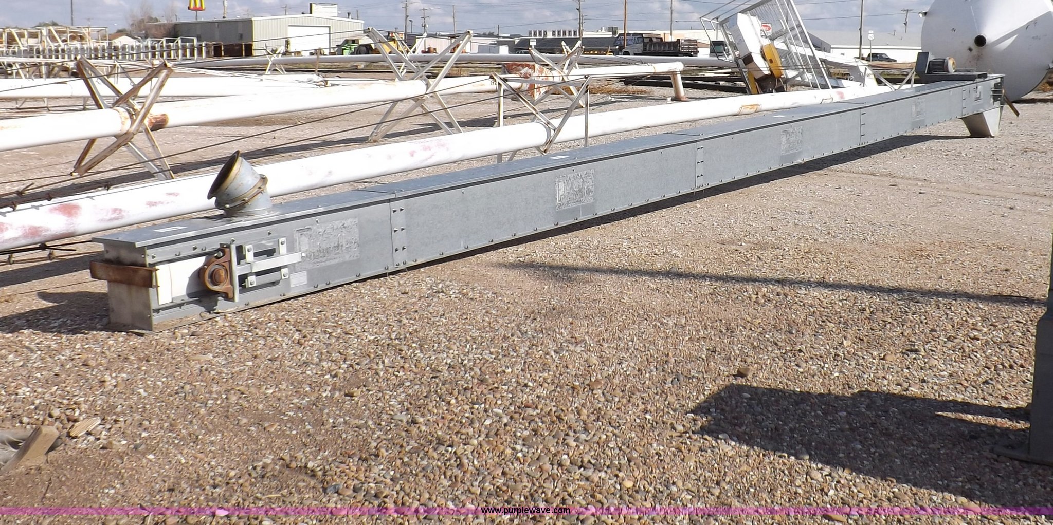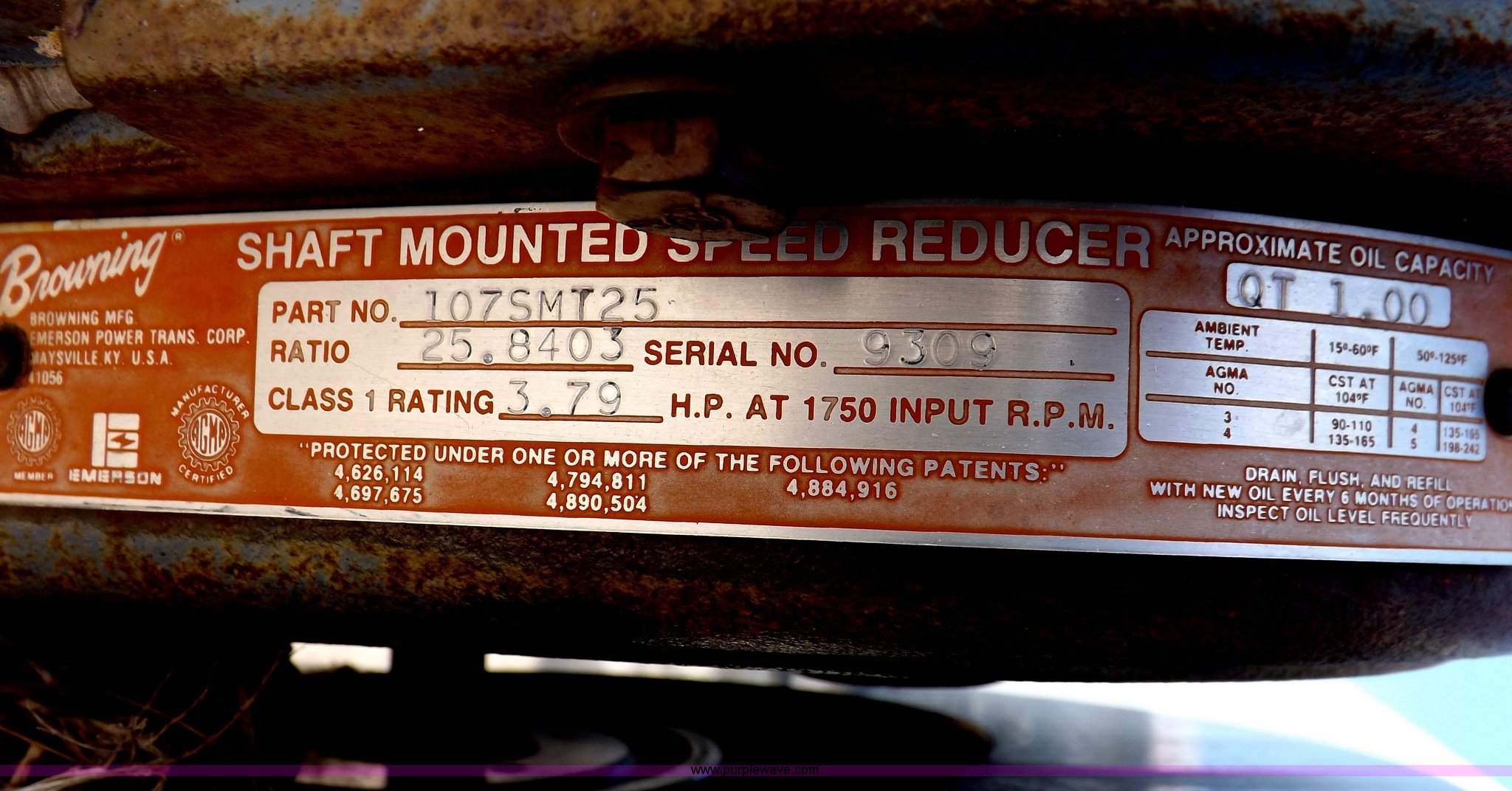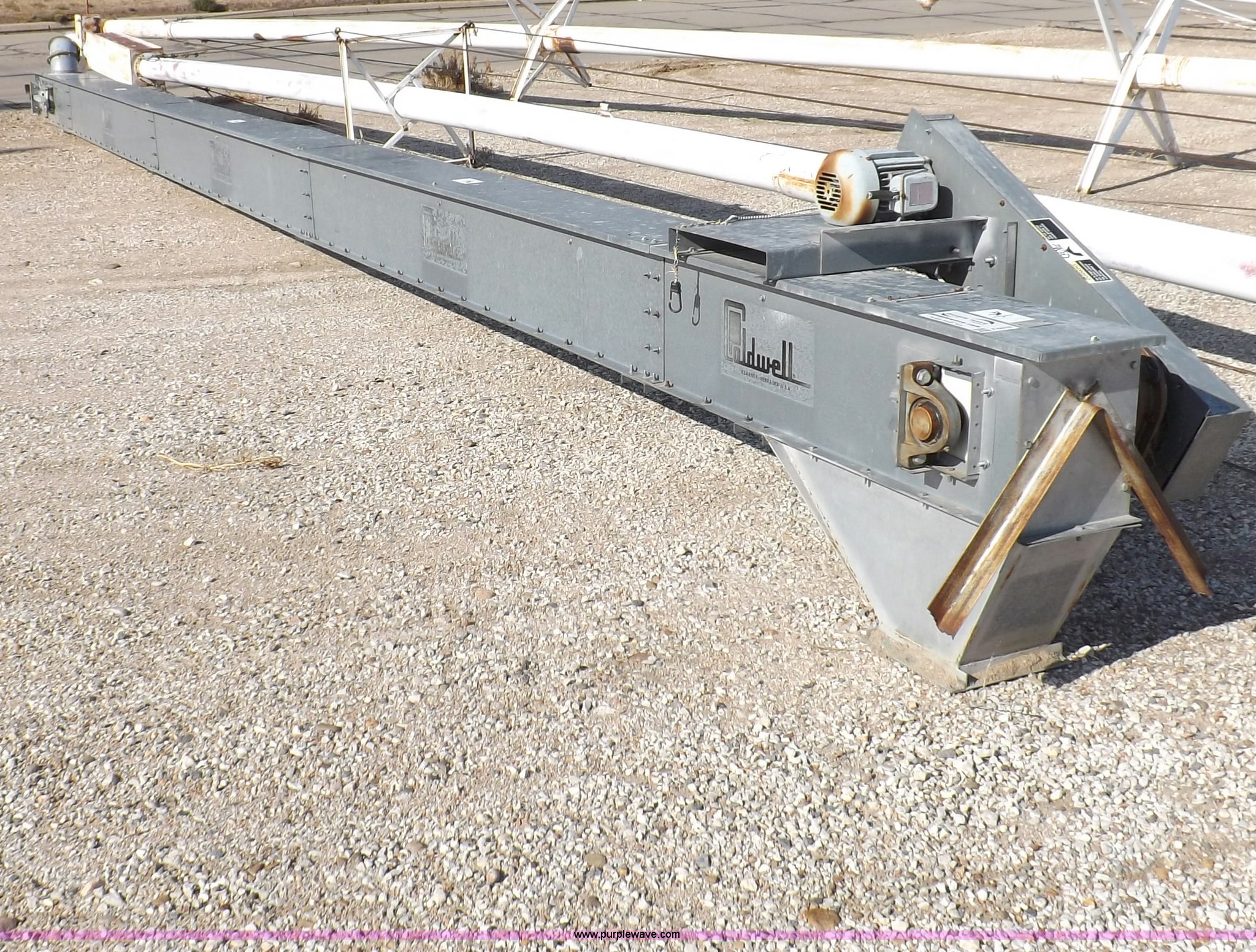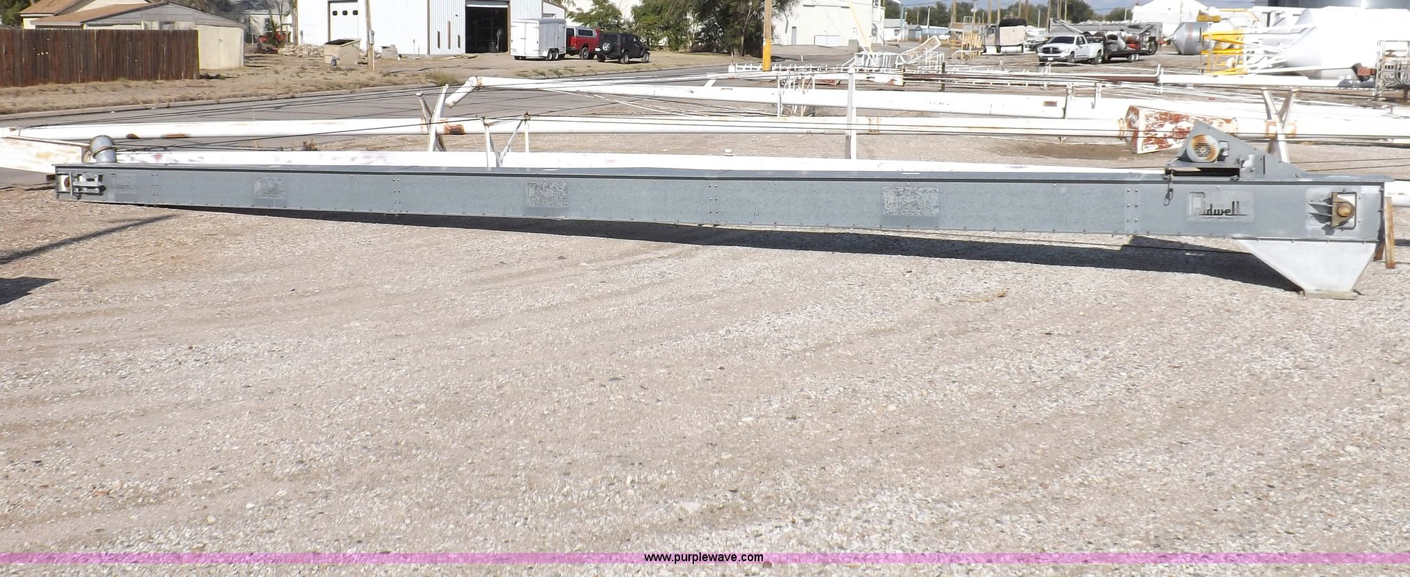 Purple Wave is selling a used Auger or Conveyor in Kansas. This item is a Caldwell 40' drag slat with the following: Model CHCC35004375, Part# 491522, 8" x 15", 36'9" center to center in to out, Magnatek three phase motor, 2 HP, 230/460V, Browning shaft mounted speed reducer, Part# 107SMT25, Serial 9309, Ratio 25.8403, Serial 95F6