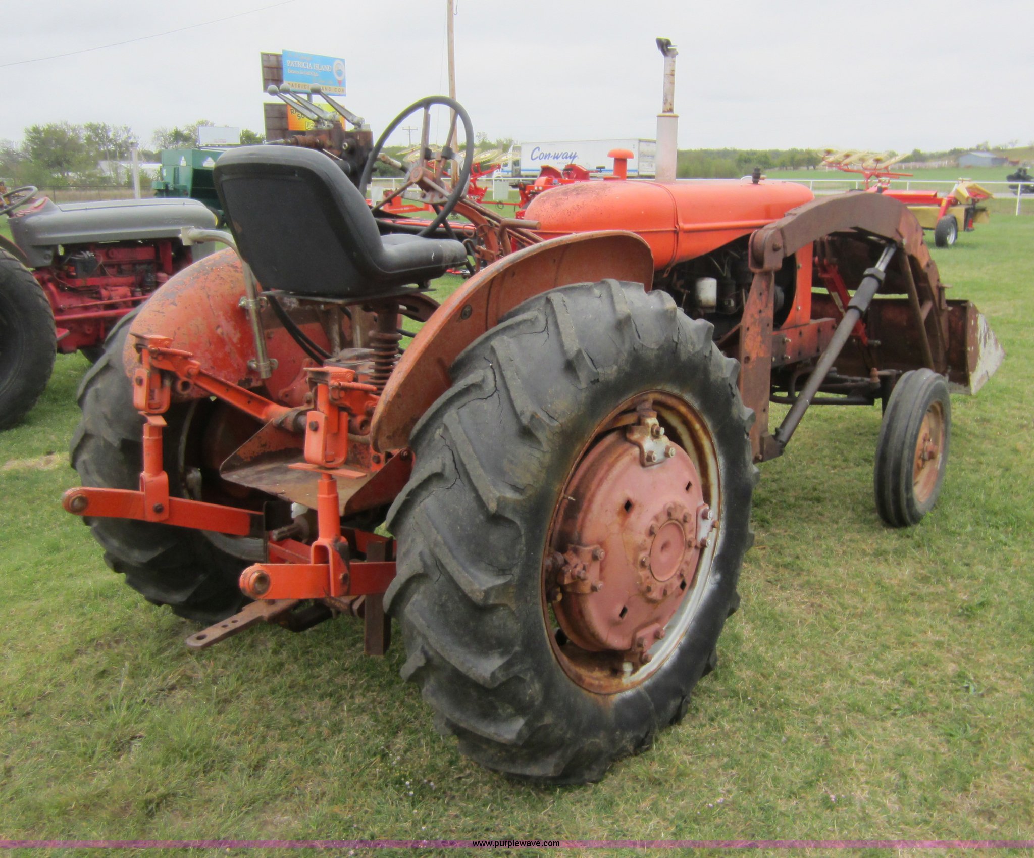 Purple Wave is selling a used Tractor in Oklahoma. This item is a Allis Chalmers WD tractor with the following: Allis four cylinder gas engine, Manual transmission, 4F-1R gears, Loader with 41" bucket, Two lever control, Three point, Draw bar, 540 PTO, Rear hydraulic remote, 13.6-20 rear tires, Serial WD100536