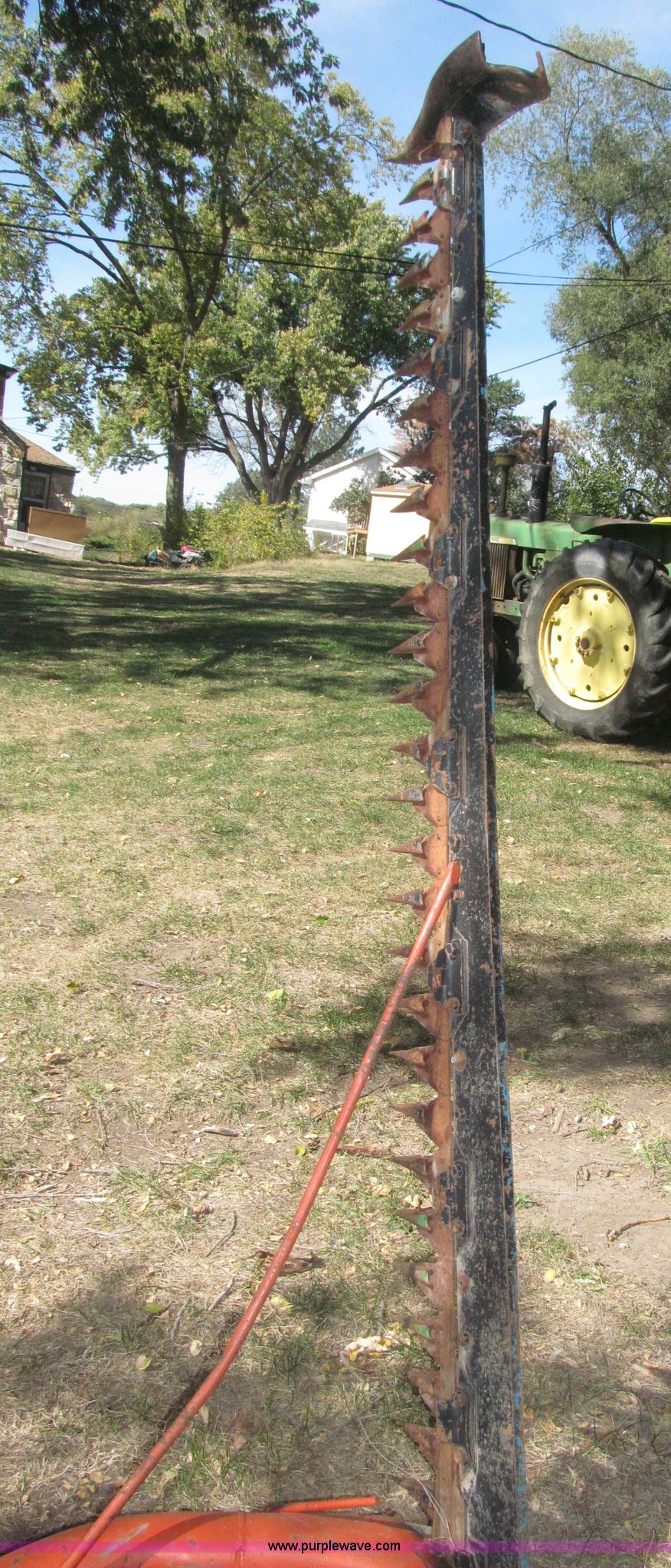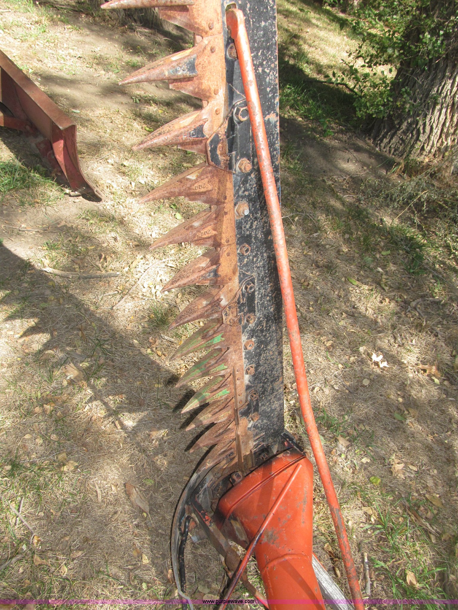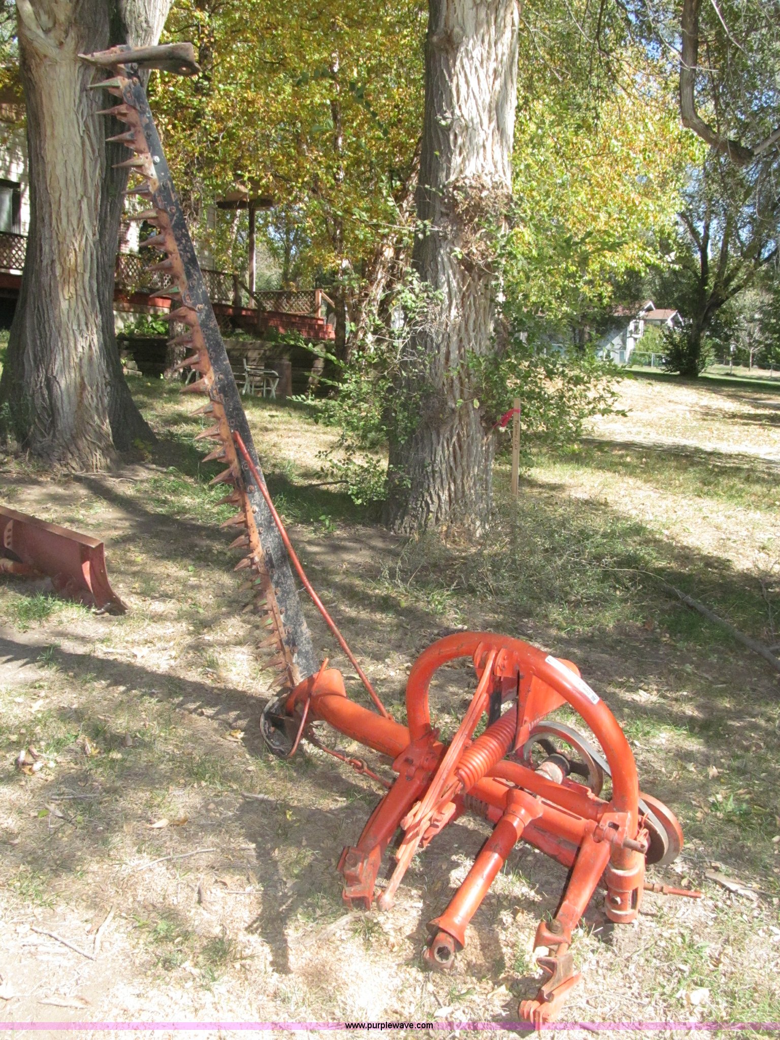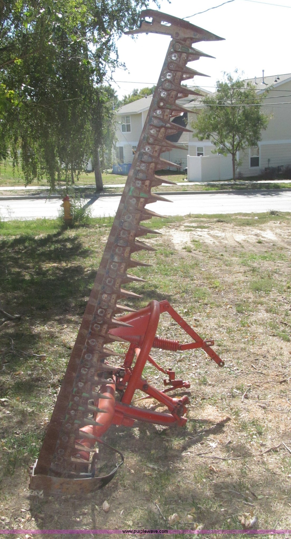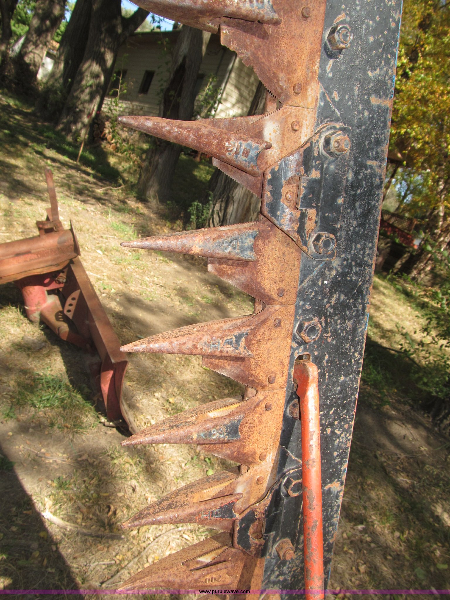 Purple Wave is selling a used Disc or Sickle Mower in Nebraska. This item is a Ford three point sickle bar mower with the following: Model 14-93, 540 RPM belt driven, Fits 2N, 8N, 9N, and Jubilee tractors, (28) sections, Approx. 7' sickle bar, Cracked section/dent guard, Serial 1704
