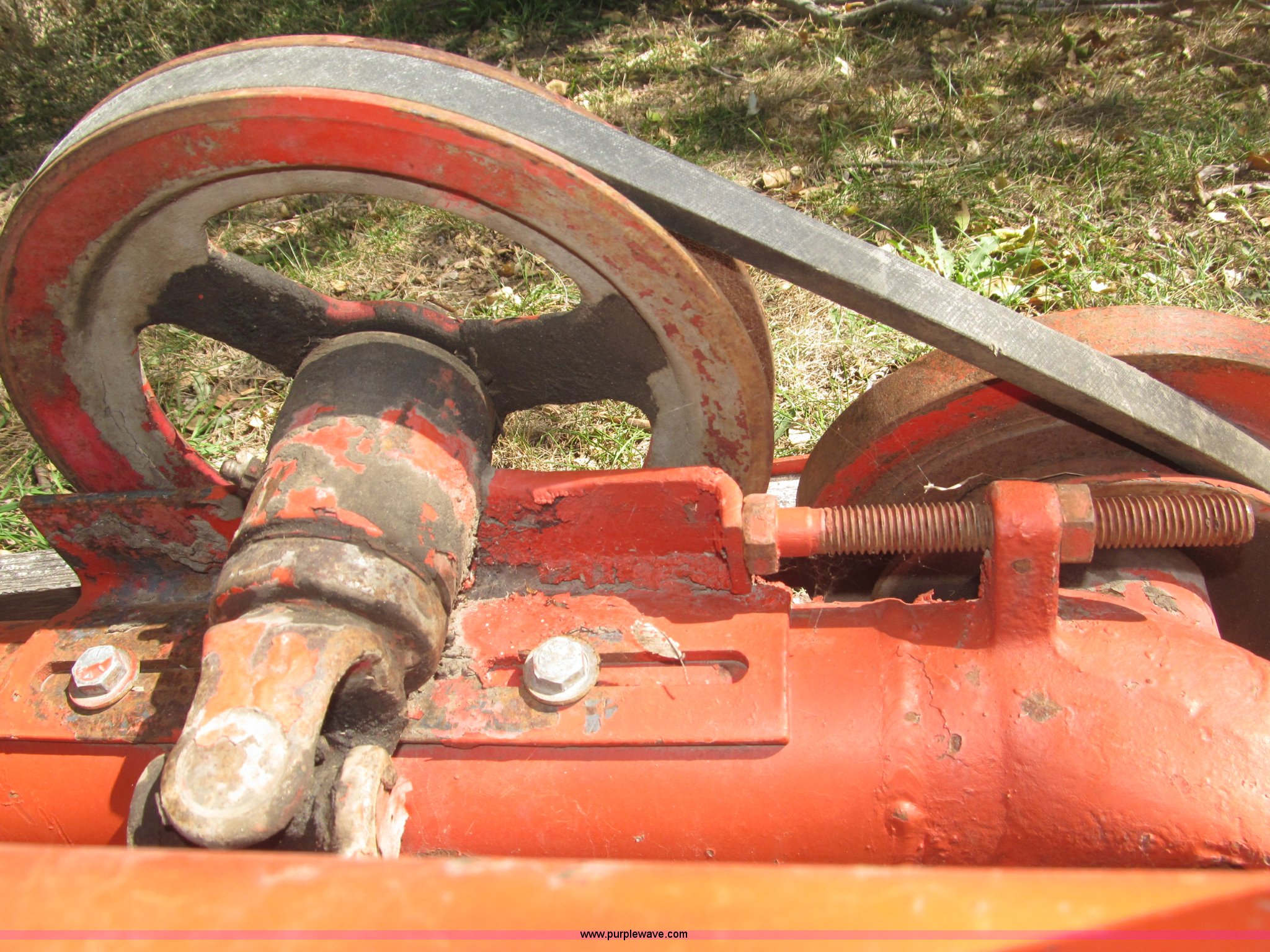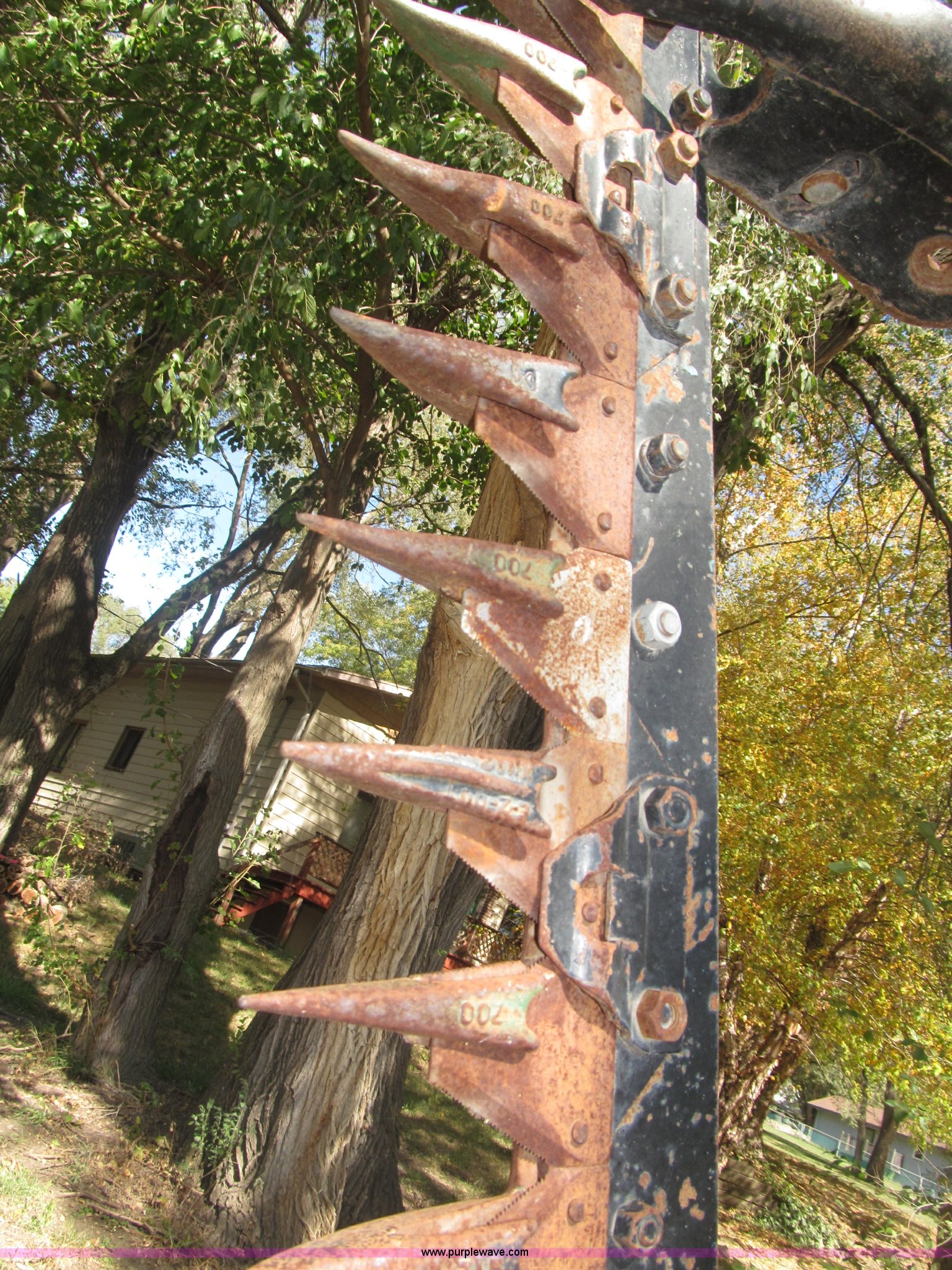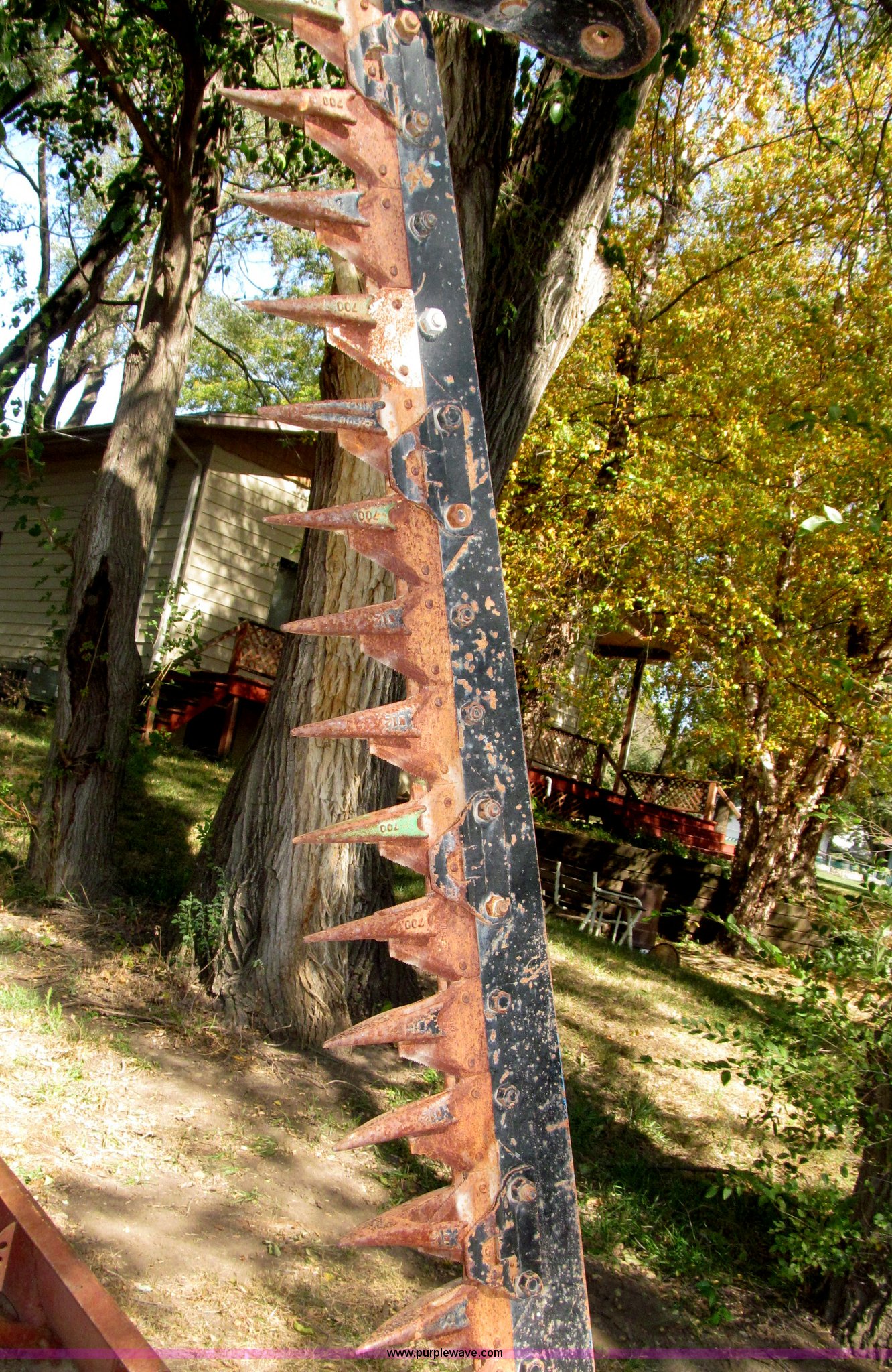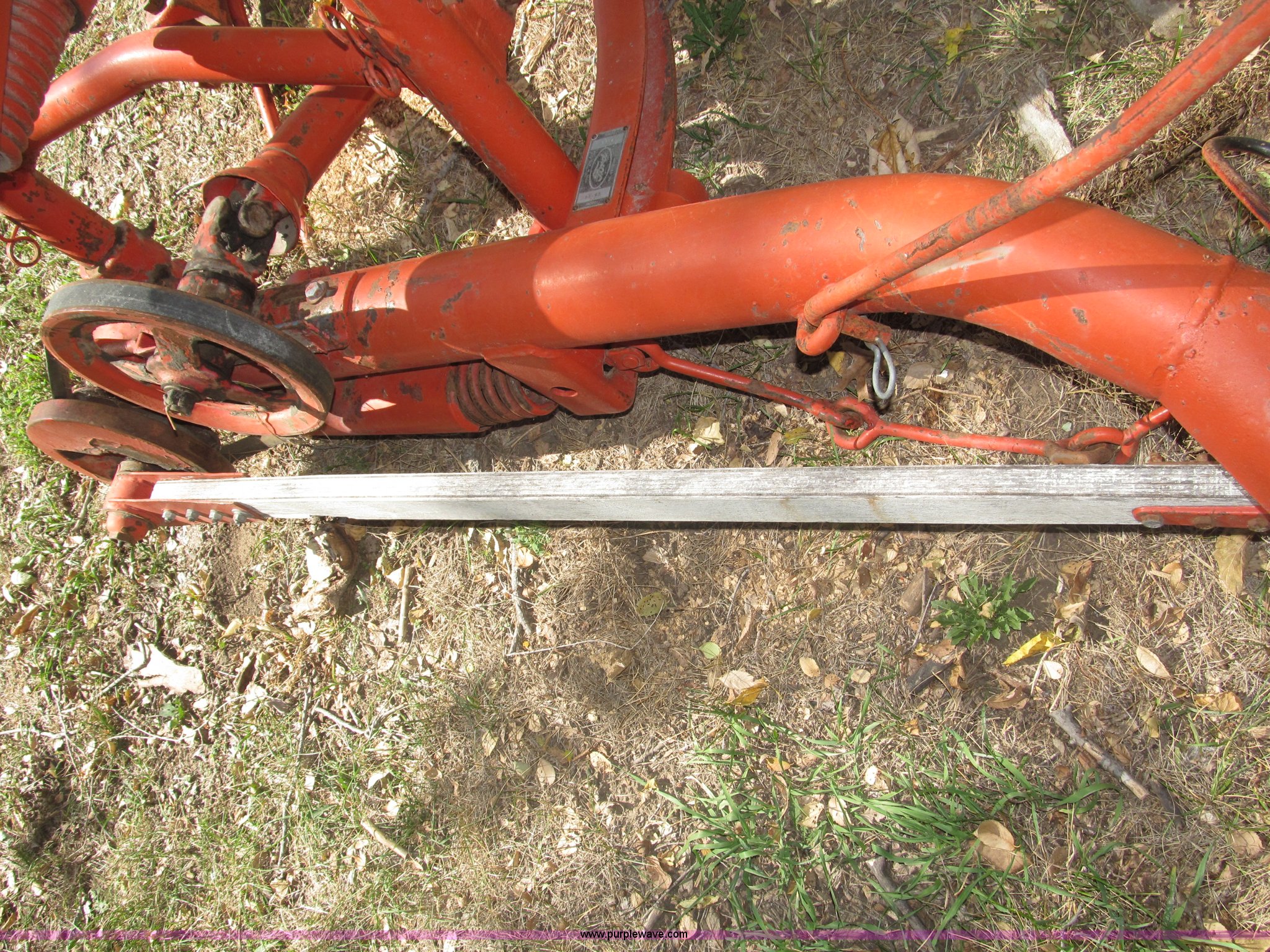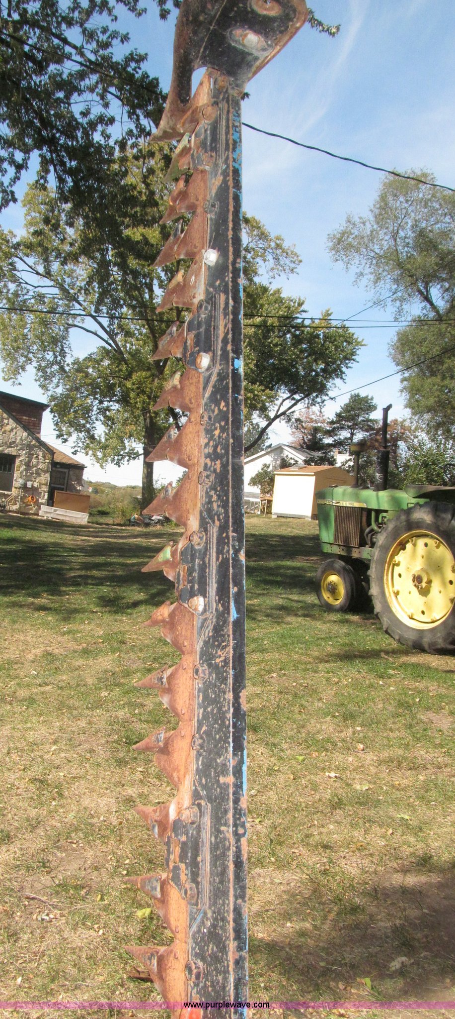 Purple Wave is selling a used Disc or Sickle Mower in Nebraska. This item is a Ford three point sickle bar mower with the following: Model 14-93, 540 RPM belt driven, Fits 2N, 8N, 9N, and Jubilee tractors, (28) sections, Approx. 7' sickle bar, Cracked section/dent guard, Serial 1704