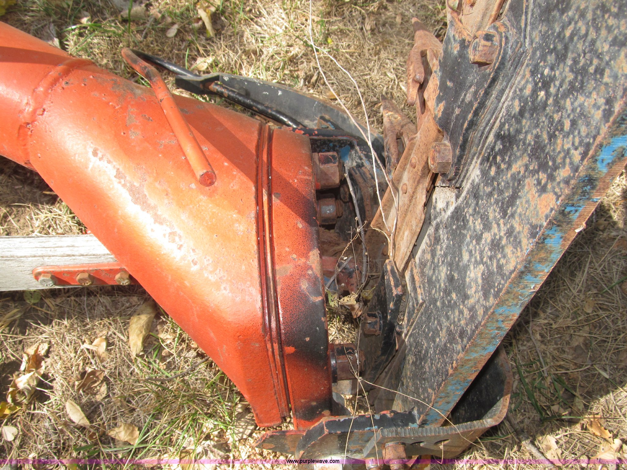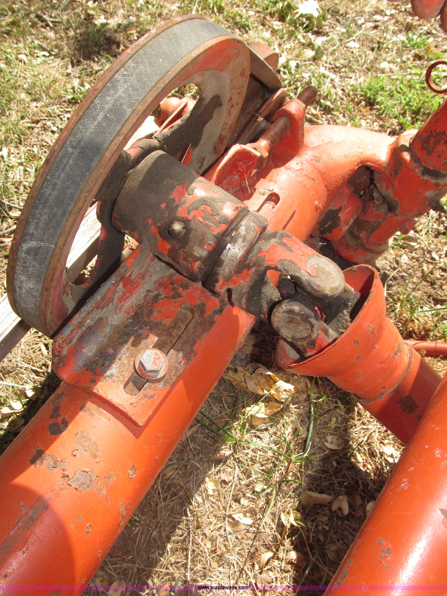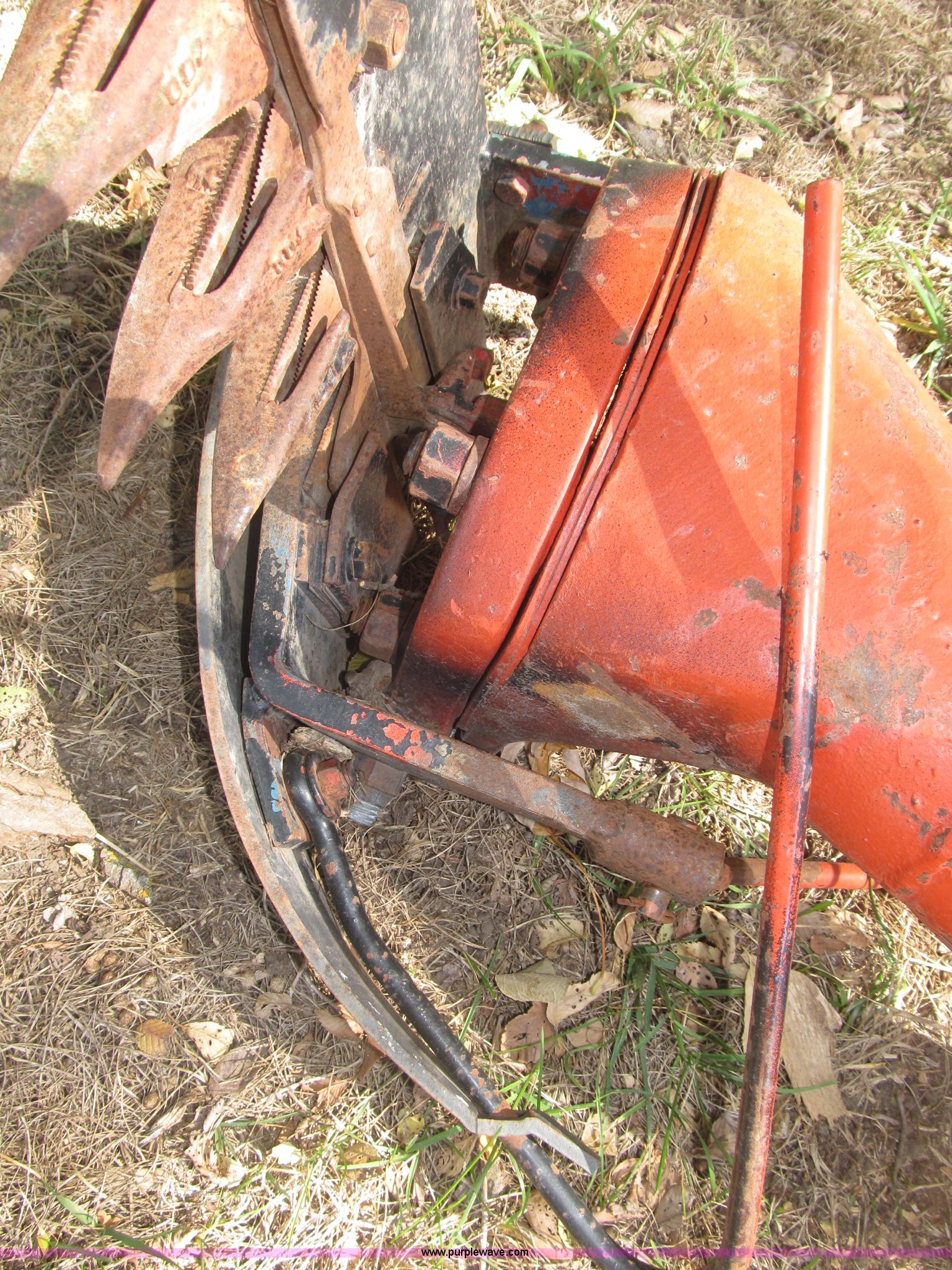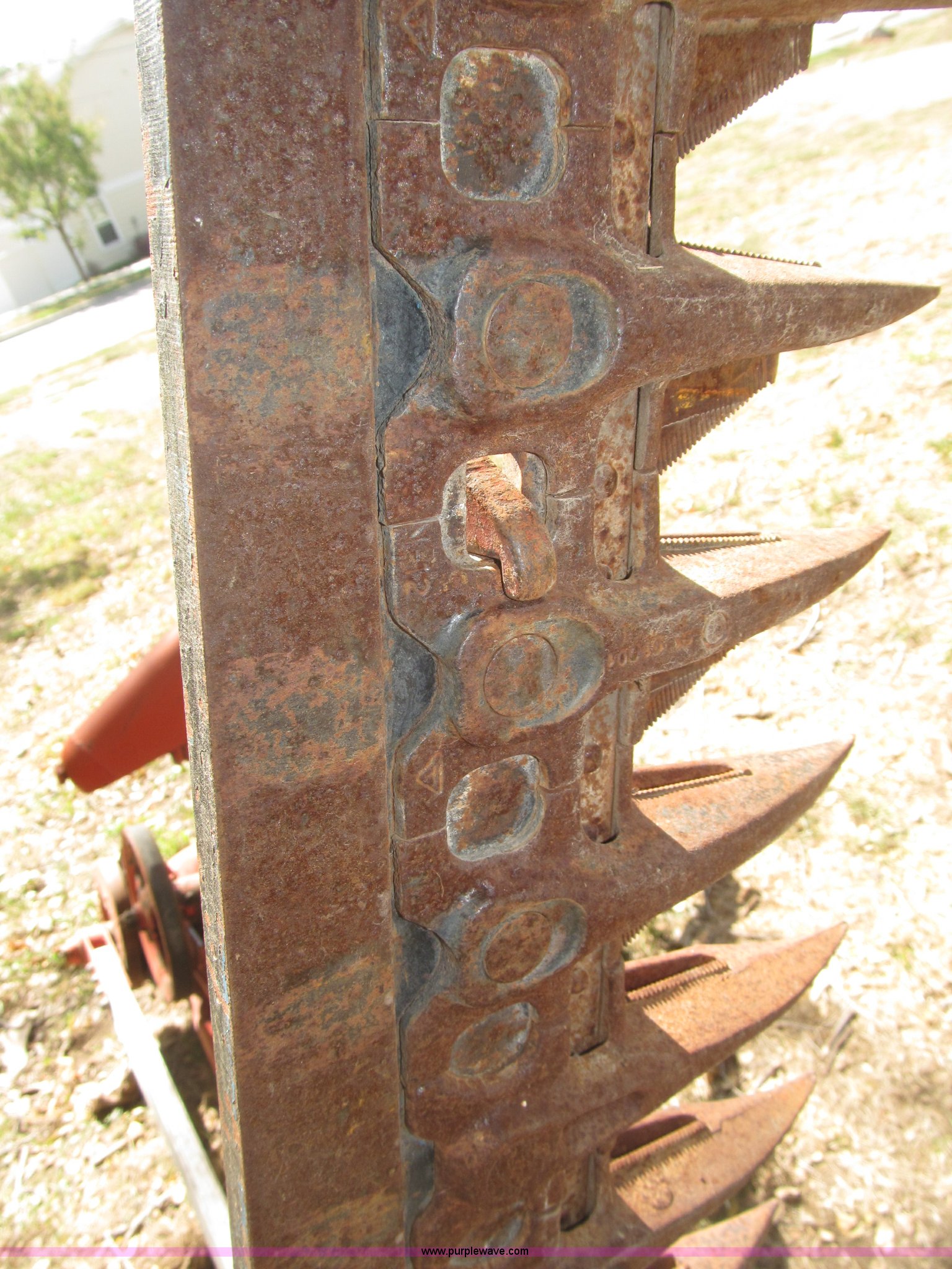 Purple Wave is selling a used Disc or Sickle Mower in Nebraska. This item is a Ford three point sickle bar mower with the following: Model 14-93, 540 RPM belt driven, Fits 2N, 8N, 9N, and Jubilee tractors, (28) sections, Approx. 7' sickle bar, Cracked section/dent guard, Serial 1704