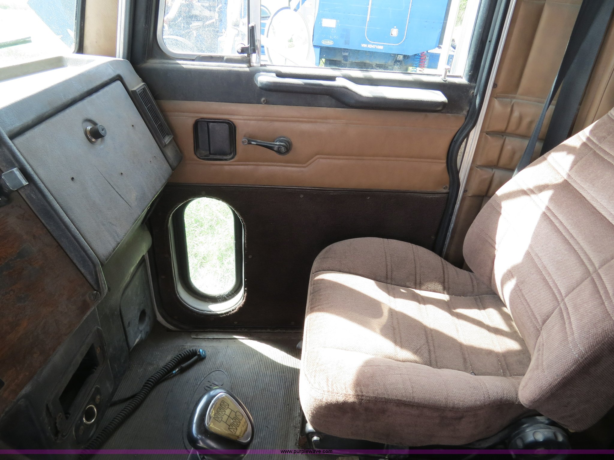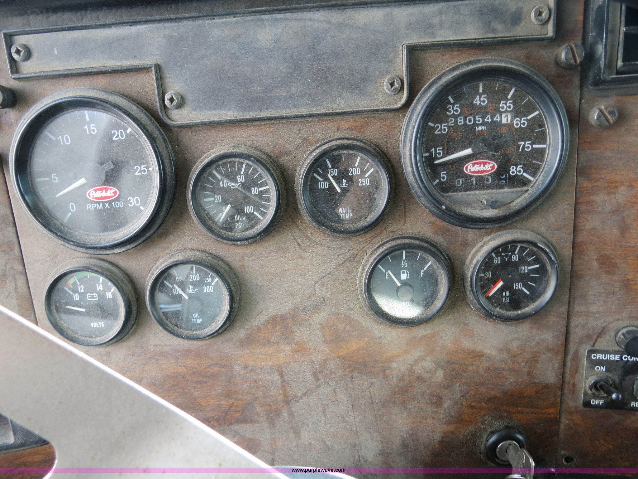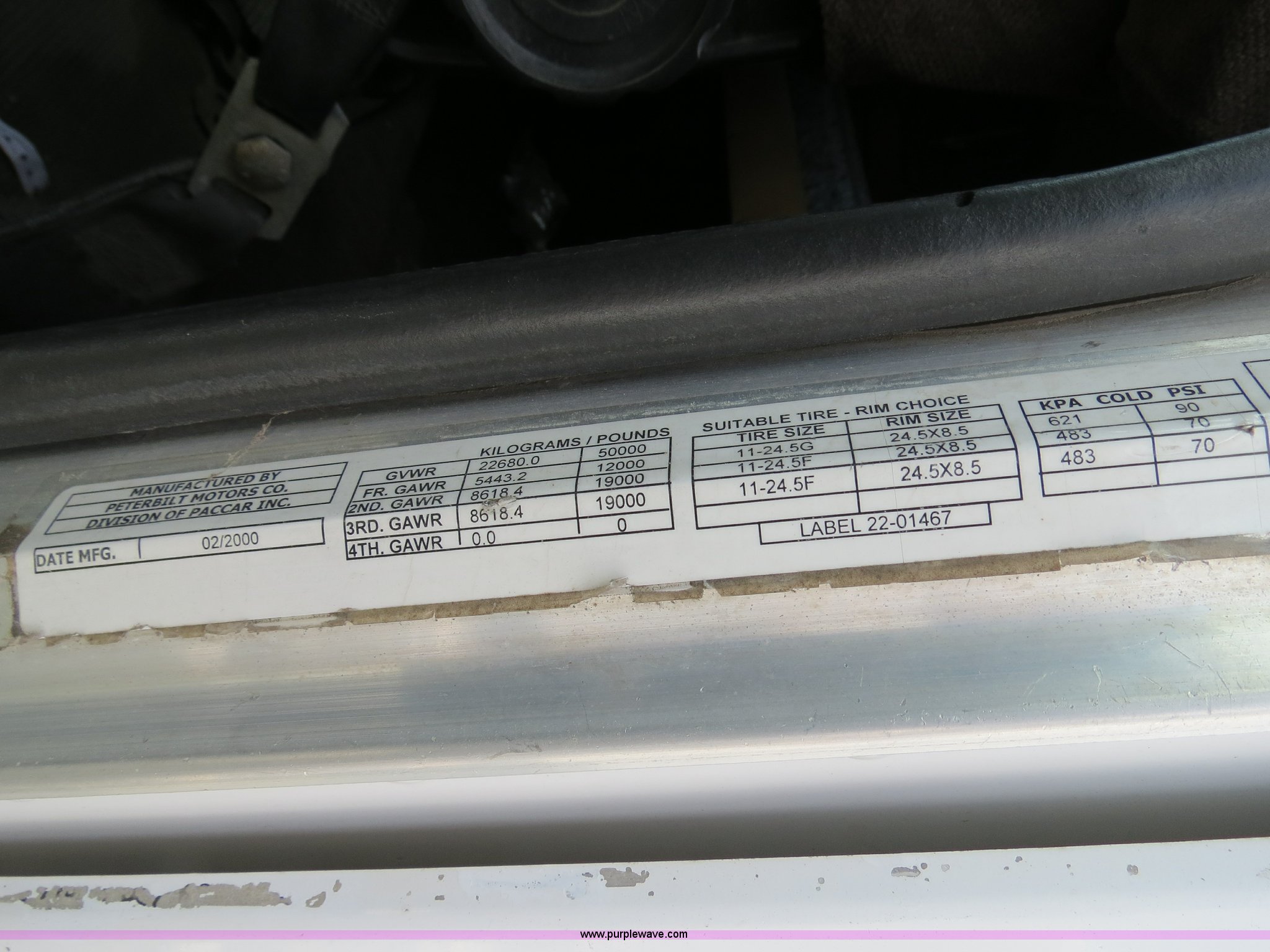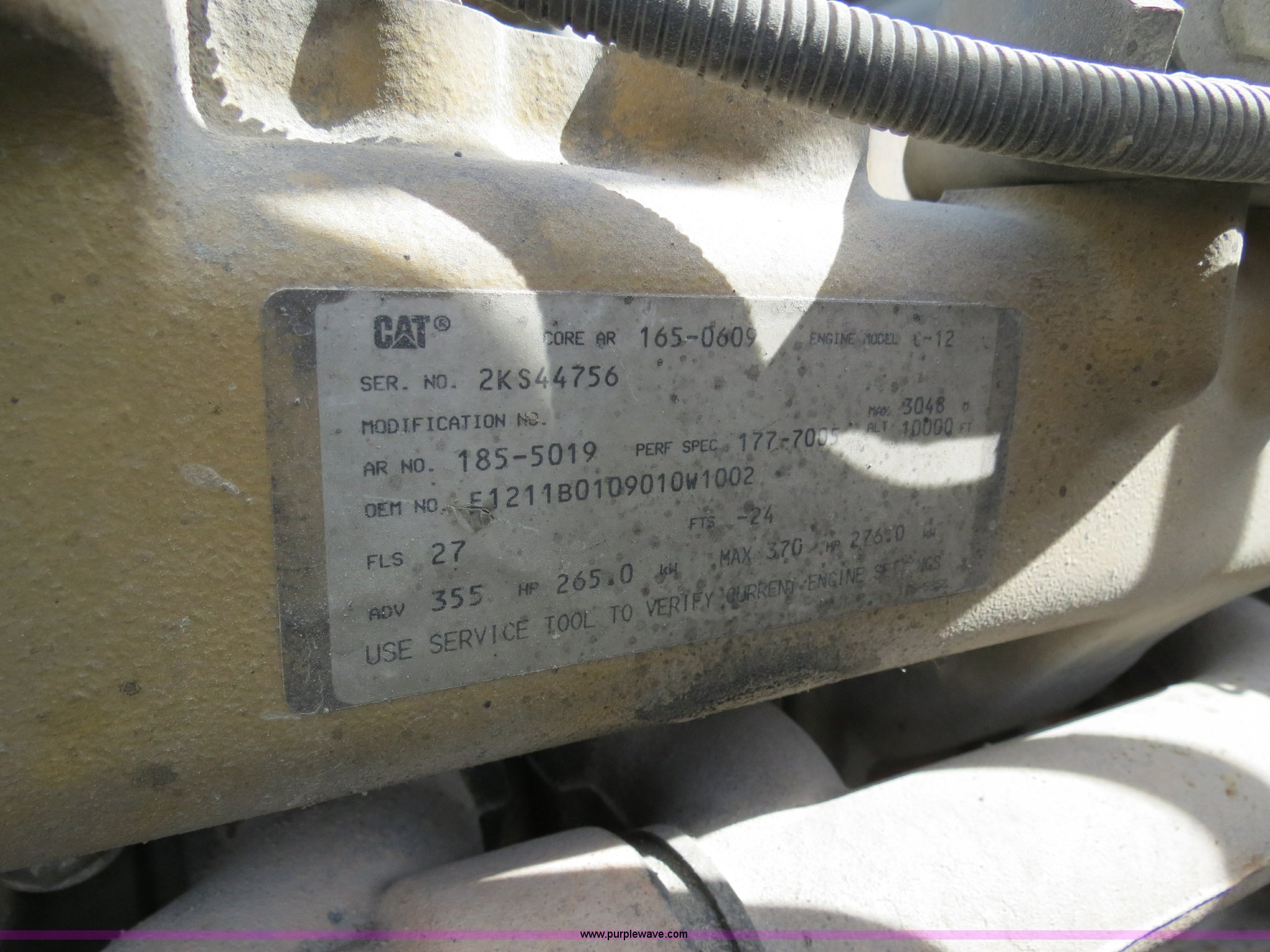 Purple Wave is selling a used Truck Tractor in Texas. This item is a 2000 Peterbilt 377 semi truck with the following: 1,280,544 miles on odometer, Caterpillar C12 12.0L diesel engine, 355 HP, Does not run, Serial 2KS44756, Eaton Fuller 10 speed manual transmission, Model RTLO-14-610-BT2, Twin screw, AC and heat, Tilt, Cruise, AM/FM/cassette, Passenger daylight door, Air suspension seat, Heated mirrors, Air ride cab, Single bunk sleeper, Storage, Visor, Chrome bumper, Dual 110 gallon fuel tanks, Single rear exhaust stack, Aluminum deck plate, Dump valves, Air suspension, Air brakes, 295/75R22.5 tires, GVWR 50,000 lbs, FAWR 12,000 lbs, IAWR 19,000 lbs, RAWR 19,000 lbs, 3.70 gear ratio, Does not run, #6 injector roller problem, Cam lobe worn down, Engine misses, Front bumper missing, Unit# 1275