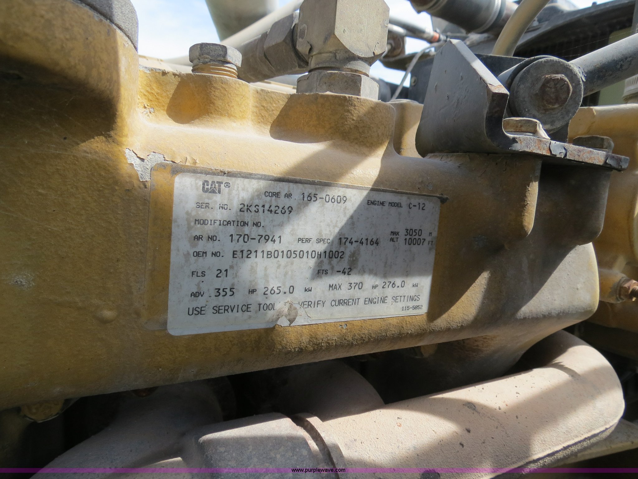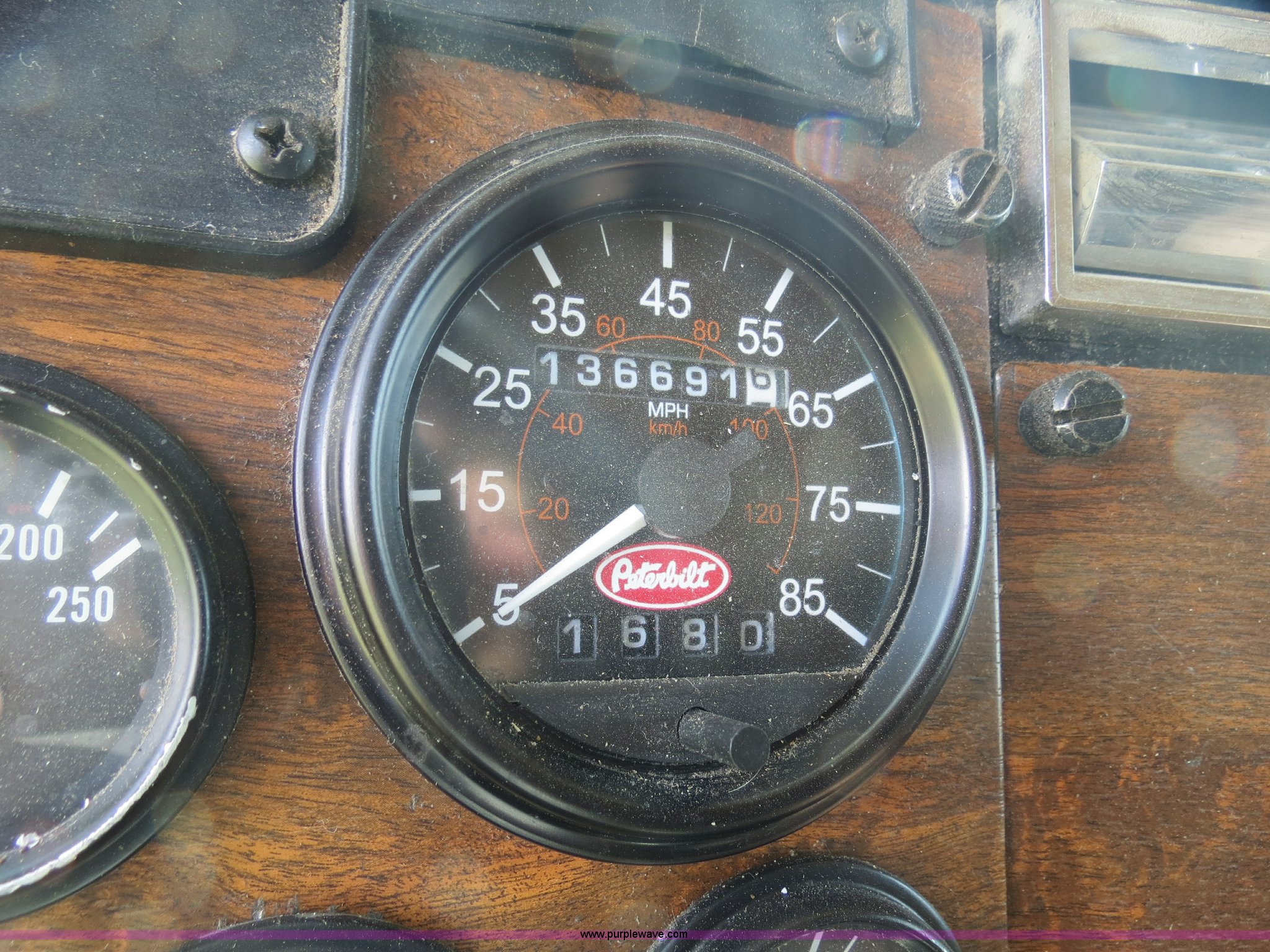 Purple Wave is selling a used Truck Tractor in Texas. This item is a 2000 Peterbilt 377 semi truck with the following: 1,136,691 miles on odometer, Caterpillar C12 12.0L diesel engine, 355 HP, Serial 2KS14269, Does not run, Eaton Fuller 10 speed manual transmission, Model RTLO-14-610-BT2, Twin screw, AC and heat, Tilt, Cruise, AM/FM/cassette, Passenger daylight door, Air suspension seat, Heated mirrors, Air ride cab, Single bunk sleeper, Storage, Visor, Chrome bumper, Dual 110 gallon fuel tanks, Single rear exhaust stack, Aluminum deck plate, Dump valves, Air suspension, Air brakes, 295/75R22.5 tires, GVWR 50,000 lbs, FAWR 12,000 lbs, IAWR 19,000 lbs, RAWR 19,000 lbs, 3.70 gear ratio, Does not run, #2, 3, 4 cylinder liners leaking coolant in oil, Fifth wheel missing, Unit# 1161