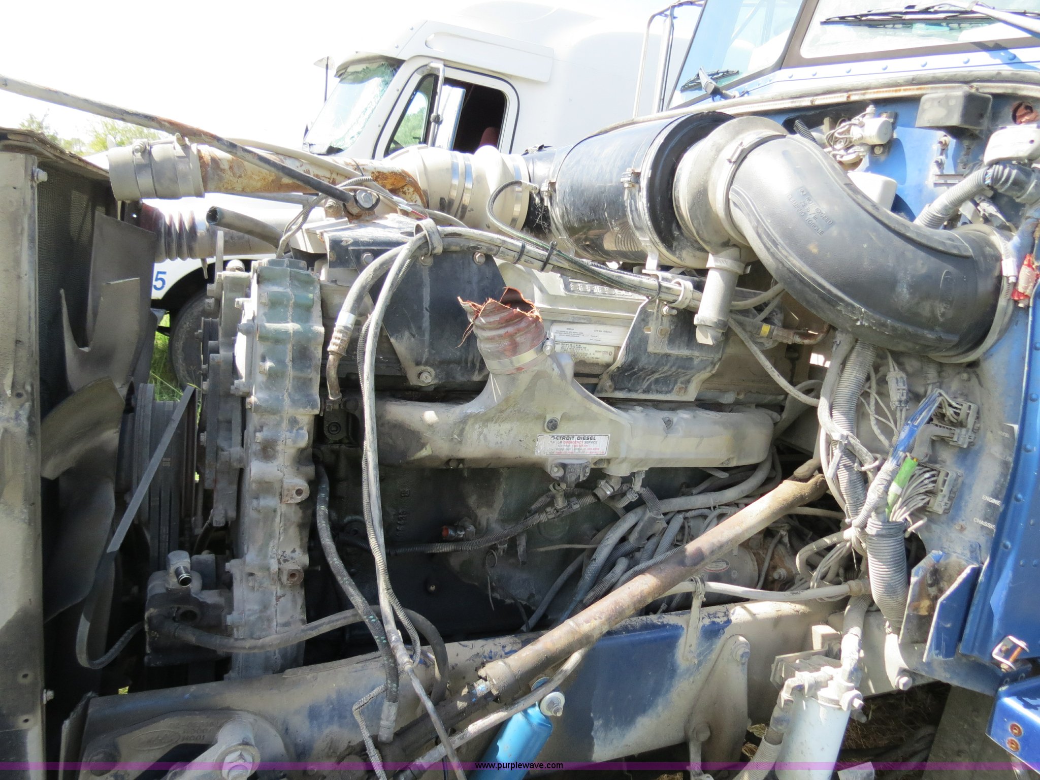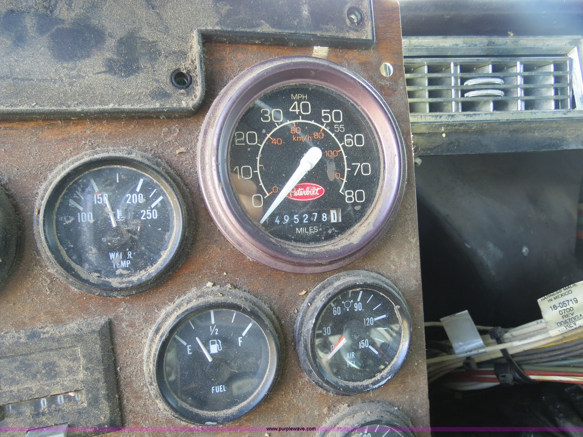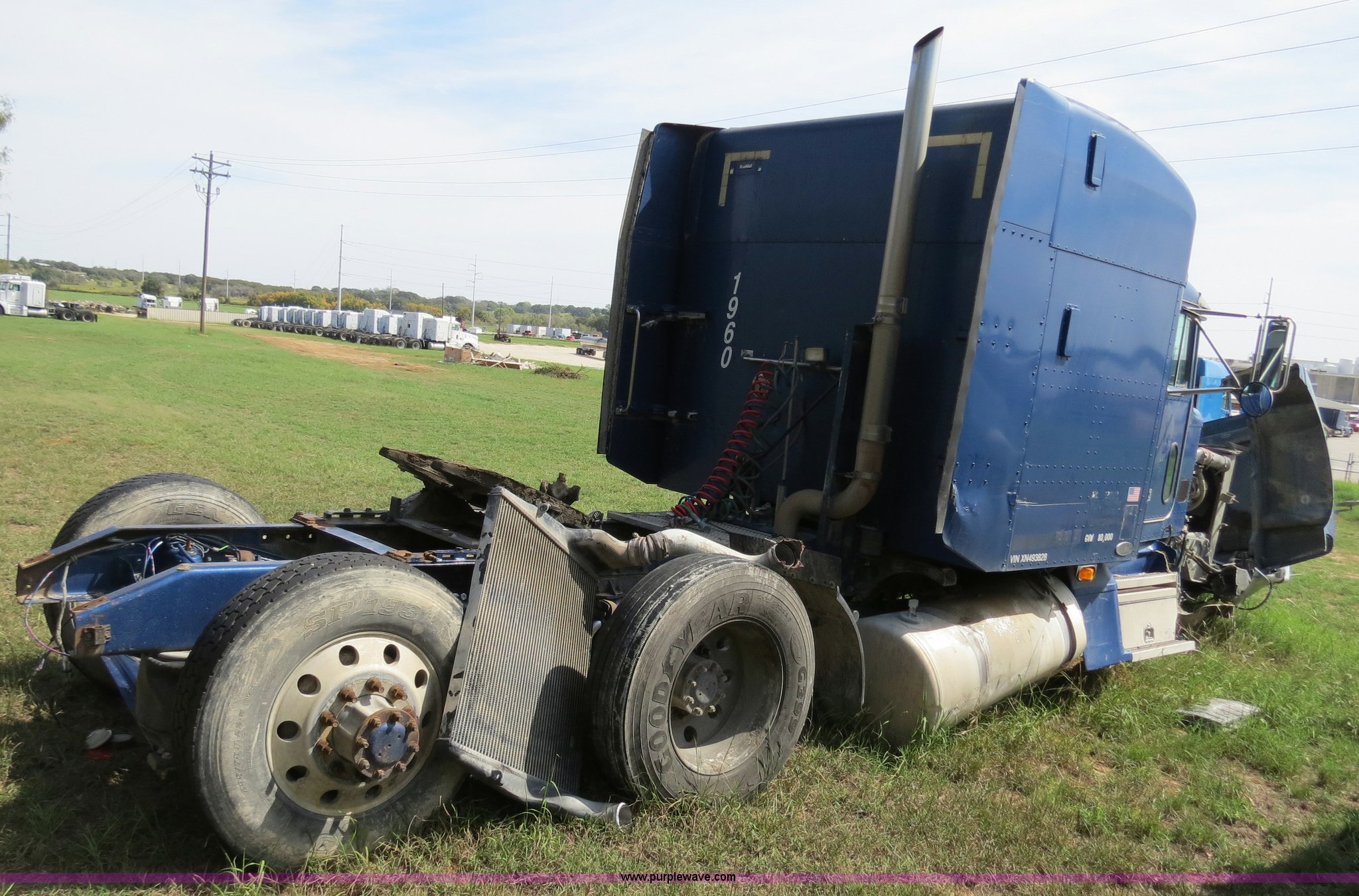 Purple Wave is selling a used Truck Tractor in Texas. This item is a 1999 Peterbilt 377 semi truck with the following: 1,495,278 miles on odometer, Detroit Series 60 12.7L diesel engine, Does not run, Eaton Fuller 10 speed manual transmission, Model RTLO-15-610-BT2, Twin screw, AC and heat, Cruise, Passenger daylight door, Air suspension seat, Power and heated mirrors, Air ride cab, Single bunk sleeper, Storage, Visor, Chrome bumper, Air slide fifth wheel, Dual 110 gallon fuel tanks, Single rear exhaust stack, Aluminum deck plate, Dump valves, Air suspension, Air brakes, Jake brake, 295/75R22.5 tires, GVWR 50,000 lbs, FAWR 12,000 lbs, IAWR 19,000 lbs, RAWR 19,000 lbs, 3.70 gear ratio, Does not run, Wrecked, Parts missing, Tires missing, Interior dash not attached, Unit# 1960
