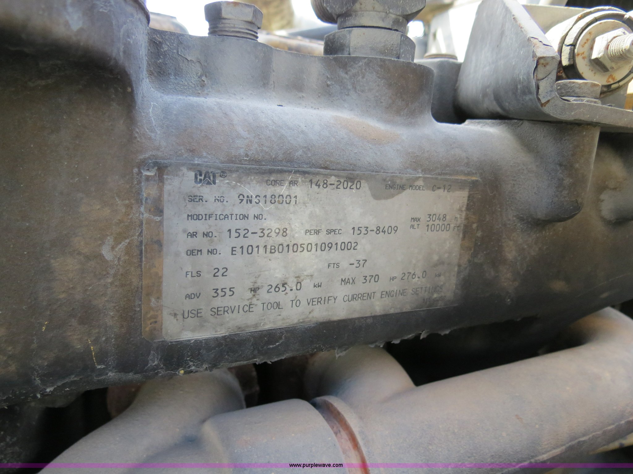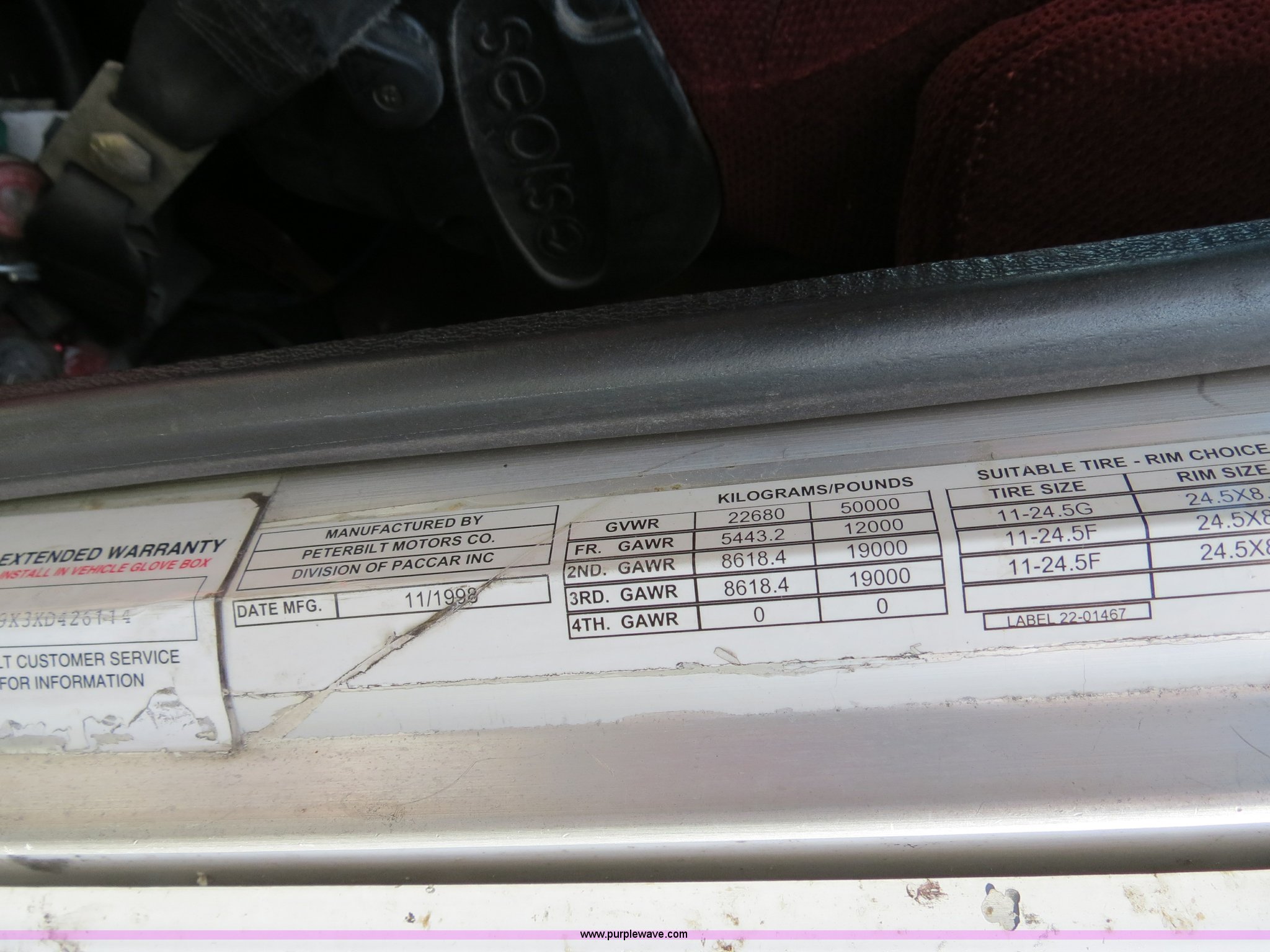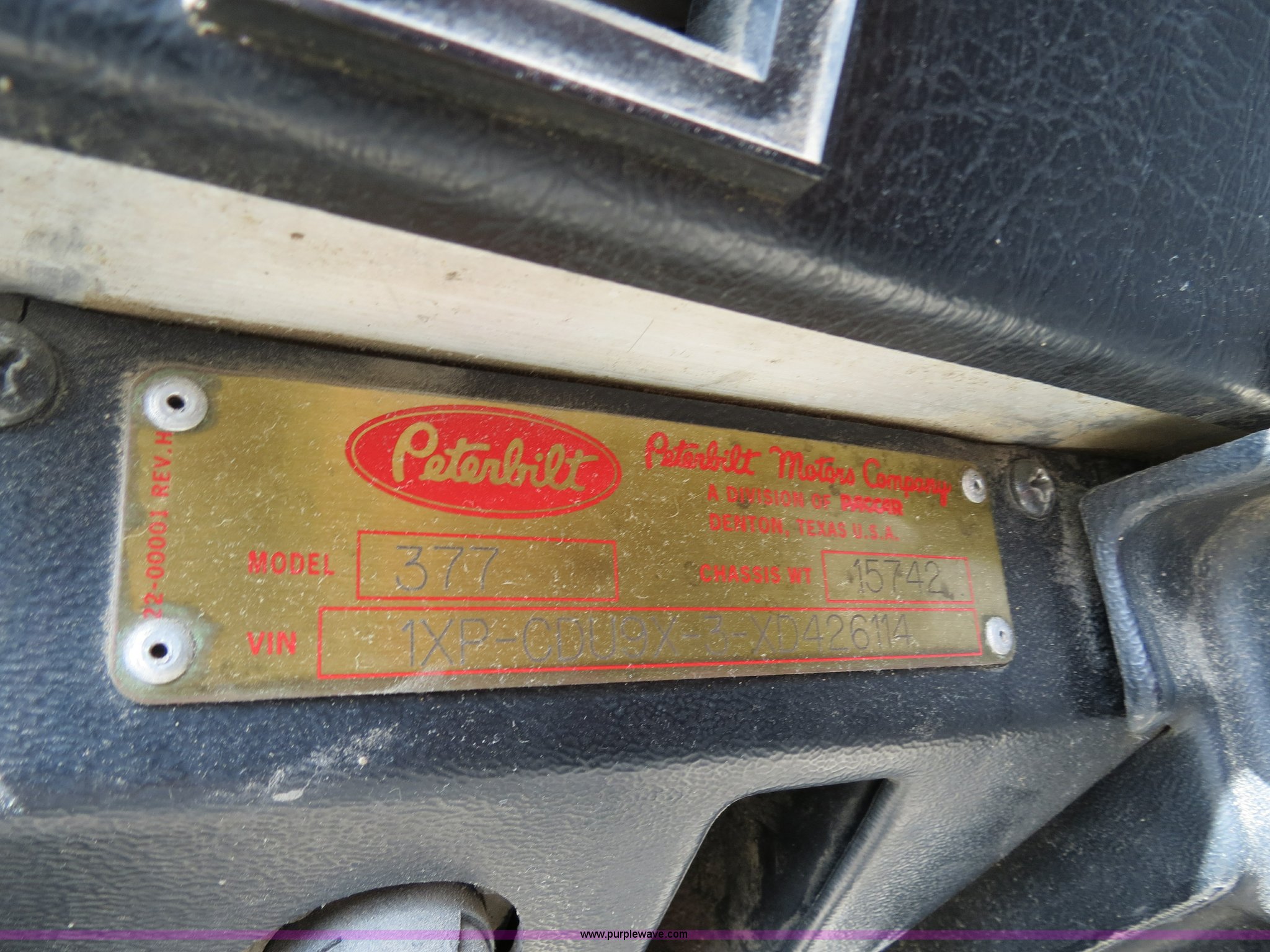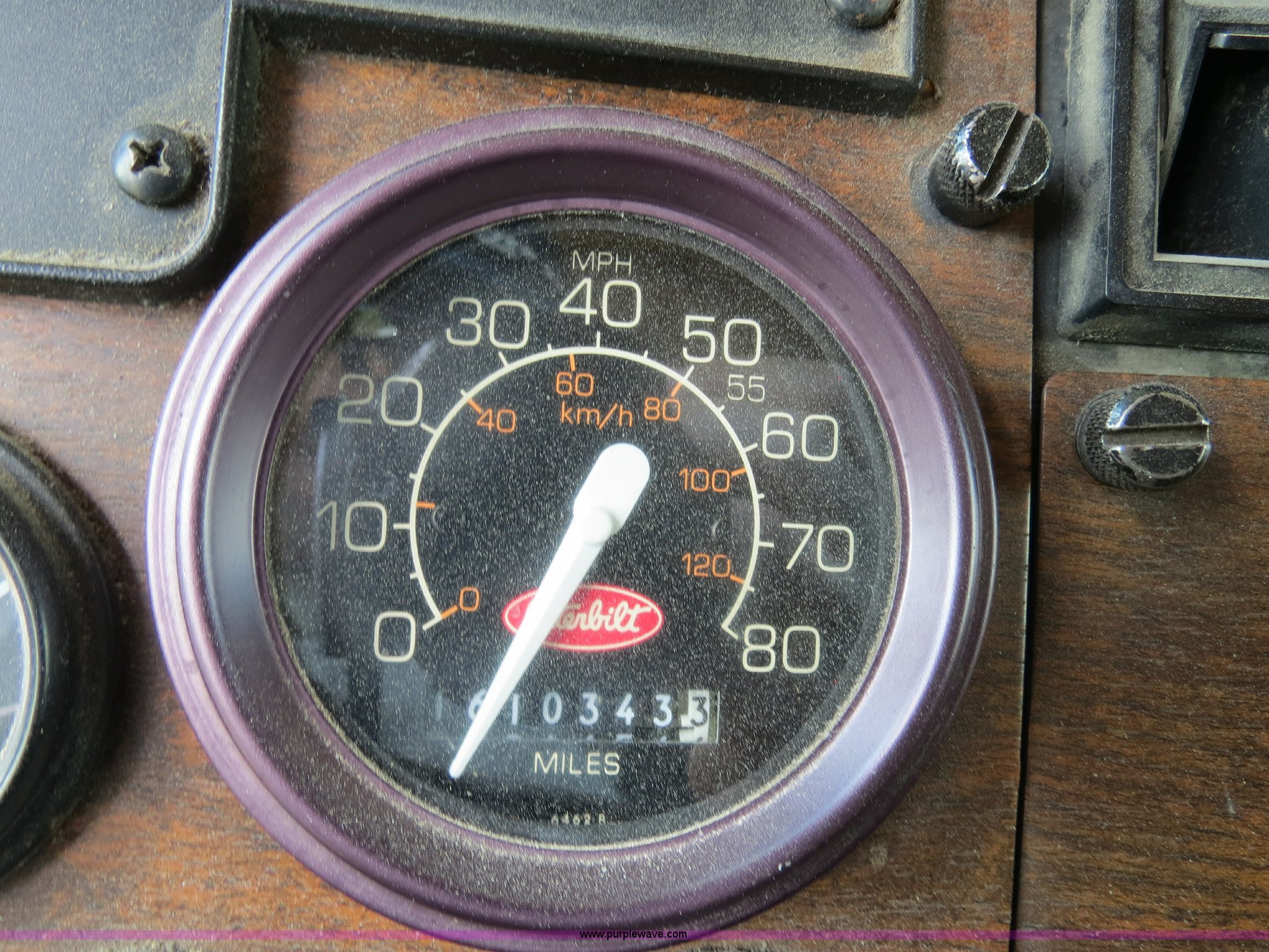 Purple Wave is selling a used Truck Tractor in Texas. This item is a 1999 Peterbilt 377 semi truck with the following: 1,610,343 miles on odometer, Caterpillar C12 12.0L diesel engine, 355 HP, Serial 9NS18001, Does not run, Eaton Fuller 10 speed manual transmission, Model RTLO-14-610-BT2, Twin screw, AC and heat, Tilt, Cruise, AM/FM/CD, Passenger daylight door, Air suspension seat, Heated mirrors, Air ride cab, Single bunk sleeper, Storage, Visor, Dual 110 gallon fuel tanks, Single rear exhaust stack, Aluminum deck plate, Dump valves, Air suspension, Air brakes, 275/80R22.5 front tires, 295/75R22.5 rear tires, GVWR 50,000 lbs, FAWR 12,000 lbs, IAWR 19,000 lbs, RAWR 19,000 lbs, 3.70 gear ratio, Does not run, Dropped valve, Unit# 1620