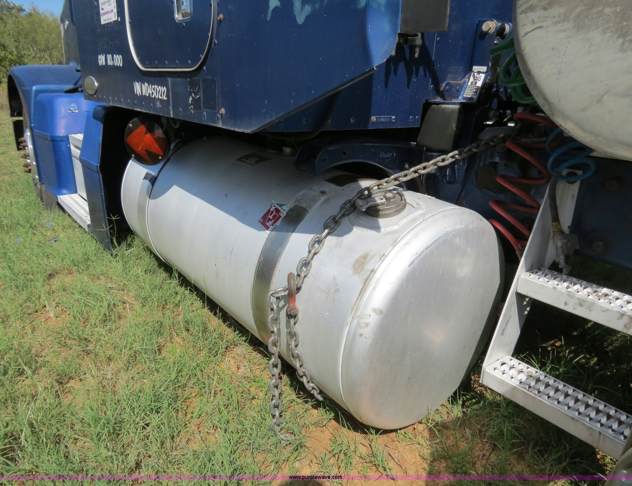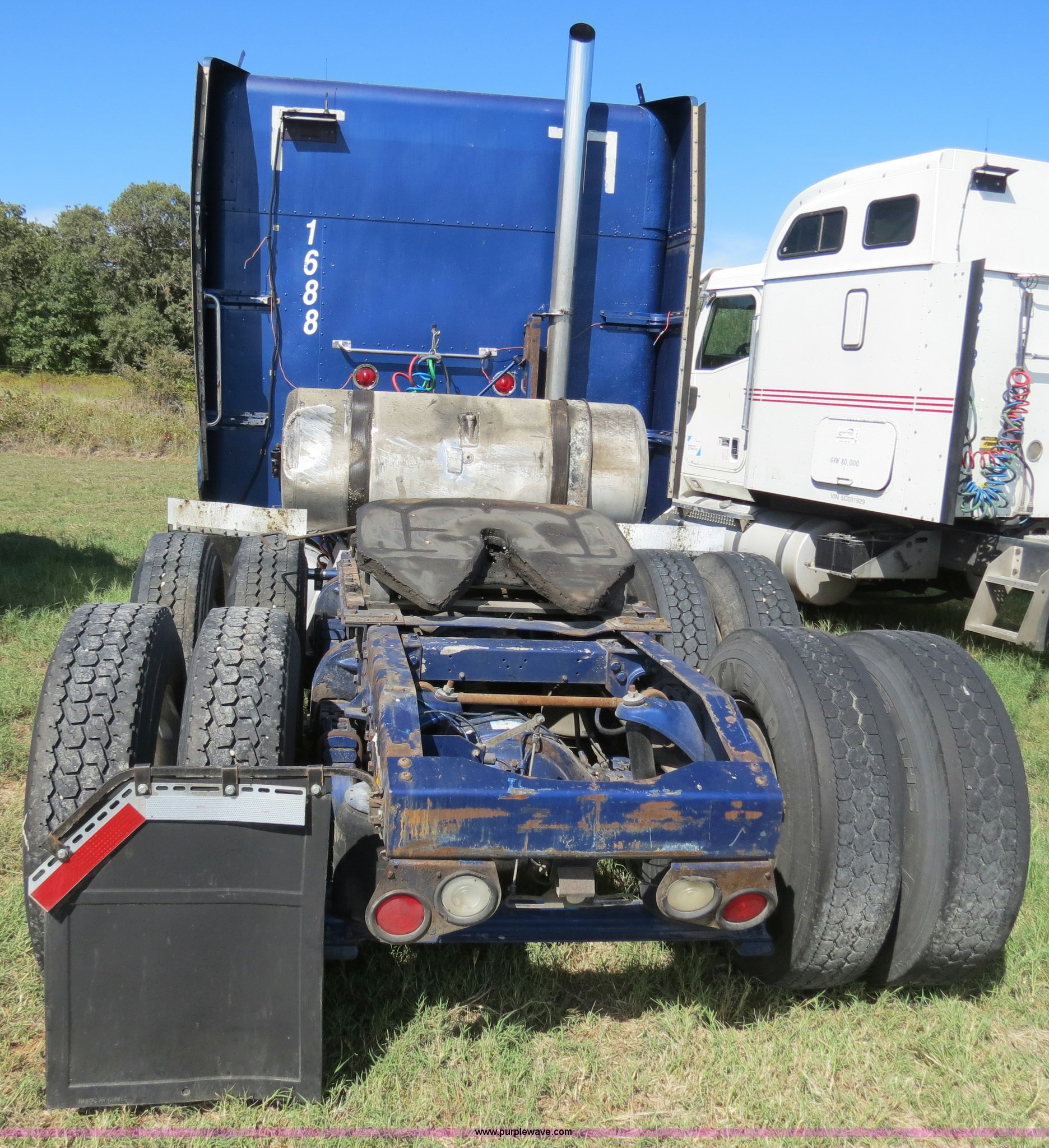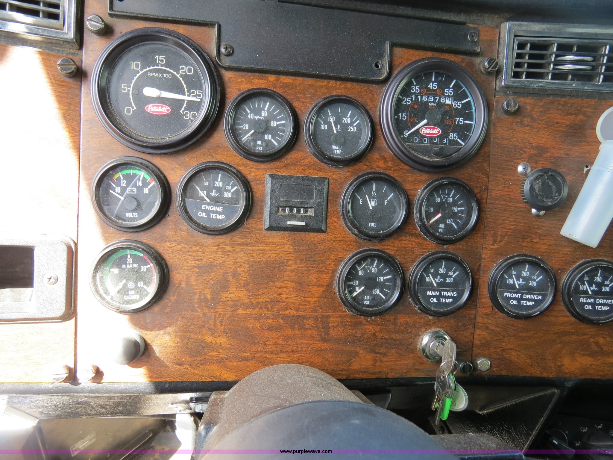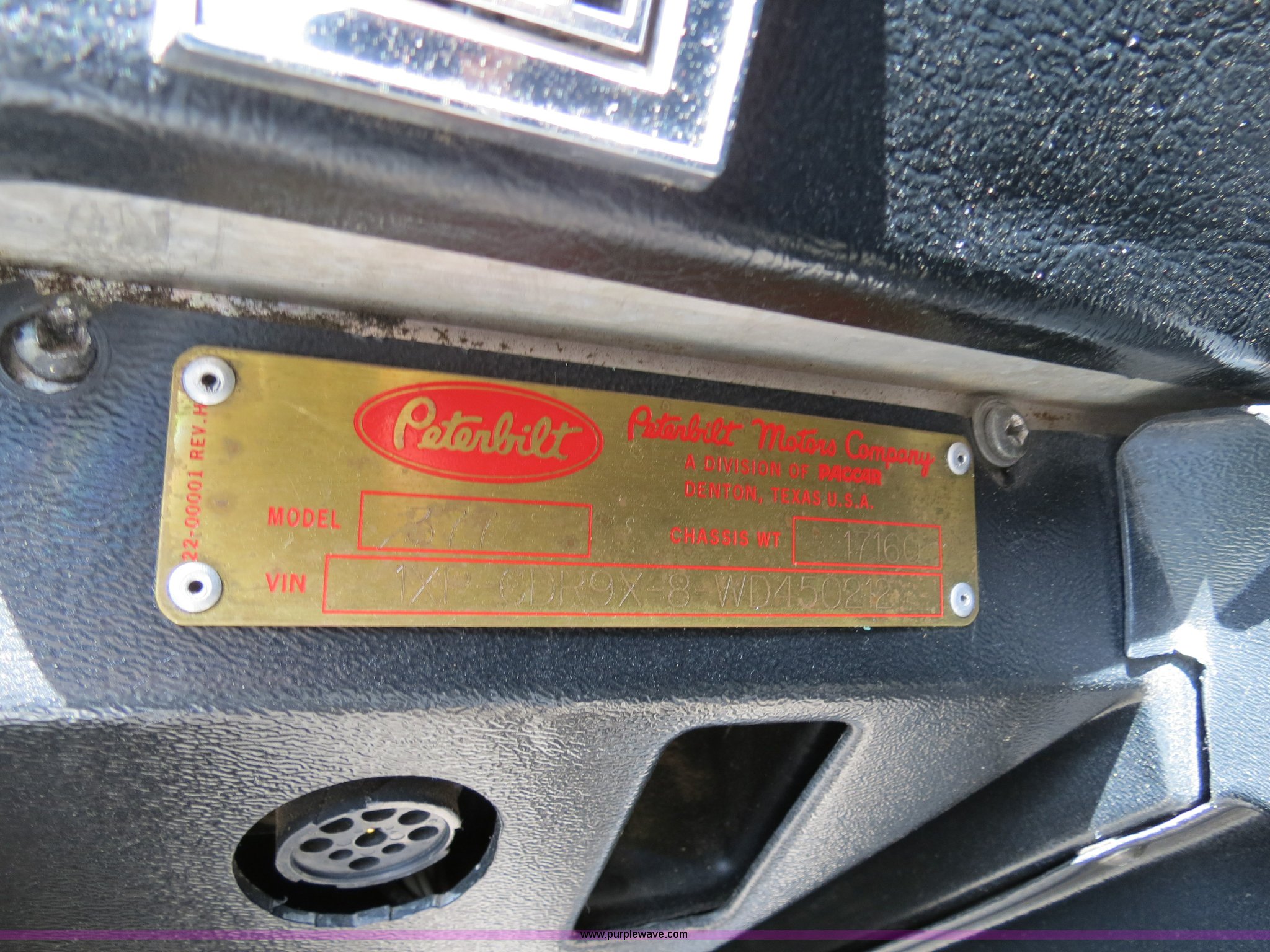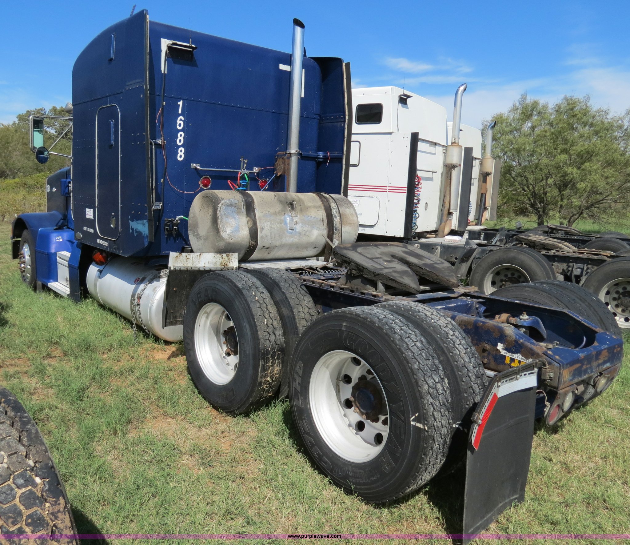Purple Wave is selling a used Truck Tractor in Texas. This item is a 1998 Peterbilit 377 semi truck with the following: 1,116,978 miles on odometer, Detroit Series 60 12.7L diesel engine, Does not run, Eaton Fuller 10 speed manual transmission, Model RTLO-15-610-BT2, Twin screw, AC and heat, Tilt, Cruise, Passenger daylight door, Air suspension seat, Power and heated mirrors, Air ride cab, Single bunk sleeper, Storage, Visor, Chrome bumper, Air slide fifth wheel, Dual 110 gallon fuel tanks, Fuel tanks unattached, Single rear exhaust stack, Aluminum deck plate, Dump valves, Air suspension, Air brakes, Jake brake, Aluminum wheels, 275/80R22.5 front tires, 295/75R22.5 rear tires, GVWR 50,000 lbs, FAWR 12,000 lbs, IAWR 19,000 lbs, RAWR 19,000 lbs, 3.70 gear ratio, Does not run, Low oil pressure, Engine knocking, Unit# 1688