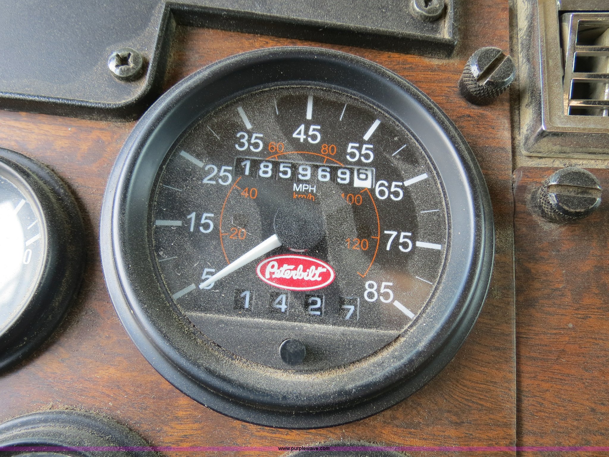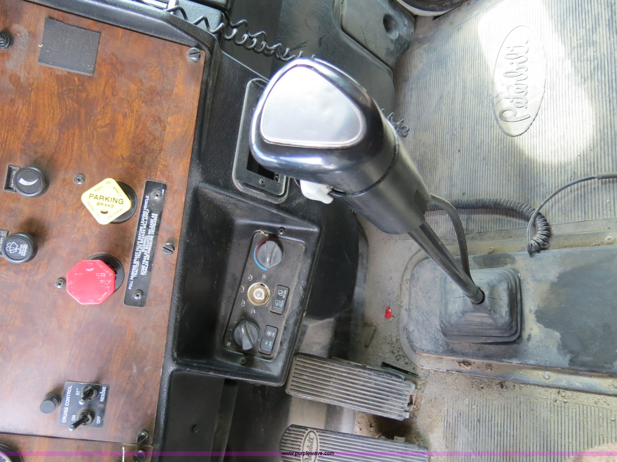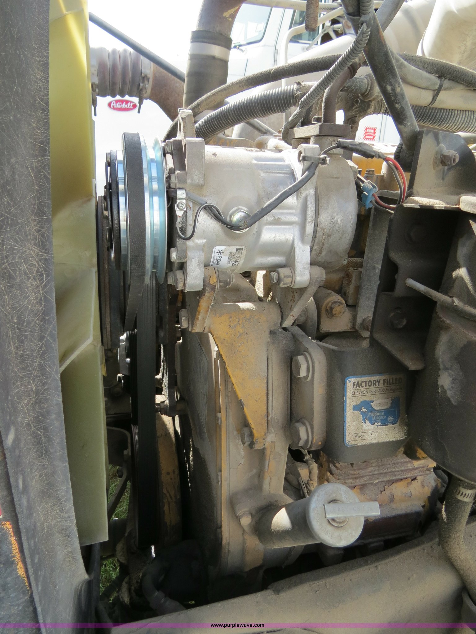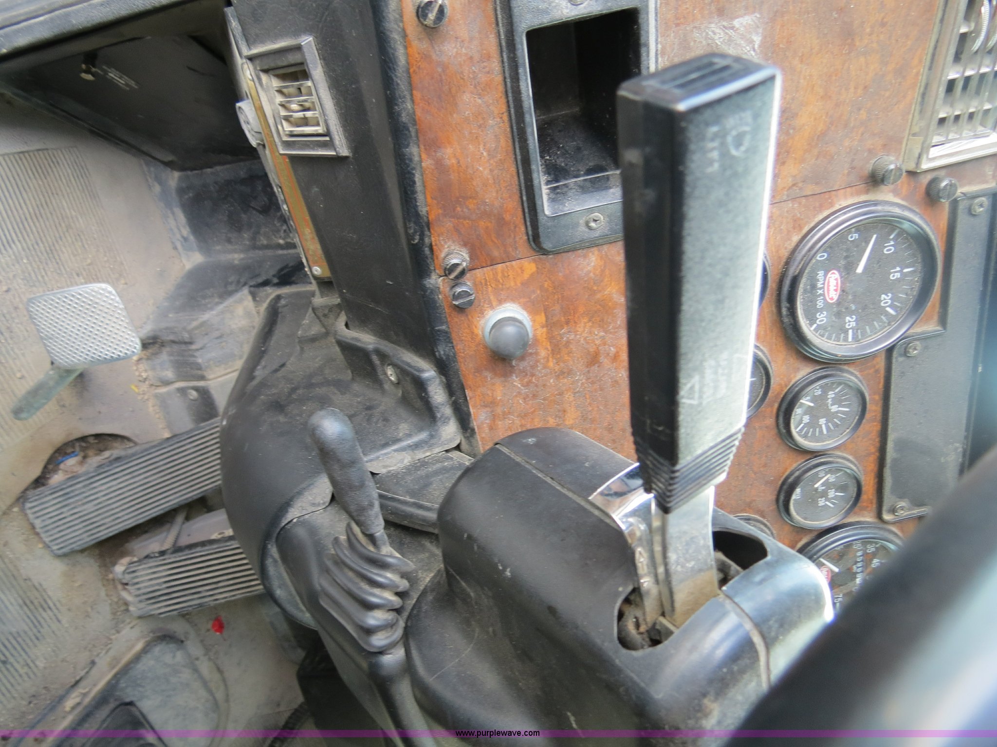 Purple Wave is selling a used Truck Tractor in Texas. This item is a 2000 Peterbilt 377 semi truck with the following: 1,185,969 miles on odometer, Caterpillar C12 12.0L diesel engine, 355 HP, Serial 2KS10984, Eaton Fuller 10 speed manual transmission, Model RTLO-14-610-BT2, Twin screw, AC and heat, Tilt, Cruise, AM/FM/cassette, Passenger daylight door, Air suspension seat, Heated mirrors, Air ride cab, Single bunk sleeper, Storage, Visor, Chrome bumper, Dual 110 gallon fuel tanks, Single rear exhaust stack, Aluminum deck plate, Dump valves, Air suspension, Air brakes, 295/75R22.5 tires, GVWR 50,000 lbs, FAWR 12,000 lbs, IAWR 19,000 lbs, RAWR 19,000 lbs, 3.70 gear ratio, Unit# 1257