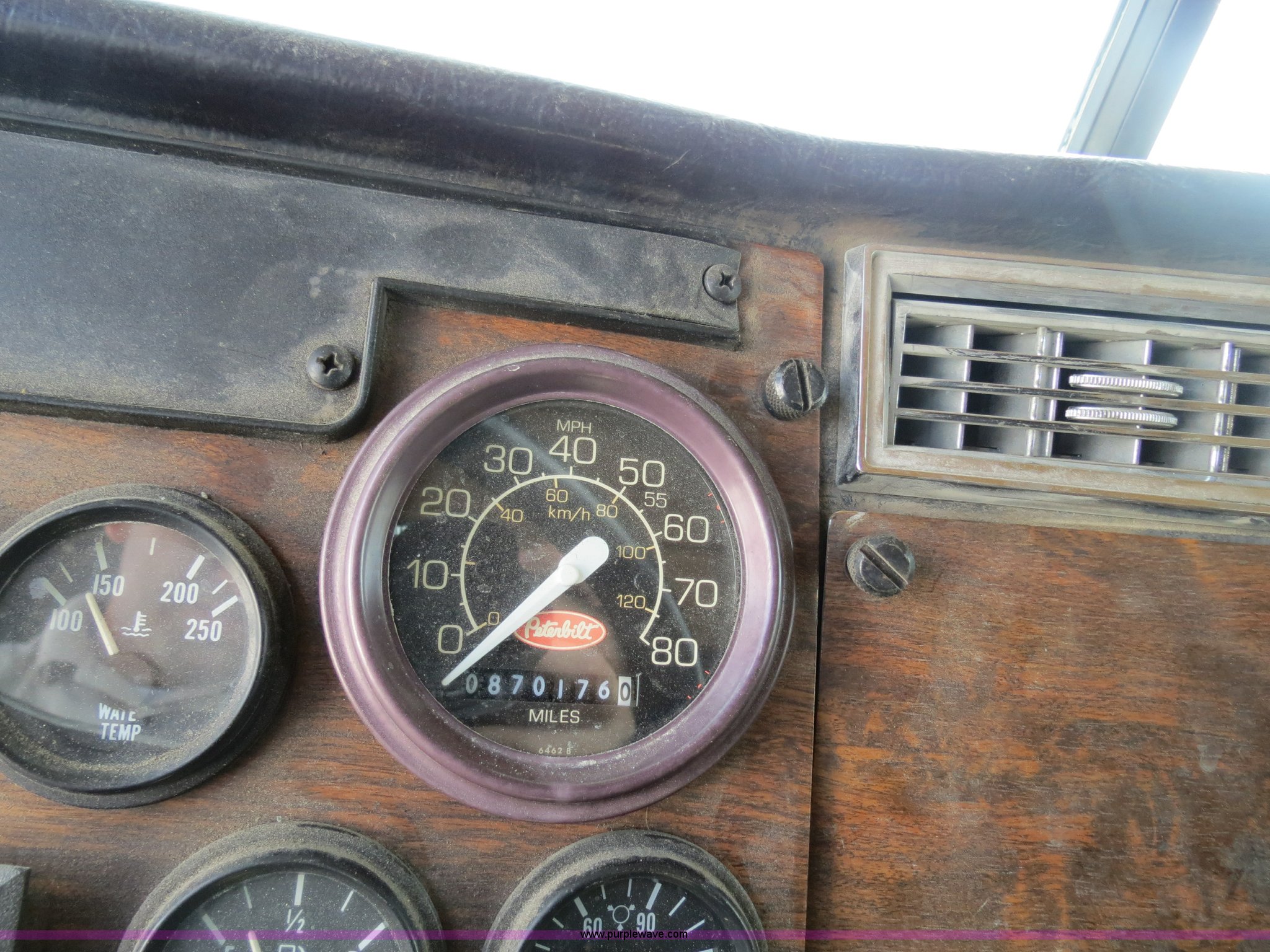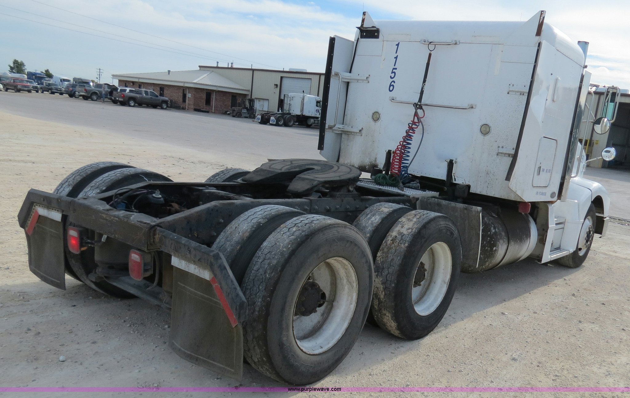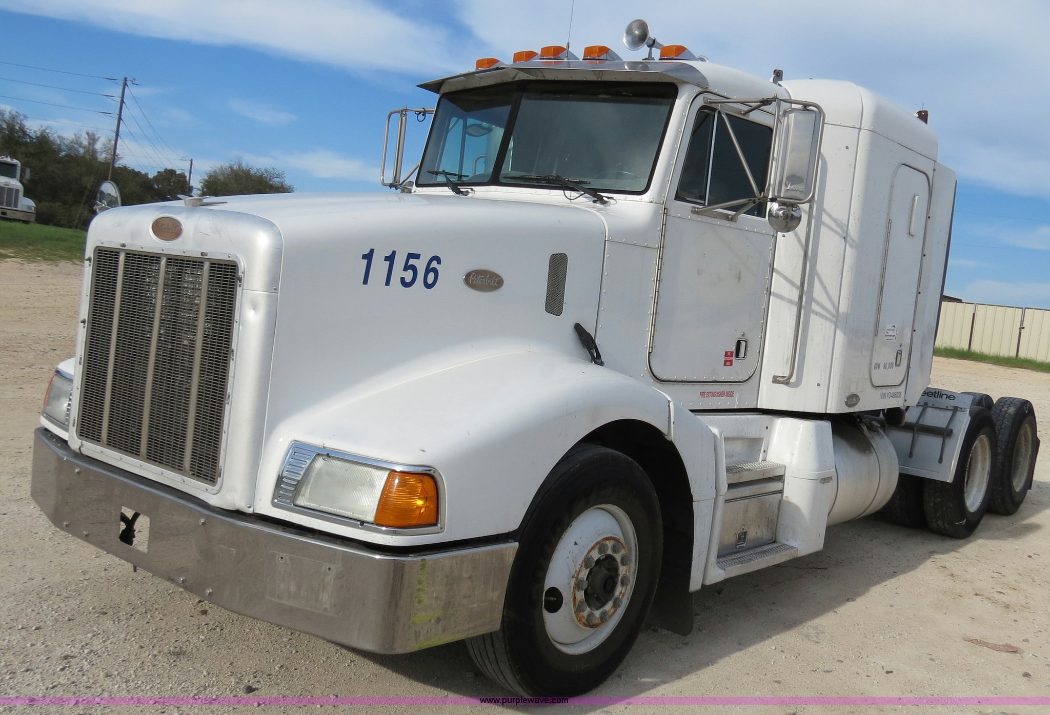 Purple Wave is selling a used Truck Tractor in Texas. This item is a 2000 Peterbilt 377 semi truck with the following: 870,176 miles on odometer, Caterpillar C12 12.0L diesel engine, 355 HP, Serial 2KS22587, Eaton Fuller 10 speed manual transmission, Model RTLO-14-610-BT2, Twin screw, AC and heat, Tilt, Cruise, AM/FM/CD, Passenger daylight door, Air suspension seat, Heated mirrors, Air ride cab, Single bunk sleeper, Storage, Visor, Chrome bumper, Dual 110 gallon fuel tanks, Single rear exhaust stack, Aluminum deck plate, Dump valves, Air suspension, Air brakes, 295/75R22.5 tires, GVWR 50,000 lbs, FAWR 12,000 lbs, IAWR 19,000 lbs, RAWR 19,000 lbs, 3.70 gear ratio, Unit# 1156