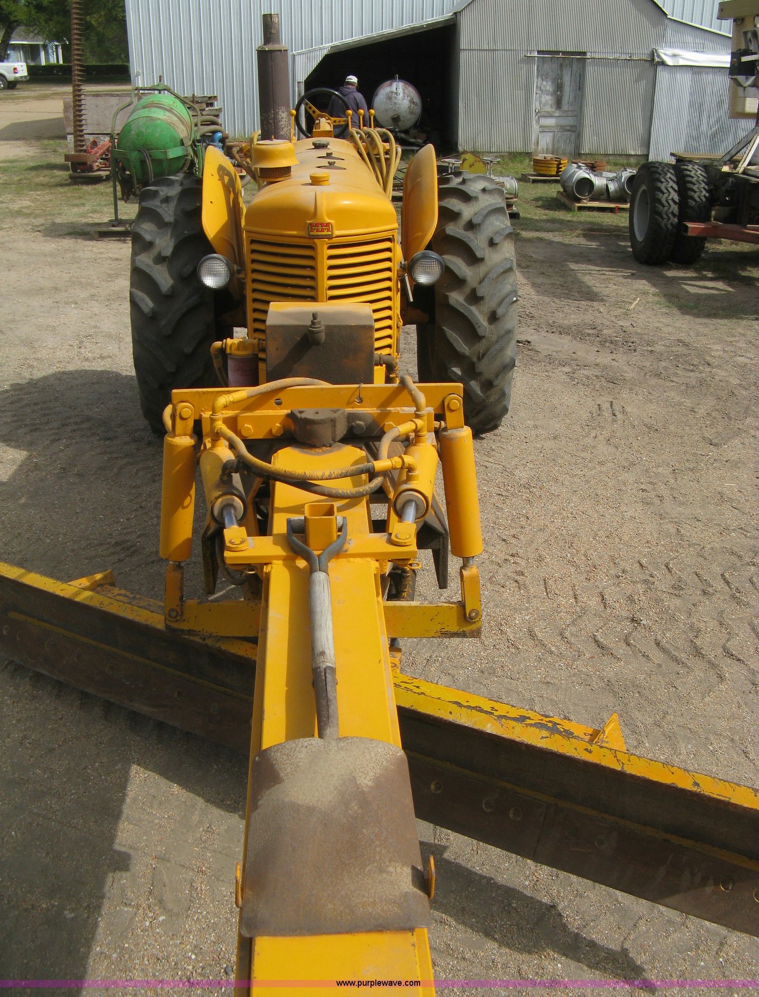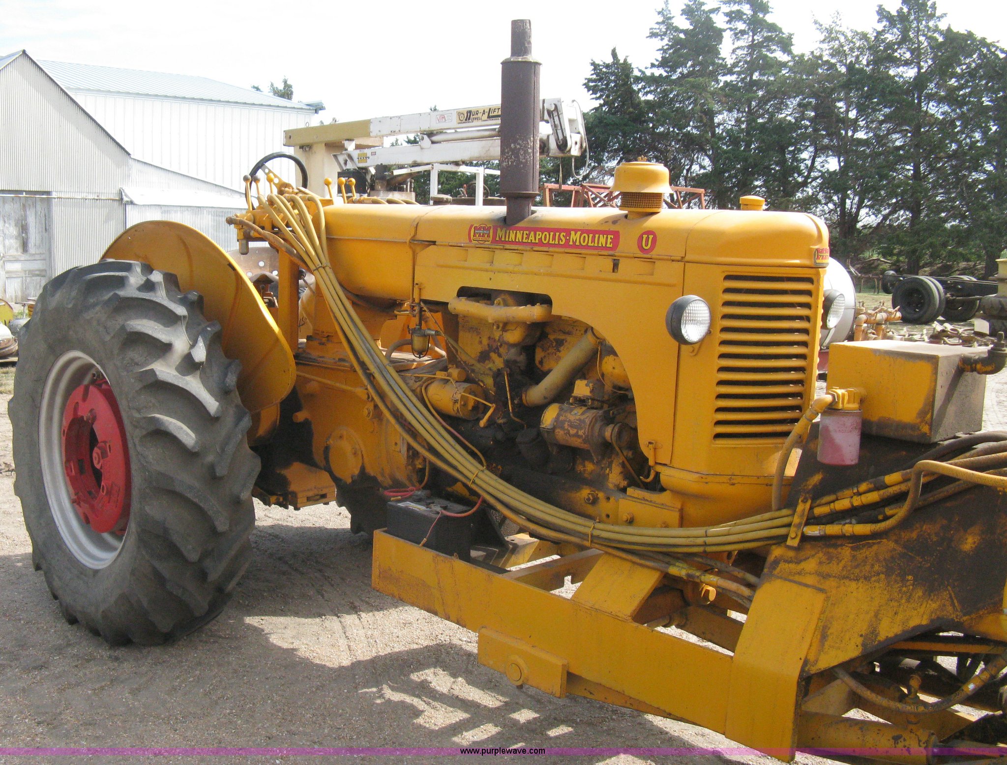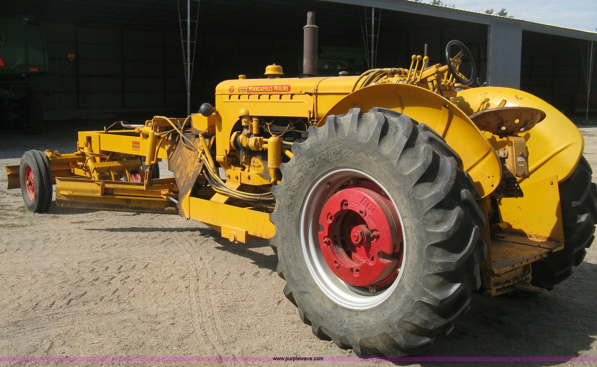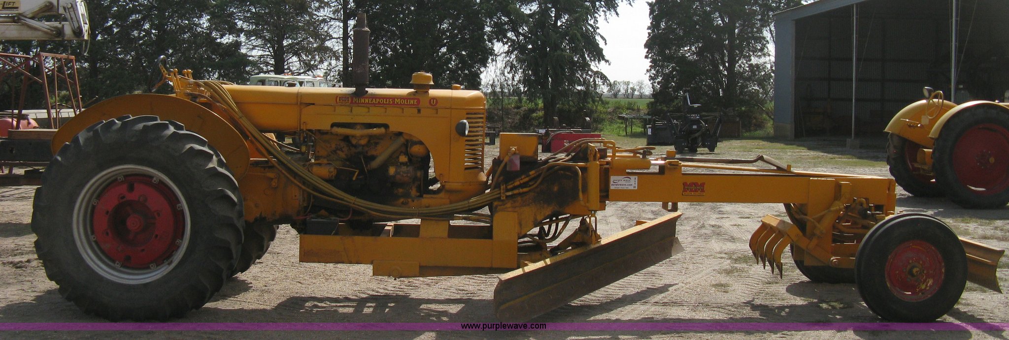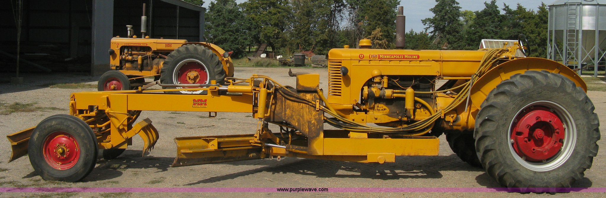 This Minneapolis Moline U tractor/custom design motor grader will sell to the highest bidder regardless of price.