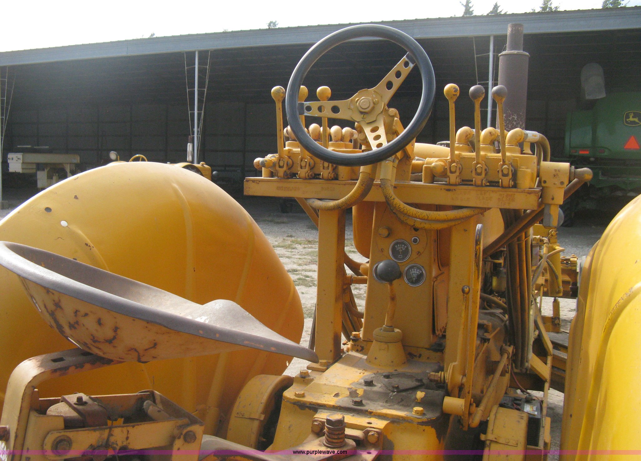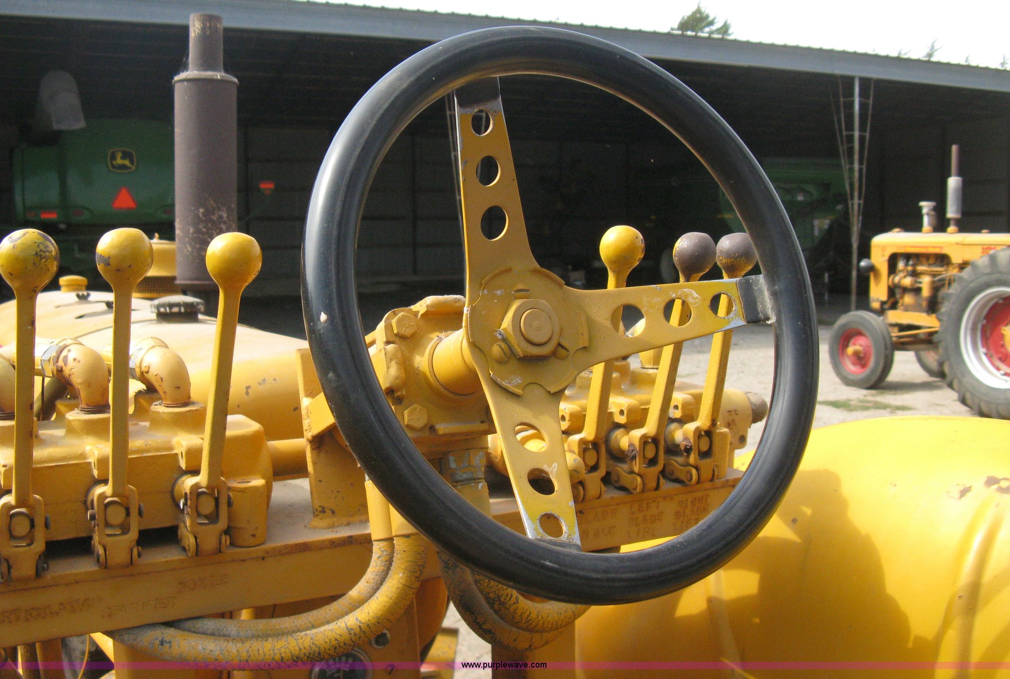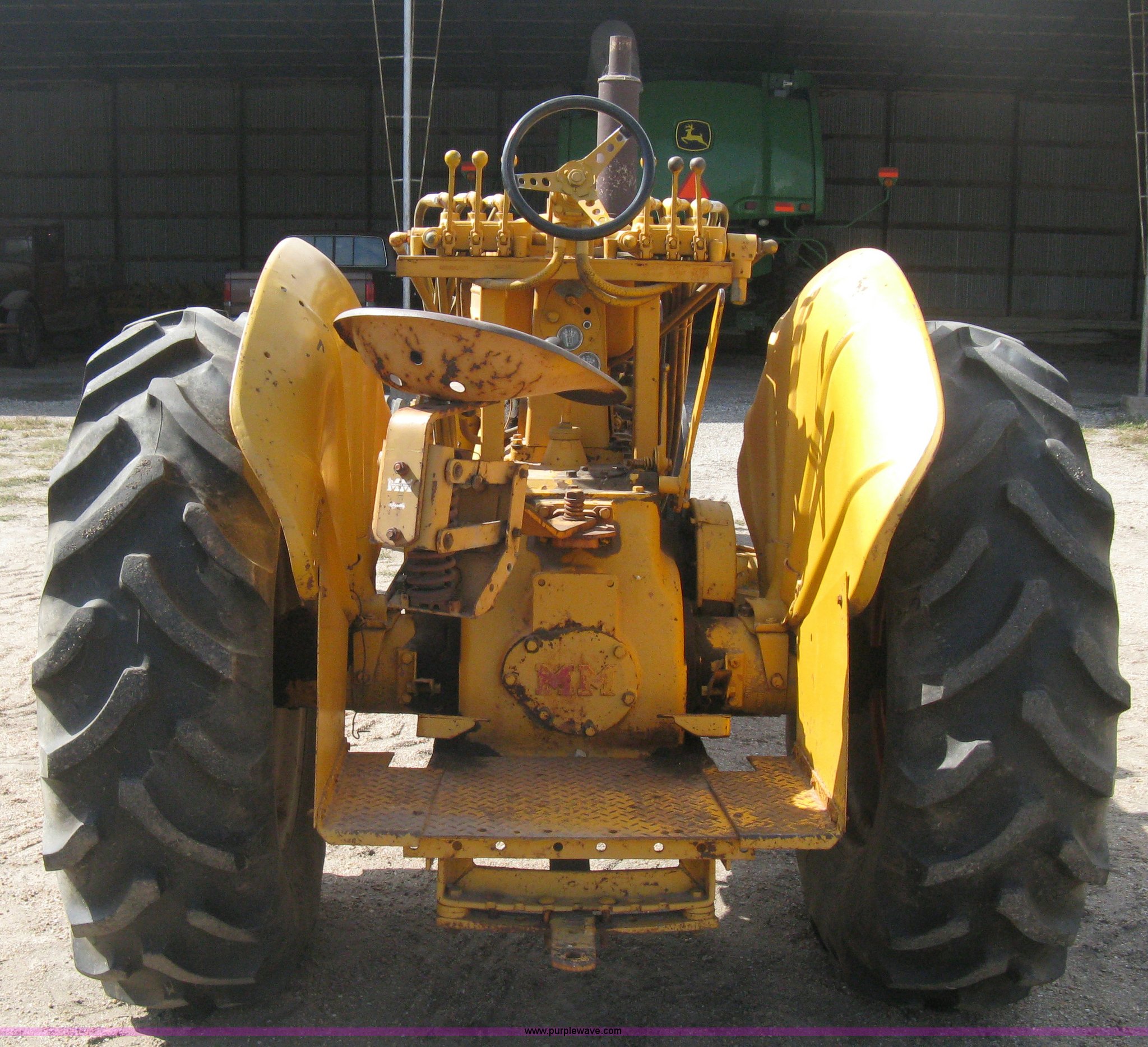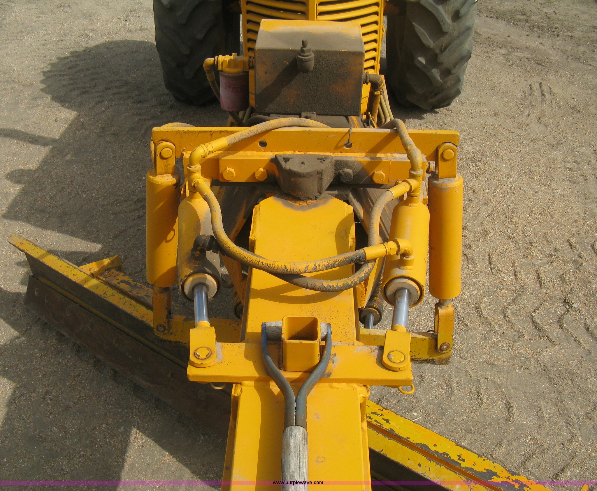 Purple Wave is selling a used Motor Grader in Kansas. This item is a Minneapolis Moline U tractor/custom design motor grader with the following: Four cylinder gas engine, Five speed transmission, Push button start, Custom design articulating grader body, 9' grader blade, Bolt-on edge, Hydraulic four tine scarifier, 6' front mount push blade, Approx. 11.9' from tractor nose to front blade, Adjustable angle draw bar, Pressed seat, 7.50-16SL front tires, 16.9-30 rear tires, (2) MM wheel weight per hub, Serial 01206129