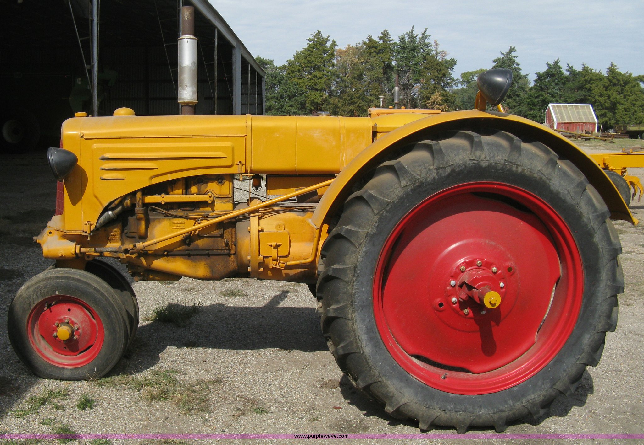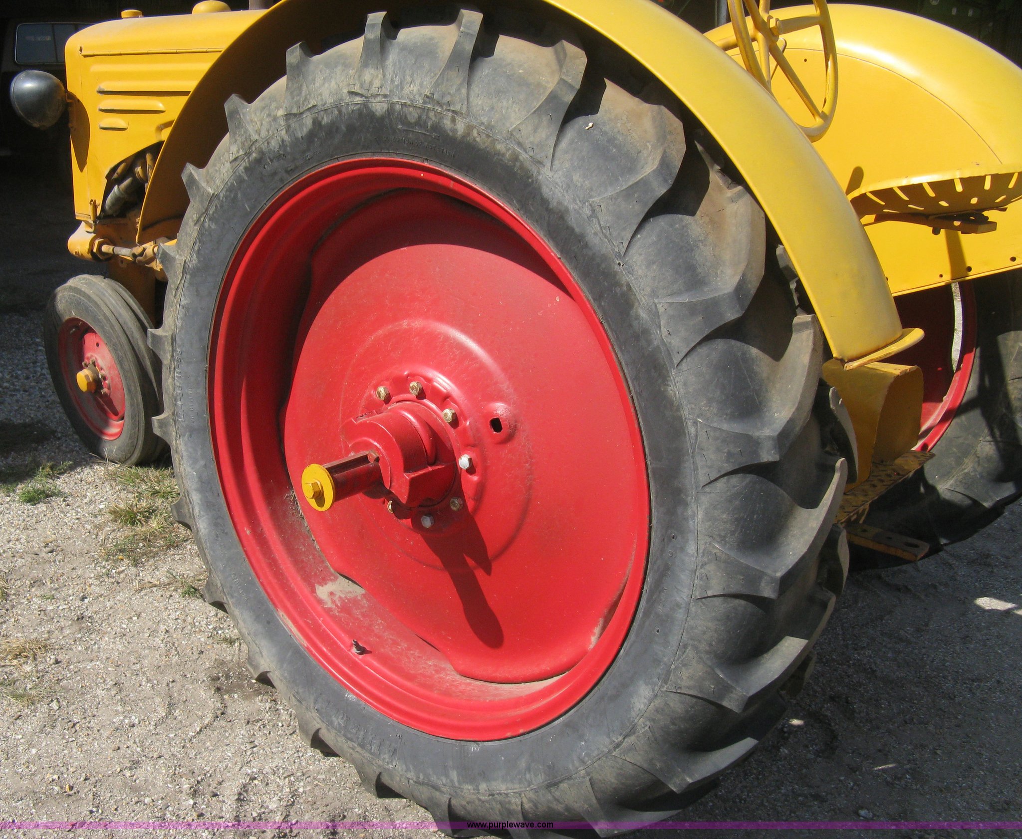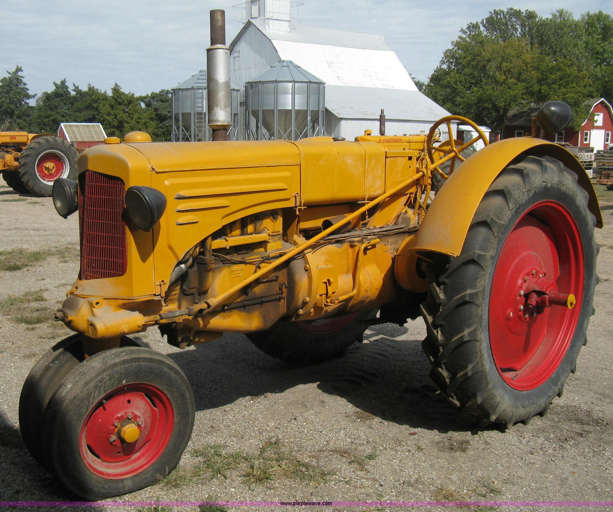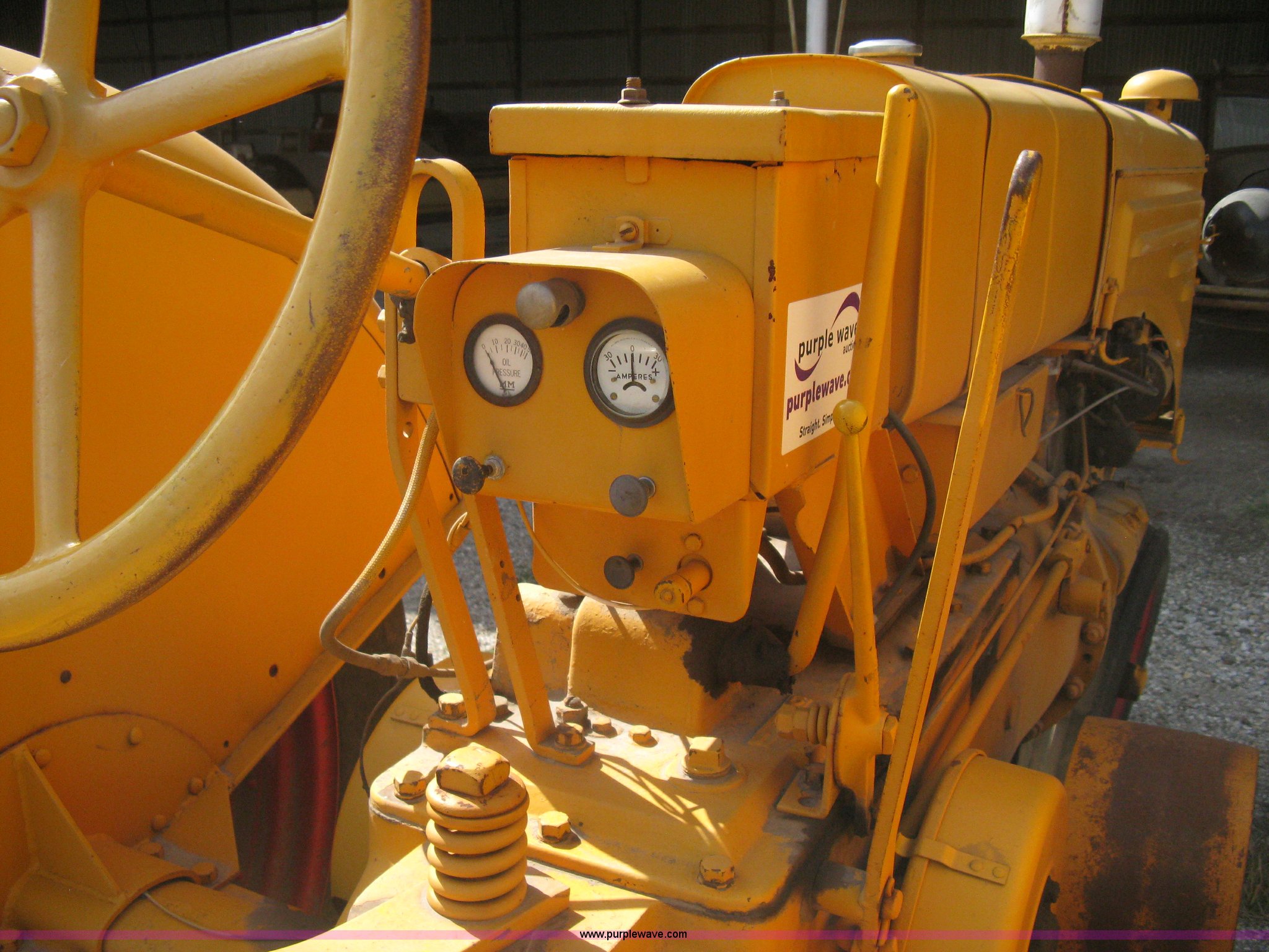Purple Wave is selling a used Tractor in Kansas. This item is a Minneapolis Moline ZTU tractor with the following: Four cylinder gas engine, Five speed transmission, Push button start, Hand start crank included, 540 PTO, Draw bar, Pressed seat, Cast iron steering wheel, Tricycle front, Flat lens headlights, 5.50-16 front tires, 12.4-38/11-38 rear tires, Serial 573773J
