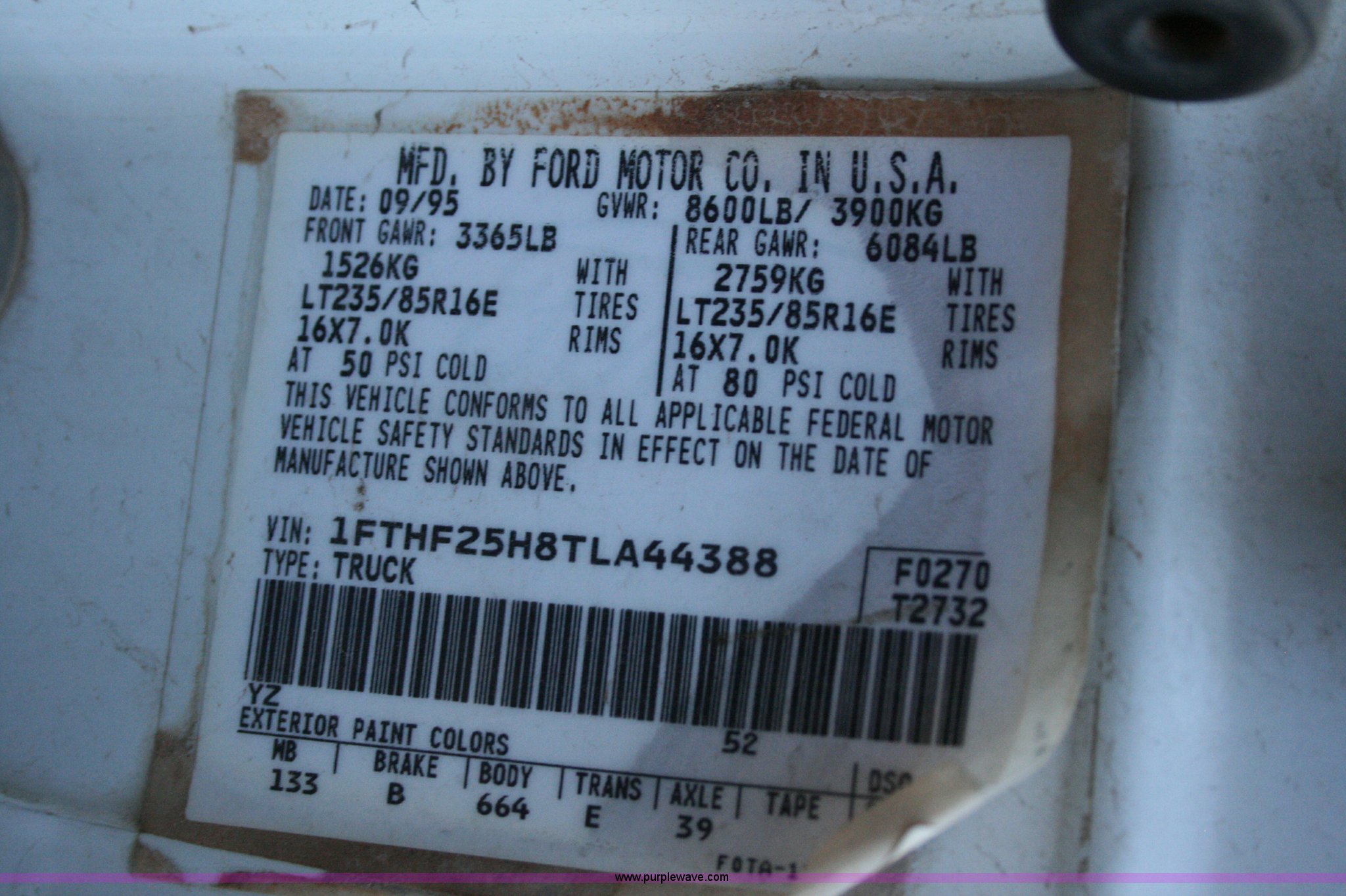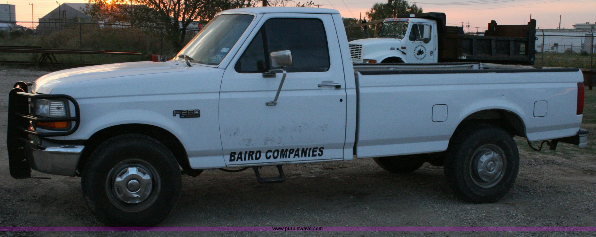 1996 Ford F250 XL pickup truck. 148,985 miles on odometer, 5.8L V8 EFI gas engine, Automatic transmission, Manual windows and locks, Cloth interior, Long bed, 235/85R16 tires, GVWR 8,600 lbs. Title distribution may be delayed up to 14 days from verification of funds. 1FTHF25H8TLA44388. Shipping quotes available. Baird Companies. 109 Cyn Dr.. Big Spring, TX 79720