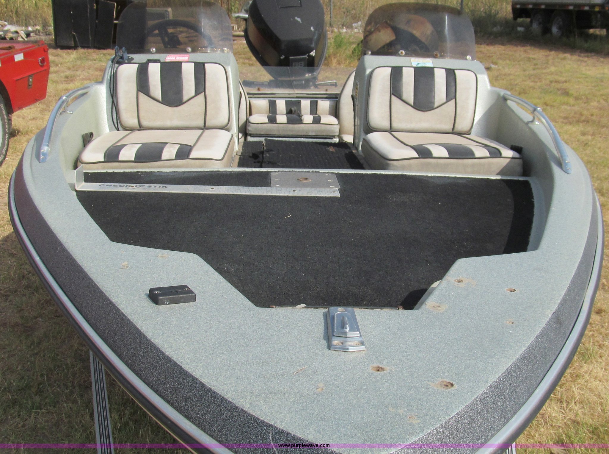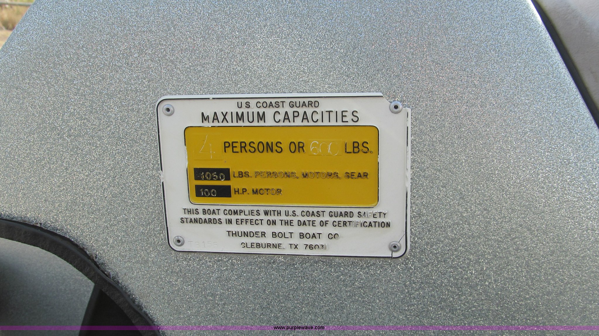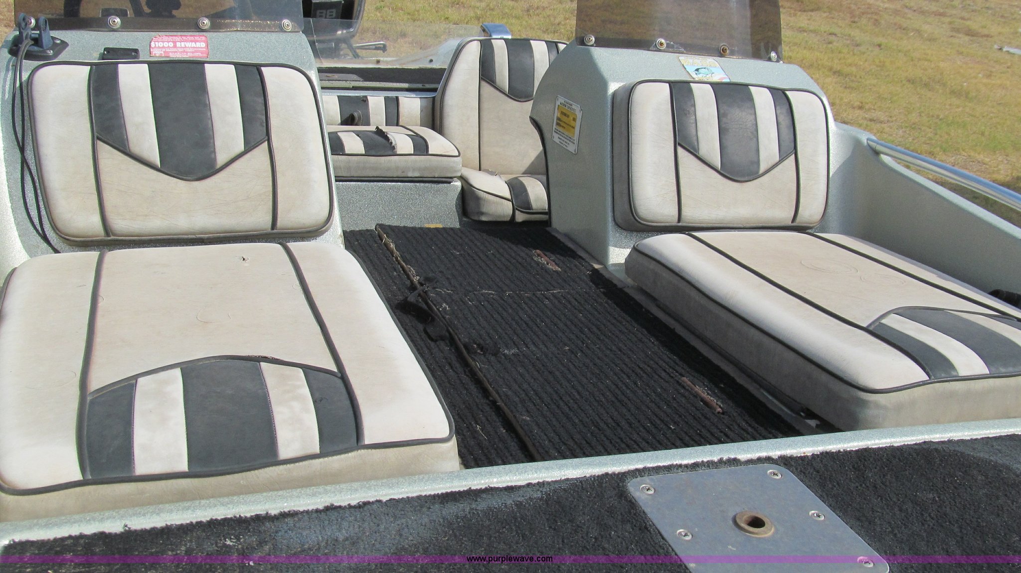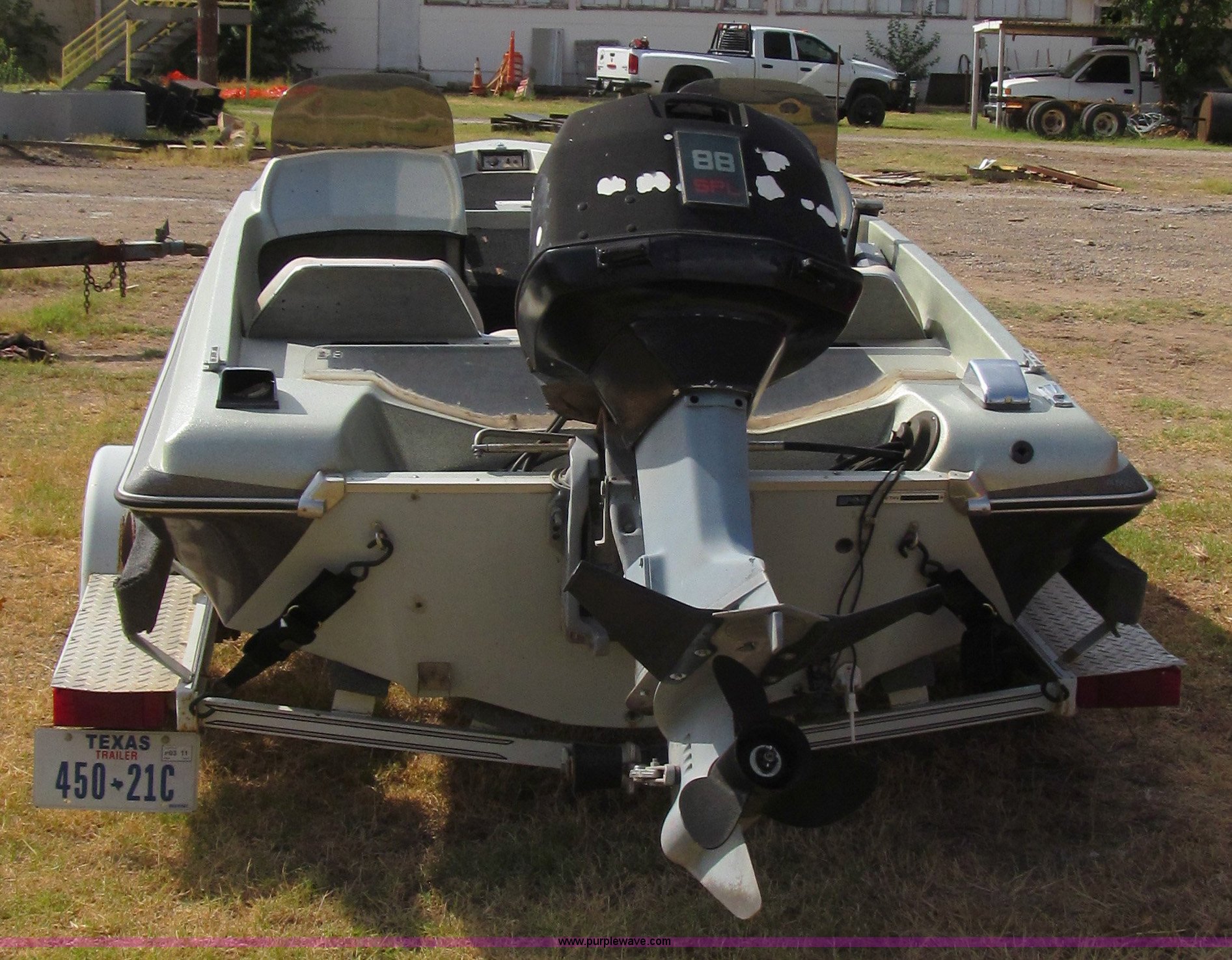 Purple Wave is selling a used Boat in Texas. This item is a 1987 Thunderbolt bass boat and trailer with the following: 15'5"L, (2) live wells, Four person or 600 lb capacity, Evinrude outboard engine, 88 HP, Serial R1482375, Custom Classic boat trailer, Model 155TB, Serial 983S3C28712, 1,500 lbs max load capacity, 2,000 lbs max gross weight, B78-13 tires, Serial THV00279D787