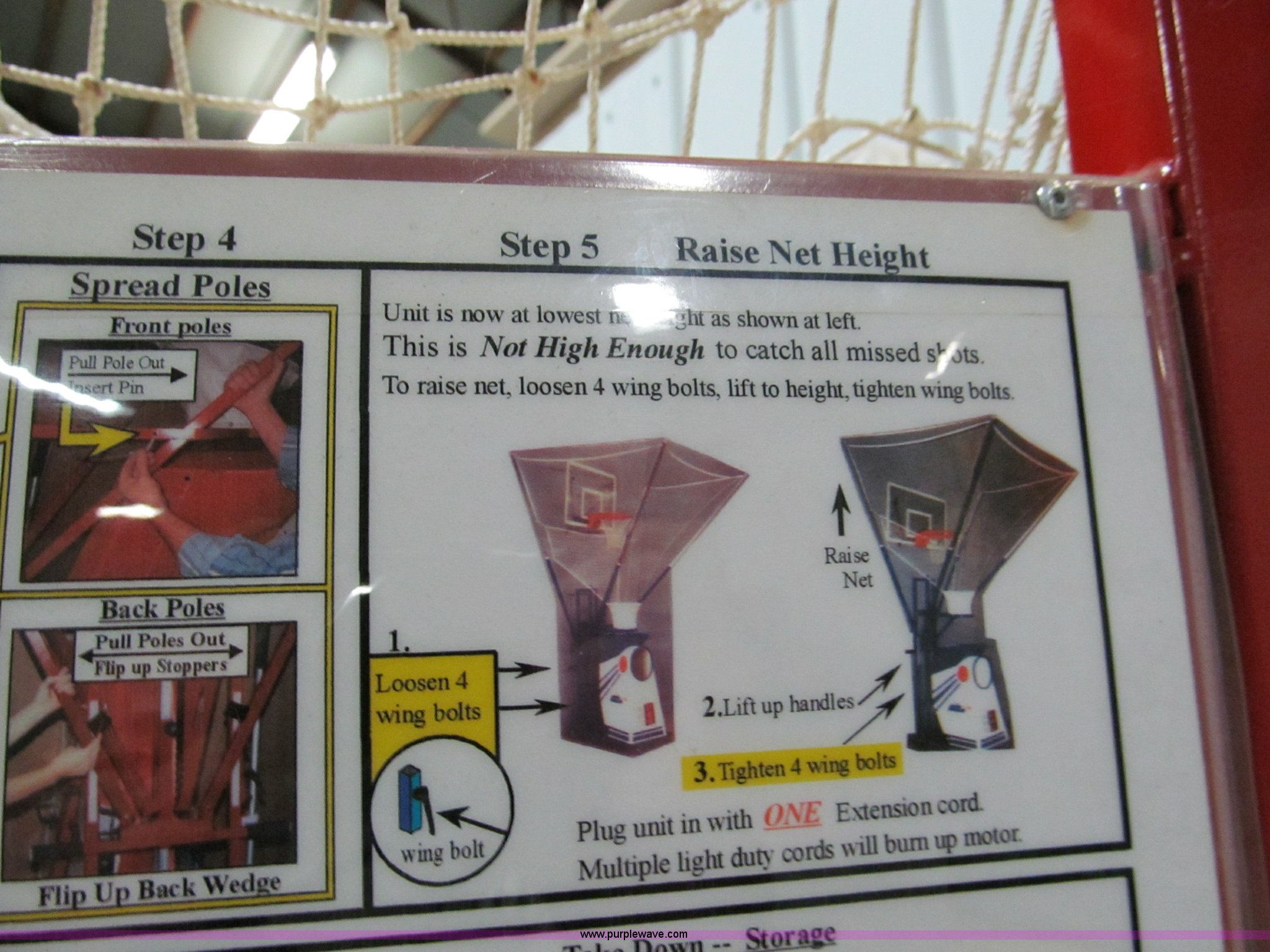 Purple Wave is selling a used Sporting Goods in Missouri. This item is a Shoot-A-Way The Gun basket ball retriever with the following: 110V, Returns basket balls after shooting, Wheel kit, Multiple throw positions, Holds multiple balls