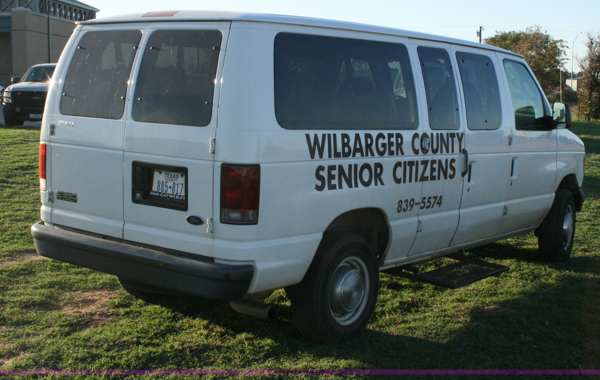 2005 Ford E350 XL Super Duty van. 123,976 miles on odometer, 5.4L V8 EFI gas engine, Automatic transmission, AC and heat, Tilt, Cruise, AM/FM, Power windows and locks. Title distribution may be delayed up to 14 days from verification of funds. 1FBNE31L25HA65270. Shipping quotes available. Wilbarger County. 1700 Wilbarger St., Rm. 10. Vernon, TX 76384